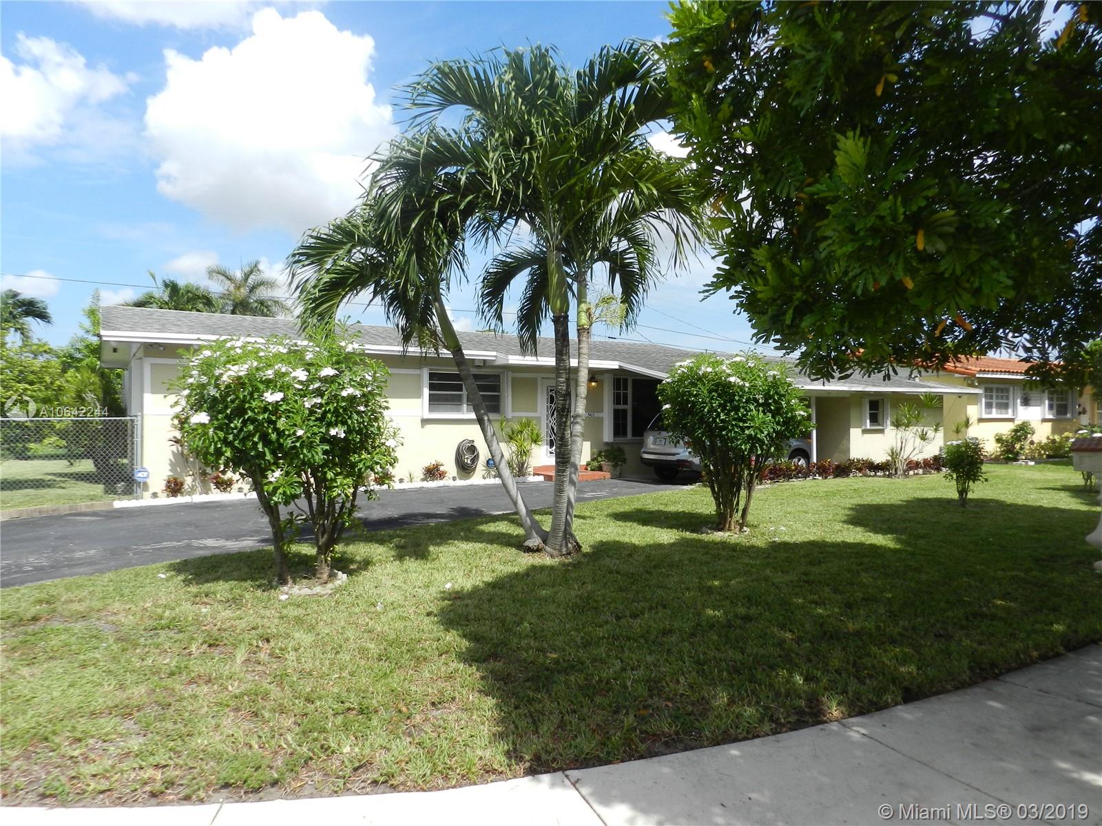 Palm Springs Gem! So many amazing things to say about this home! Impeccably clean and ready for a new owner! True 3 bedrooms, Florida room (currently used as dining room), large corner lot with backyard completely fenced in, master bathroom beautifully remodeled 2016, AC replaced 2016, water heater replaced 2017, Roof replaced 2006, Accordian shutters throughout, Impact glass in front picture window, eat in kitchen, gas appliances (range, dryer, and water heater), huge laundry/utility room, covered patio area, sprinkler system on well water, multiple fruit trees (Mango, Naranja Agria, Canistel, and Guanavana), and shed included. Close to Palm Springs Mile, Amelia Earhart Park, and easy access onto highways!