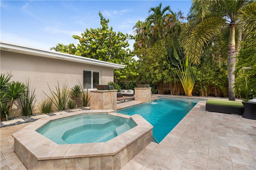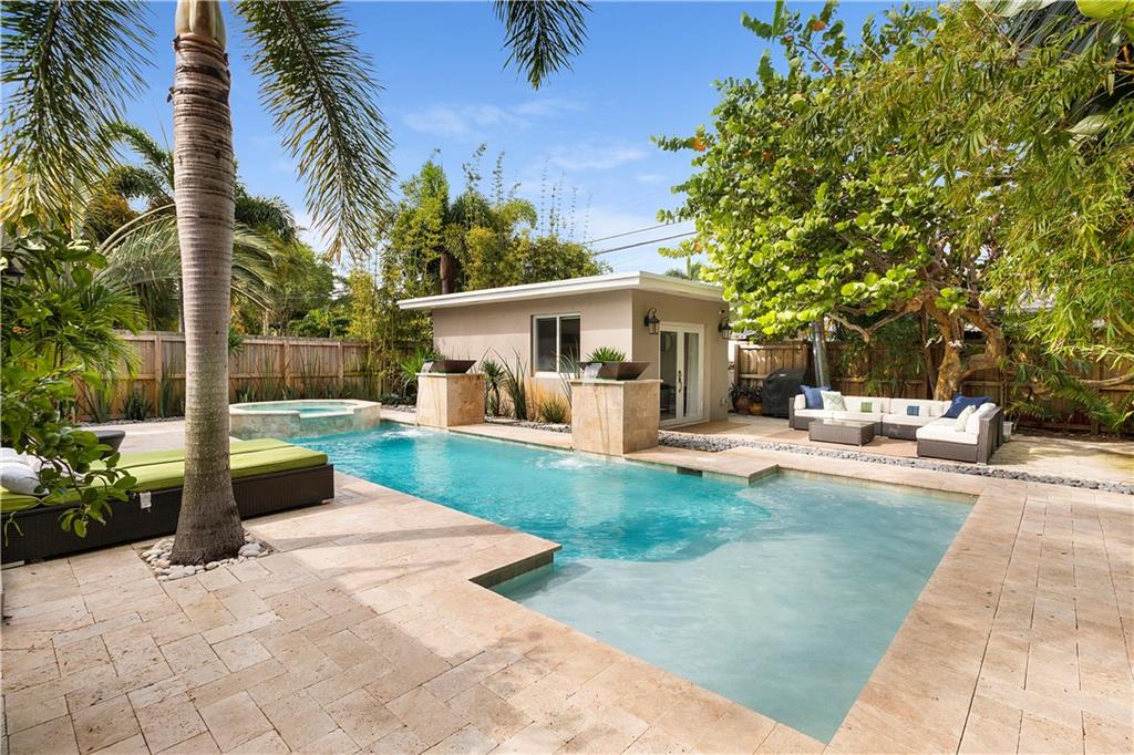 Welcome home to a tropical oasis of serenity, inspired by lush landscaping, cascading water features & a salt water pool & spa. This updated home is situated in E. Fort Lauderdale's desirable subdivision of Poinsettia Heights. The luminous open floor plan is conducive to today's lifestyle with hurricane impact windows & doors that seamlessly integrate indoor & outdoor living spaces. The gourmet kitchen offers tremendous counter space ideal for entertaining & opens onto the dining area & great room. The master suite & lavish bathroom provide the ultimate retreat. A separate air conditioned studio/office is only steps from the main house. A fenced & private front yard, sun deck overlooking the pool & spa & outside living area complete the private allure of this residence. Sq ft from IMAPP