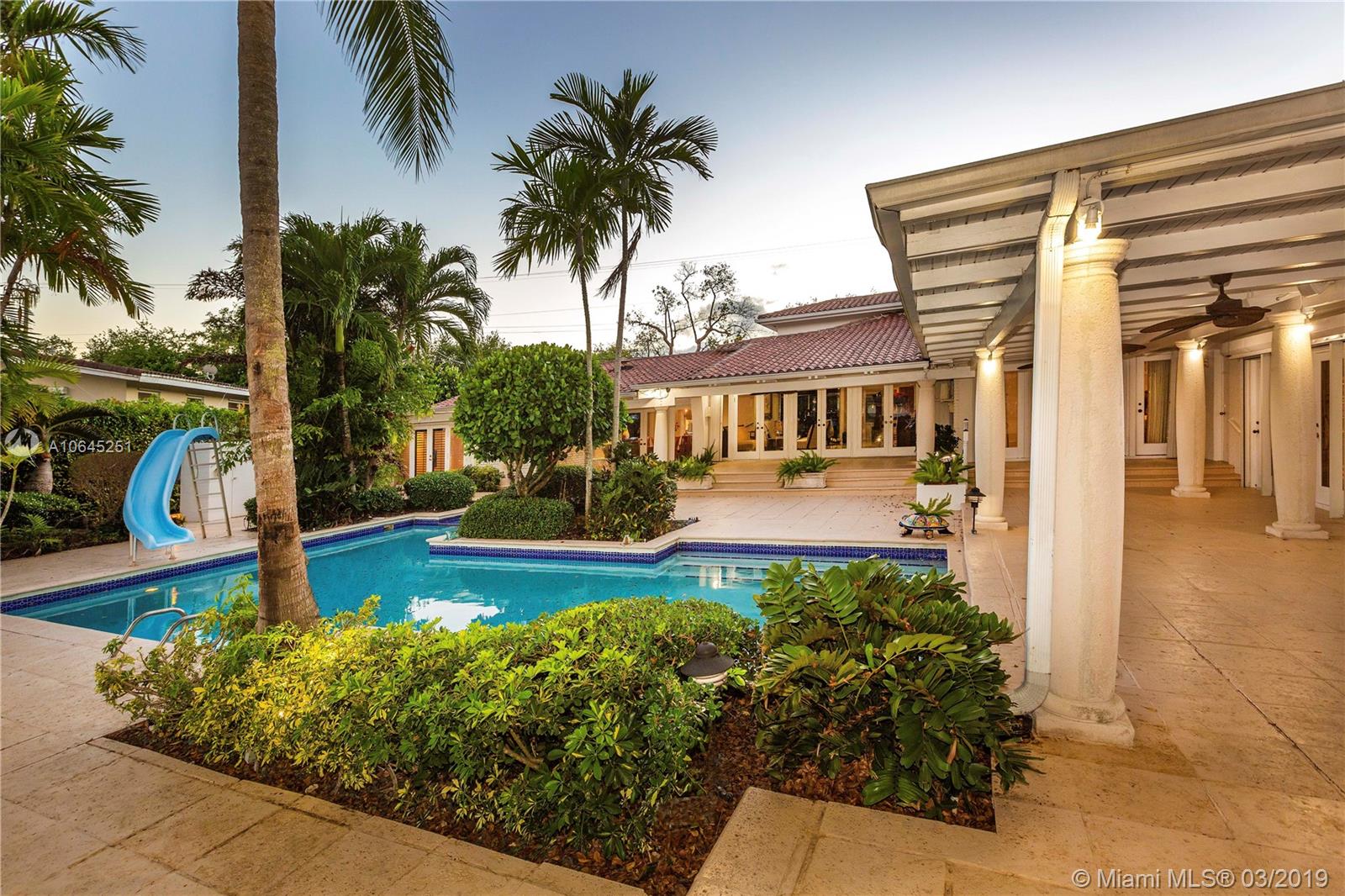 Stately Waterfront Villa on the desirable Coral Gables Waterway only blocks from the Riviera Golf Club. ‘Villa Junquera’ sits on a pro landscaped 18,331 Sqft Lot with Ocean access. Beautiful 4-bedroom, 4.5-bath home is ready for the next storm, a natural hurricane harbor for your boat, complete with a cutout and mighty boat lift for your toy. Impact windows and a standby generator to power everything. Heated pool includes a hot tub, & big patio space, much of it covered for those evenings of entertaining. Fenced in, has 2 automated gates, 2 car garage and plenty of parking. The home can accommodate two 30-40 ft. boats, and the dock is the perfect place to spend an evening watching the sunset while the manatees make their way past you. The ultimate retreat in the heart of the Gables.