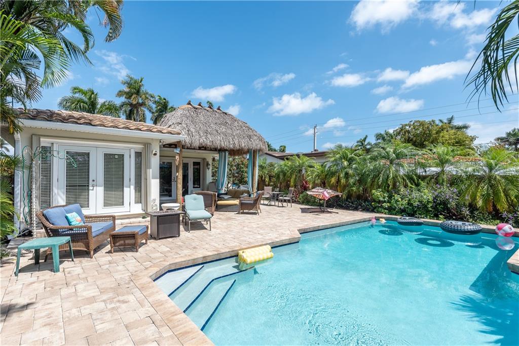 THIS GREAT POOL HOME IS SITUATED ON ONE OF OUR FAVORITE STREETS IN HOLLYWOOD LAKES STEPS AWAY FROM GOLF COURSE AND MINUTES TO THE BEACH. BRIGHT OPEN FLOOR PLAN BOASTS A BEAUTIFUL KITCHEN WITH A LARGE FUNCTIONAL ISLAND AND PLENTY OF STORAGE. FRENCH DOORS LEAD YOU TO YOUR VERY OWN FLORIDA RETREAT. LOUNGE BY THE POOL OR HANG OUT UNDER THE LARGE TIKI HUT IN THE SHADE AND WATCH SOME TV OR BAR-B-QUE. ALL OF THAT AND NICE SIZE BEDROOMS, REMODELED BATHROOMS AND HURRICANE PREPARED - WE WELCOME YOU TO THIS LITTLE PIECE OF PARADISE!