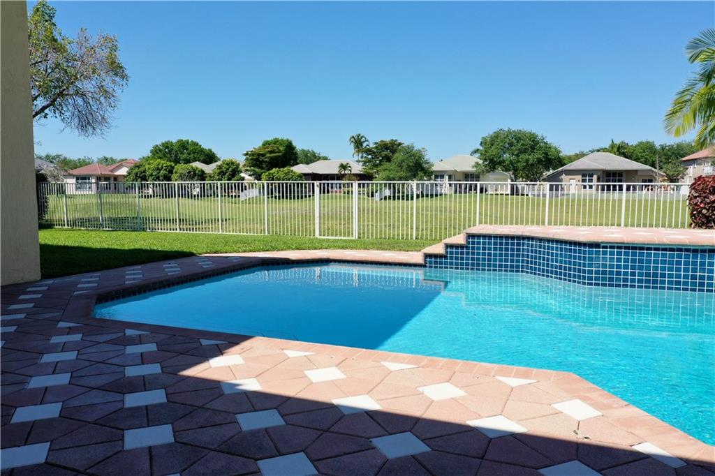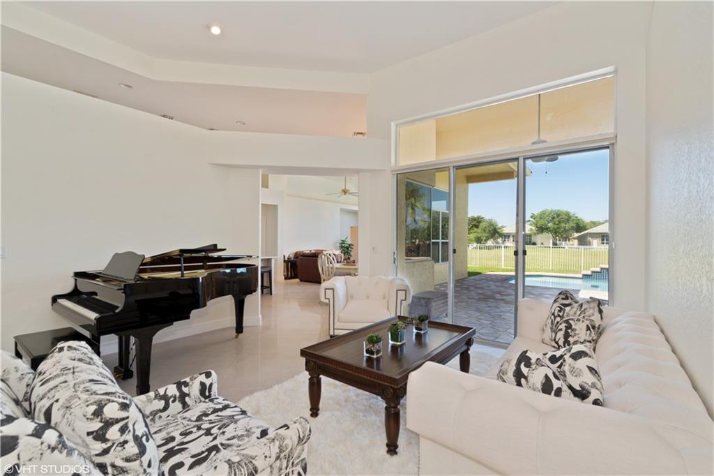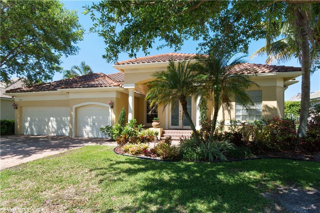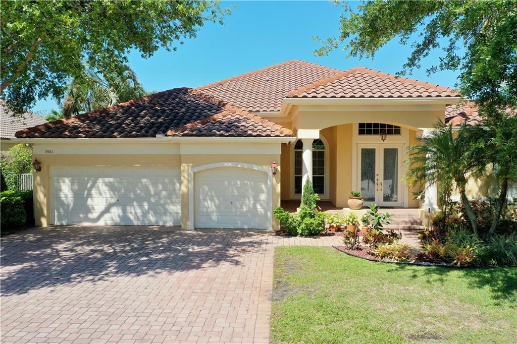 Open the doors to this beautiful home and the view of the pool and the golf course through the sliding doors will transport you to paradise! Better than a model! 32" tile on the diagonal throughout. The truly gourmet kitchen is a chef's delight complete with a stainless steel appliance package and a contemporary design/colors including a long center island. A large family room adjoining the kitchen. Formal living room and charming dining room. Triple split bedroom plan. Spacious master with a luxurious master bath with dual sinks and a large tub and separate shower. Jack and Jill bathroom for bedrooms 2 & 3. Separate suite off of the family room with full hallway bathroom. Interior laundry room. Three car garage. Sparkling pool and covered patio with lovely golf course views. Guard gated!