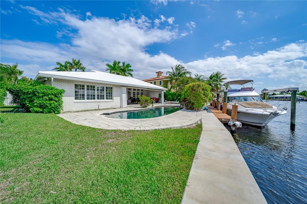 Modern touches dress this classically styled Landings' ranch as it sits just one residence off the point! This waterfront home features French doors throughout, bamboo flooring & perfectly split floorpan. The extra-large master has two walk-in closets & private entrance to the back patio while ensuite bathroom offers double sinks & separate shower/soaking tub. Fourth bedroom off master is best suited as office with plenty of light & private side entrance. Guest suite on opposite side of home also has ensuite bath & walk-in closet. Approximately 90 feet of waterfront provides a beautiful expansive view at the end of your waterway & you're one right turn off the intracoastal! Backyard hosts a newly painted dock with electric/water & spacious grass area for a children's swing set or dog run!