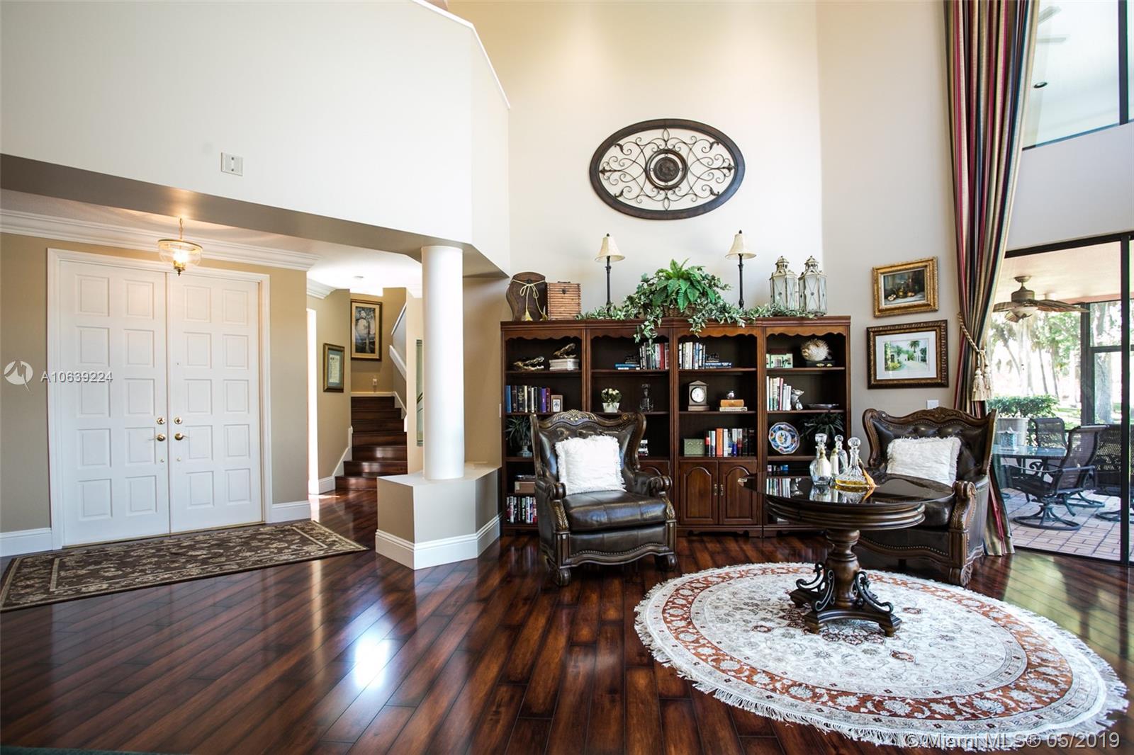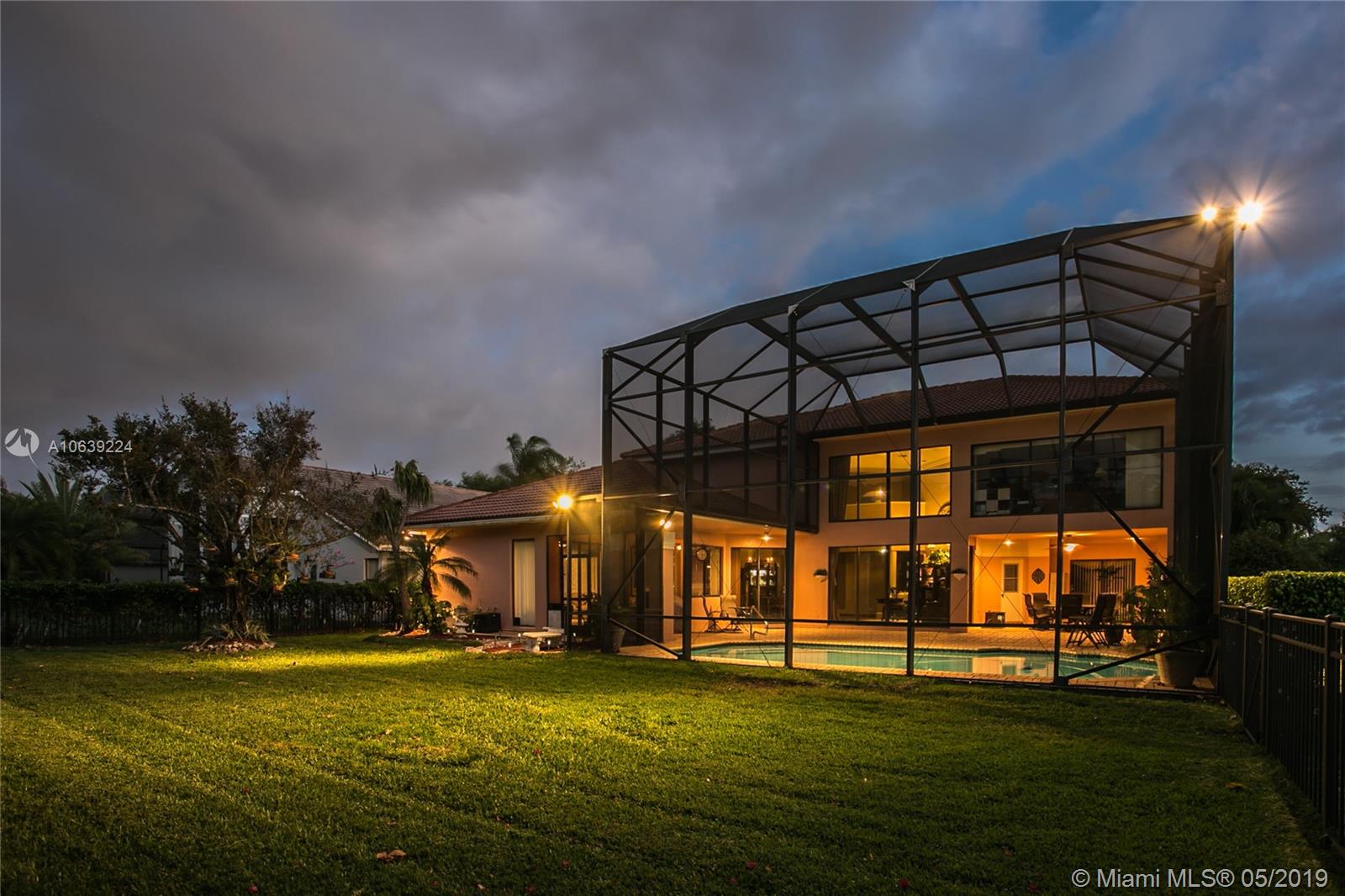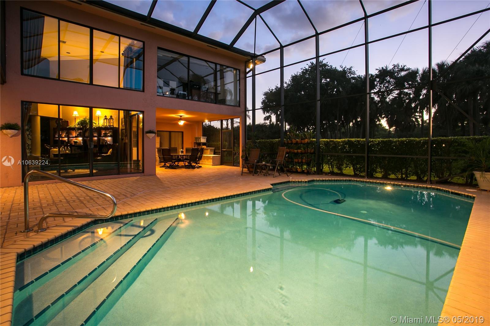 Don't miss this opportunity!!! Amazing Value and Priced to Sell! Stately yet casual, spacious 5 bedroom home offers privacy and true tranquility while backing to a lushly landscaped berm and adjacent to large green space. The 1150 sq ft screened patio and pool are perfect for outdoor enjoyment for entertaining or just relaxing! The entry foyer leads to living and formal dining room with soaring ceilings and floor to ceiling sliders and large windows with lots of natural light. Triple split floor plan with 4 bedrooms downstairs divided in 2 separate wings while the upstairs master bedroom has sitting area, spacious loft and "executive corner office" w/captivating views. Set in community of tree lined streets and steps to Peace Mound park with newer playground and scenic walking paths.