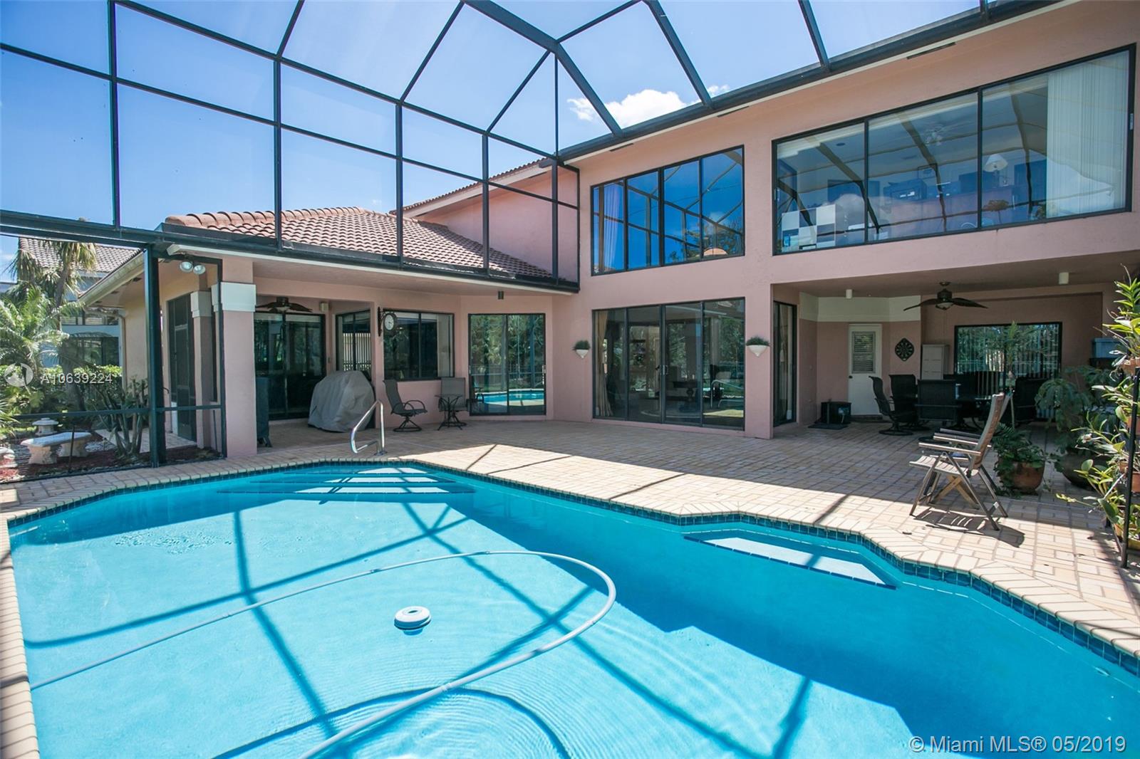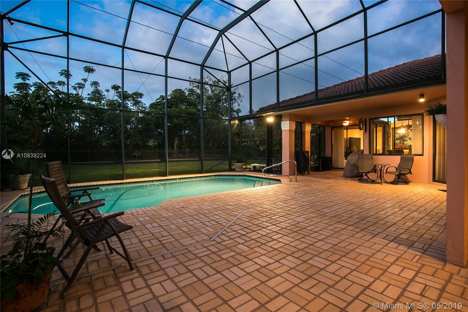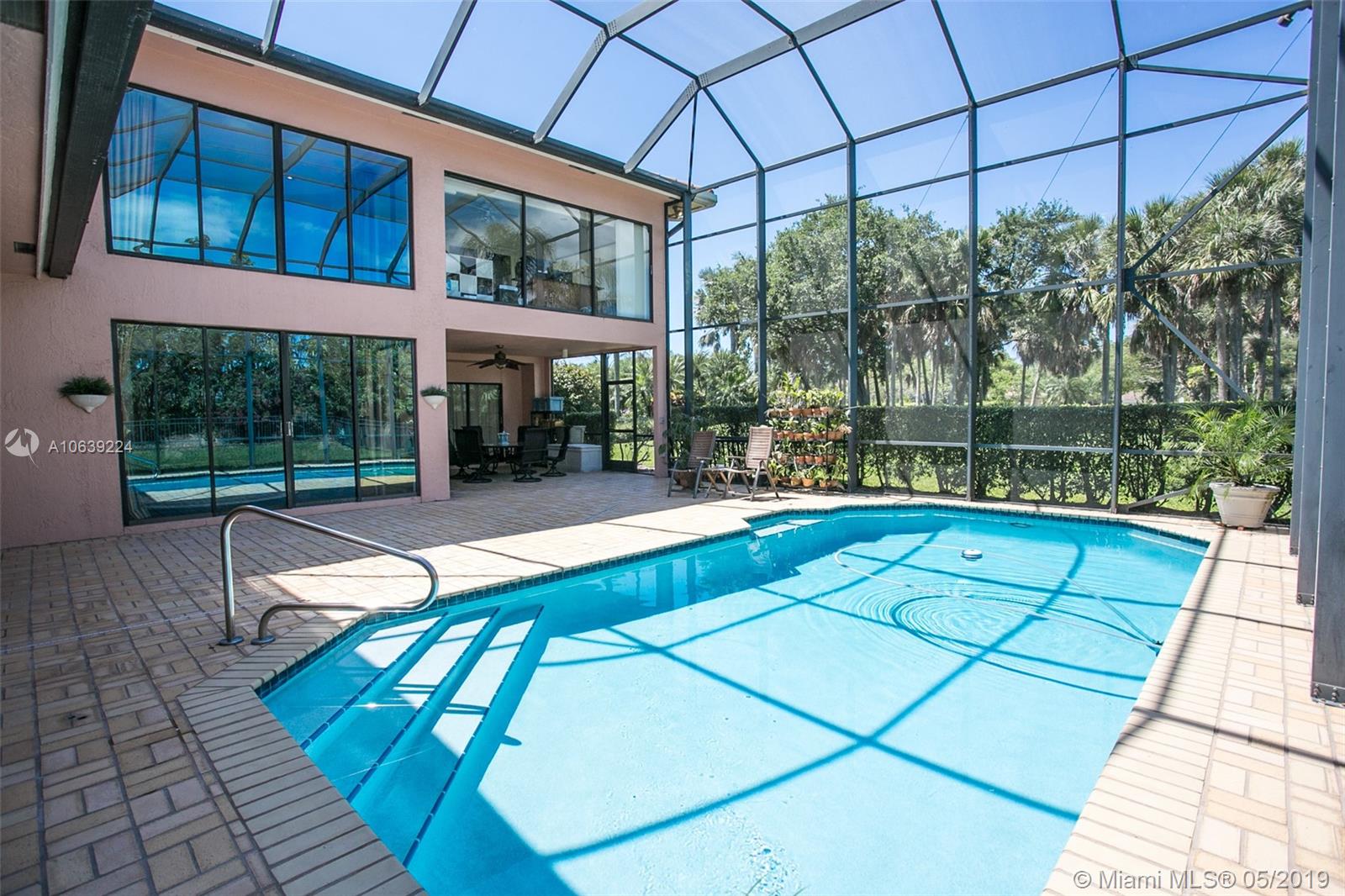 Don't miss this opportunity!!! Amazing Value and Priced to Sell! Stately yet casual, spacious 5 bedroom home offers privacy and true tranquility while backing to a lushly landscaped berm and adjacent to large green space. The 1150 sq ft screened patio and pool are perfect for outdoor enjoyment for entertaining or just relaxing! The entry foyer leads to living and formal dining room with soaring ceilings and floor to ceiling sliders and large windows with lots of natural light. Triple split floor plan with 4 bedrooms downstairs divided in 2 separate wings while the upstairs master bedroom has sitting area, spacious loft and "executive corner office" w/captivating views. Set in community of tree lined streets and steps to Peace Mound park with newer playground and scenic walking paths.