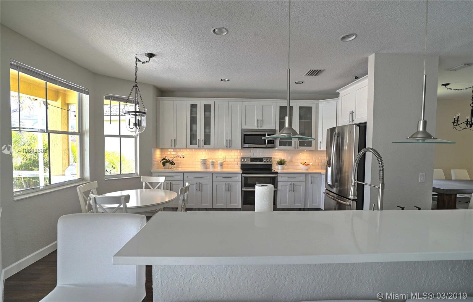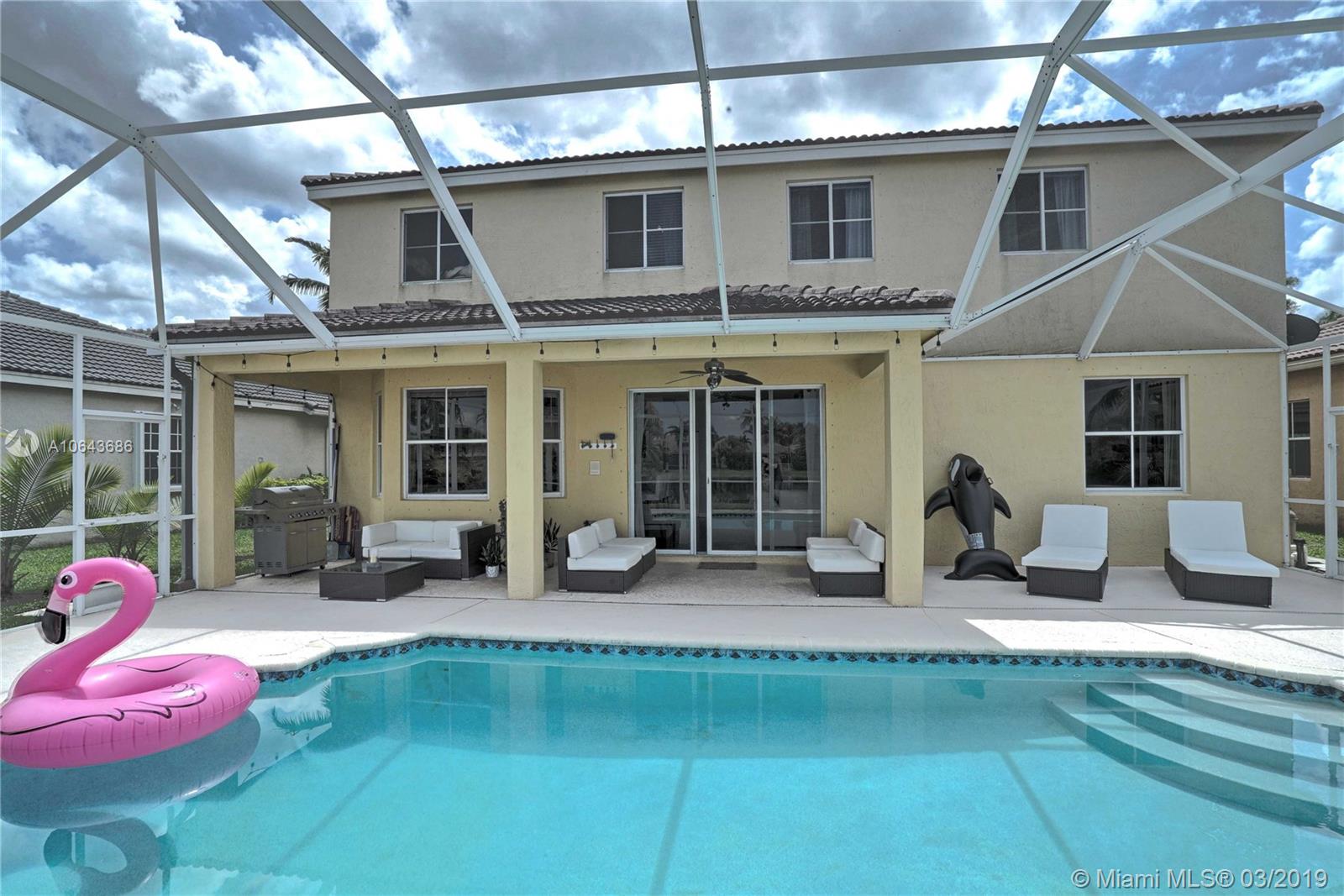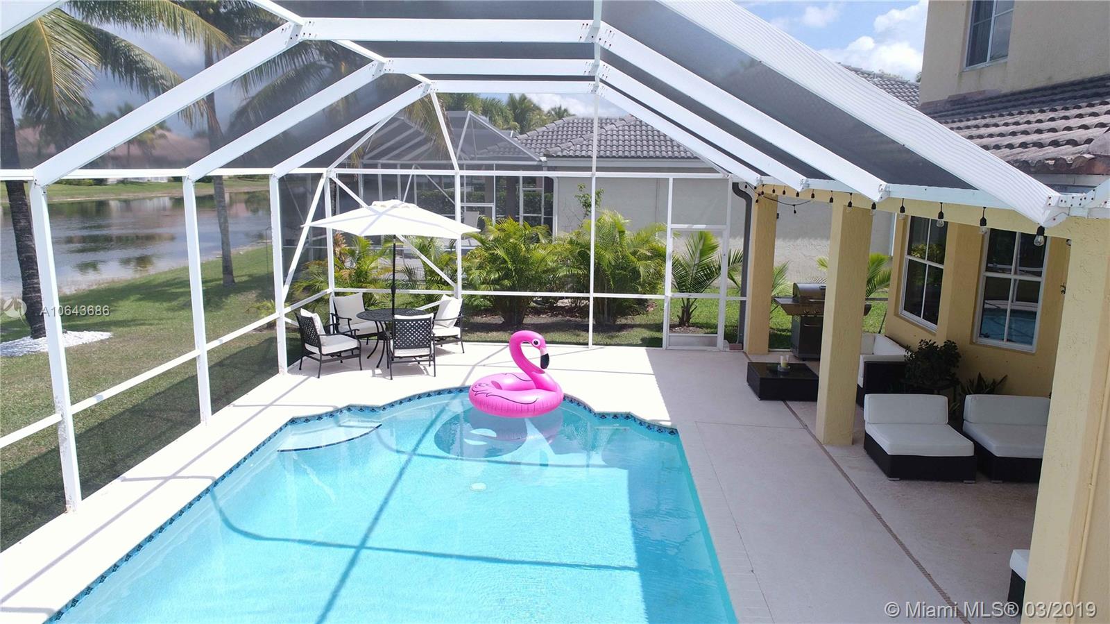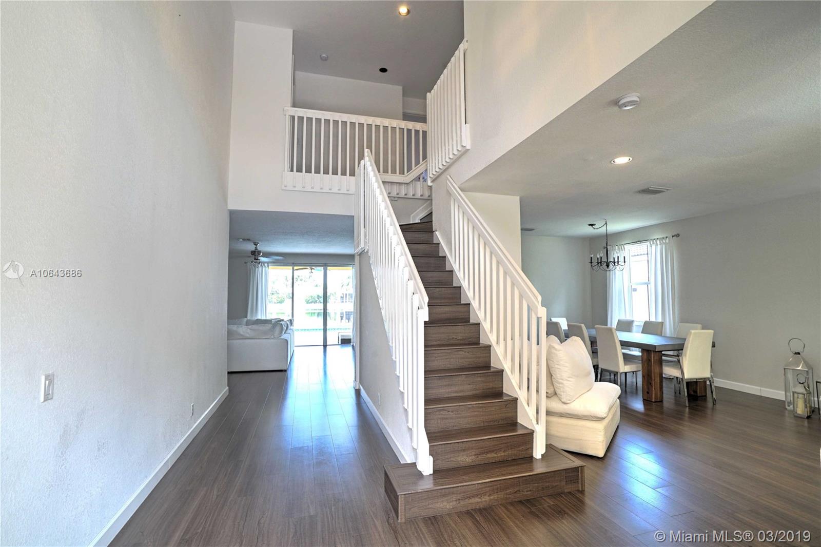 Bright 5 bedrooms 4 bathrooms house with lake and pool. One bedroom and full bathroom on 1st floor. New Kitchen with quartz counter tops and stainless steel appliances & 42" wood cabinets, modern wood floors throughout , upgraded bathrooms. Closets galore. Pool with screened Patio. Gated community with amazing club house, 4 pools, water-slide, mini golf, basketball court, soccer, playground, and more to mention.