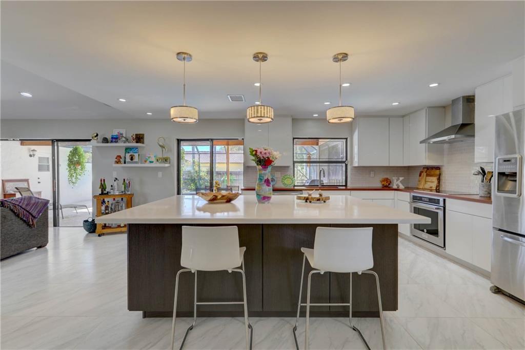 Drop dead gorgeous 4/2 one story home on a corner lot in the heart of Plantation, Jacaranda Lakes. Stunning kitchen with an over-sized island and an ultra modern mix of wood and white. Almost all of the walls were opened up to give you the open floor plan of your dreams! Home features a stacked floor plan with updated porcelain tile throughout the common areas and bedrooms. Fully updated bathrooms including the cabana bath off of the master bedroom leading you to your large covered lanai and screen enclosed pool! All updates have been done within the last 2 years! Zoned for 1 of the best elementary schools in the county!