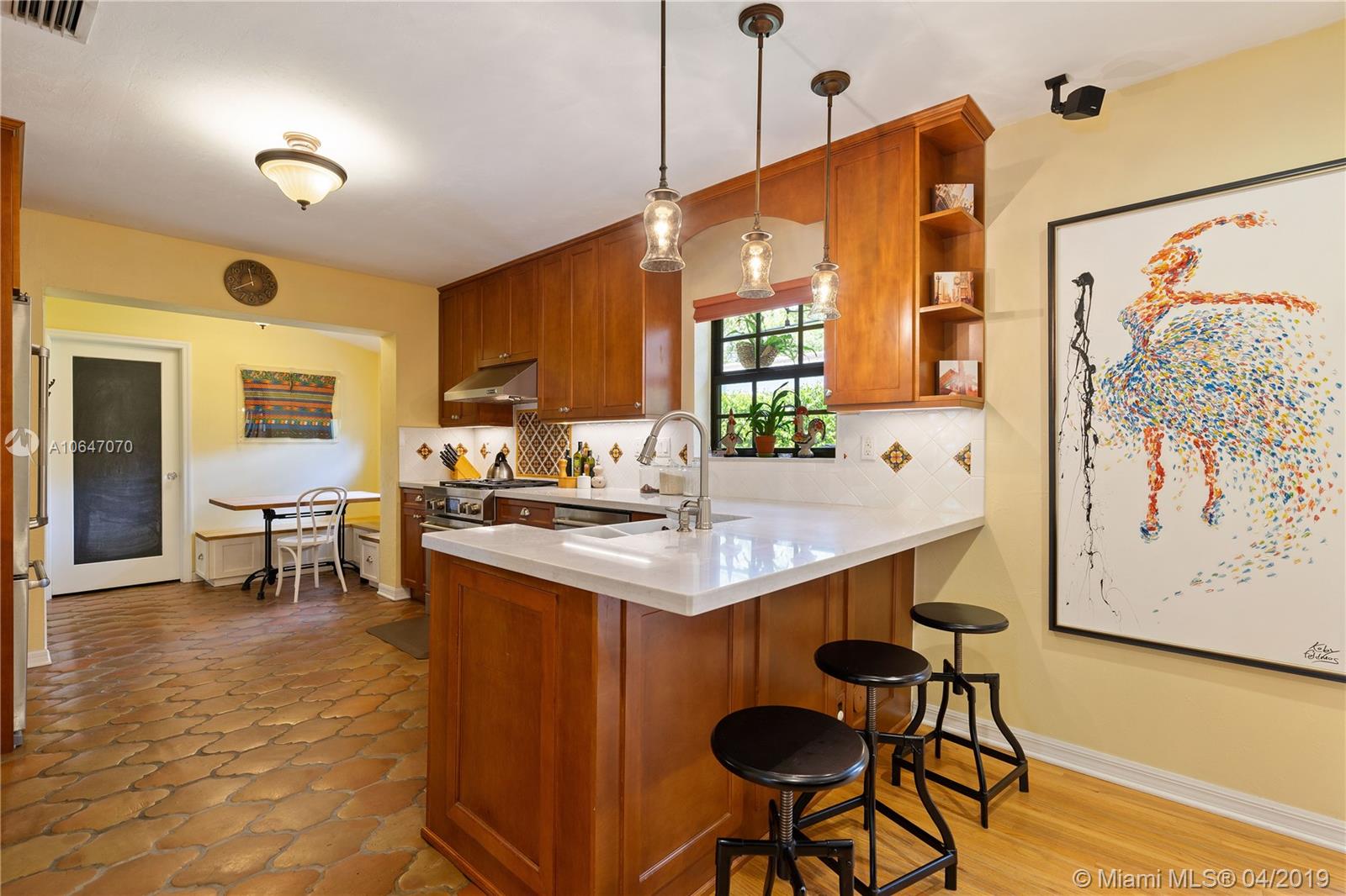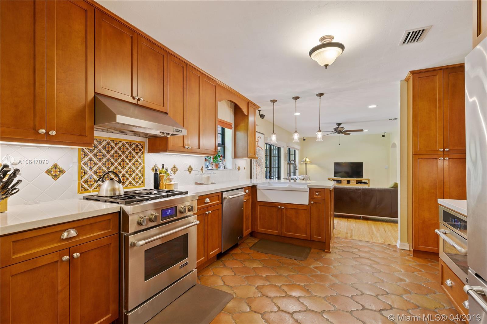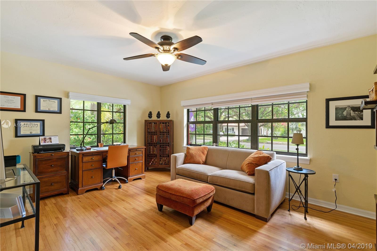 Wonderful natural light streams into this beautiful home situated in the prestigious Golden Triangle. This classic & timeless 2,722 sq ft 4 bed/3 bath home was substantially renovated in 2013. This includes a 2 bedroom addition, new roof, kitchen w/ gas stove & breakfast nook, new master bath, updated electrical, new AC, impact windows & an inside laundry room. Hardwood floors throughout, formal living room, dining room & open family room that leads out to a covered patio perfect for entertaining. Spacious master BR w/ walk-in closet & gorgeous bathroom w/ shower, timeless bathtub & double sinks. All other bedrooms are large w/ ample closet space. Plenty of room for a pool. 1 car garage. 10,000 sq ft lot. Walking distance to the Youth Center, Coral Gables Library & Biltmore Hotel.