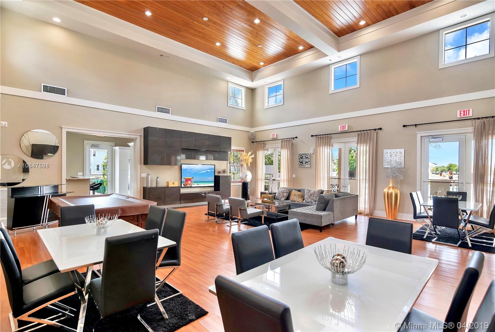 3 Bedrooms, 2.5 Baths lakefront townhouse. Features beautiful porcelain and wood floors, gorgeous New Italian Kitchen, high-end Veneta Cucine brand, modern cabinetry, breakfast bar and wine cellar. Smart home lightning control, thermostat,Ring doorbell,Audio surround system on social areas,and patio for entertainment. First level spacious open floor plan with plenty of natural light. Second level presents Den and laundry room, Huge Master suite with lake view terrace, his and hers walking closets, his and hers vanities, tub and glass shower. Generous closets and covered terraces for all bedrooms. Located across children’s playground, sports area and close to Clubhouse’s wonderful amenities. Walking distance to A+ Schools, shops, restaurants, and easy access to Turnpike and 826 Expressway