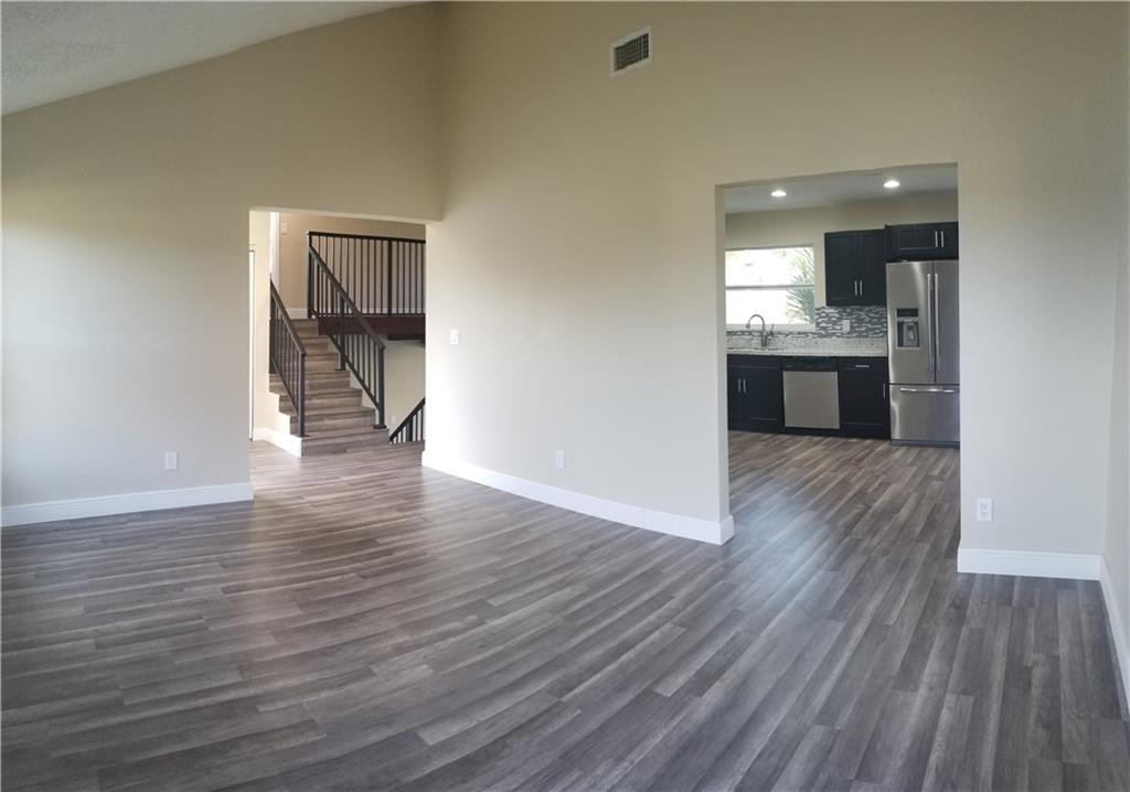 Great opportunity to own a completely remodeled 3 story home with 3 Bedrooms + Den, 2 Full Bathrooms, 1 car garage and double car driveway. Spacious rooms, vaulted ceilings, built-in lights, new kitchen cabinetry w/granite counter-tops and Stainless Steel appliances, new bathrooms, seamless shower, new water-proof laminated floors, washer and dryer, fenced back yard with room for a pool !! Exterior just painted ! Located in a quiet and highly desired neighborhood of Davie. A/C 5 years old. Water Heater 1 year old.