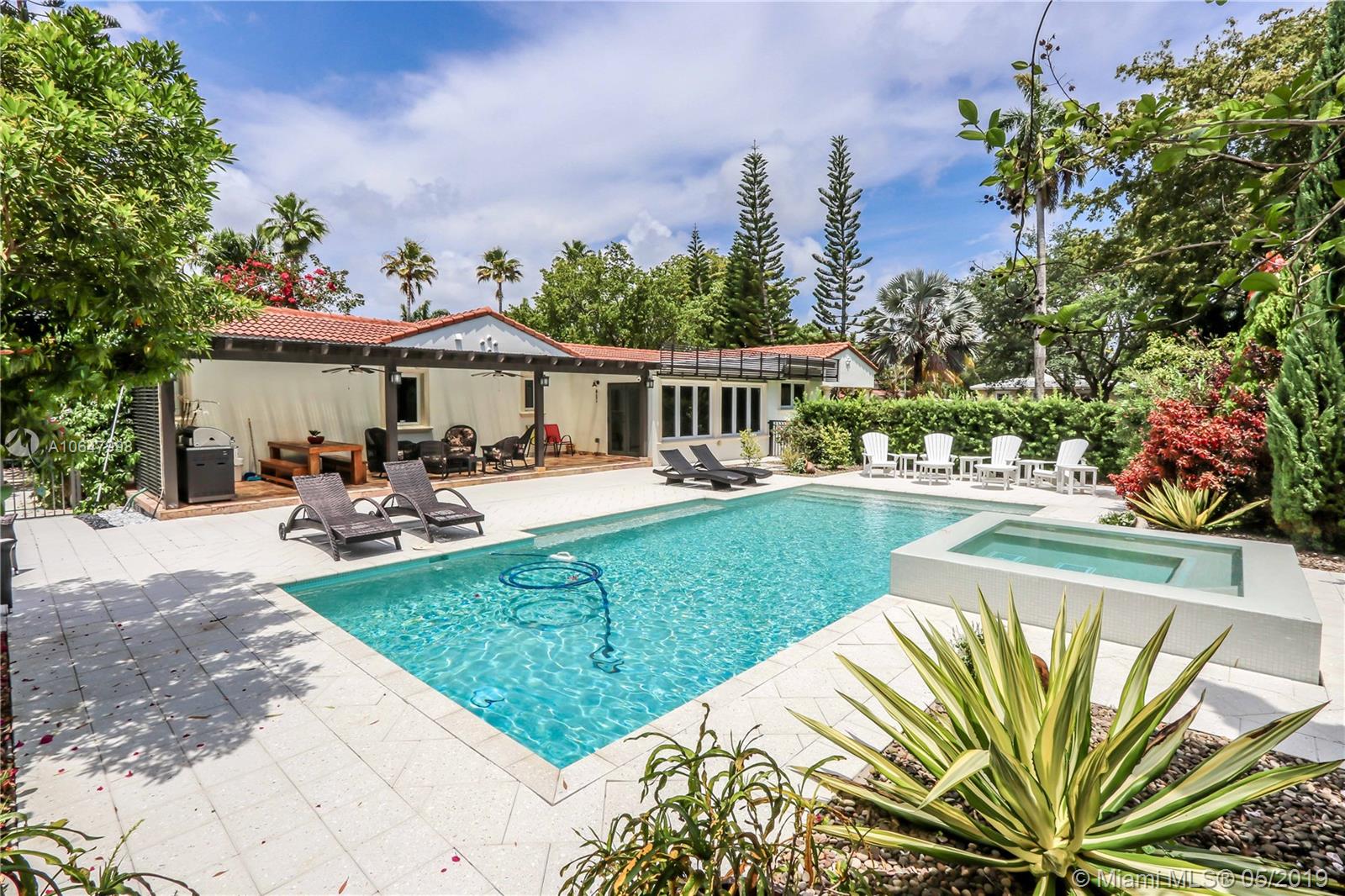 This magnificent 3BR/3BA corner property on double lot. Well maintained property features Travertine flooring throughout, crown moldings, impact windows and doors, many windows providing an abundance of natural light. Great kitchen features stainless steel appliances, granite counter tops w/ glass subway tiles. Updated 3 Baths has floor to ceiling marble walls w/onyx vanity tops. Master bath has separate Jacuzzi tub & shower. Circular driveway has large gates, lush tropical landscaping, tall privacy hedges, w/ iron fencing surrounding entire lot provides extra privacy. Large backyard from gate to alley. Spa/pool w/waterfall, w/ extended covered patio area which is ideal for outdoor dining & entertaining guests. Tankless water heater, filtered water system, indoor/outdoor security​​‌​​​​‌​‌​​​​‌‌​‌​​​​‌‌​​‌‌​​‌‌ system.
