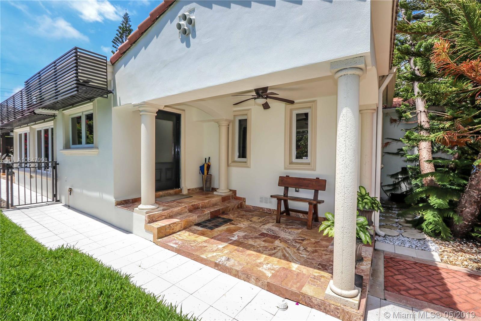 This magnificent 3BR/3BA corner property on double lot. Well maintained property features Travertine flooring throughout, crown moldings, impact windows and doors, many windows providing an abundance of natural light. Great kitchen features stainless steel appliances, granite counter tops w/ glass subway tiles. Updated 3 Baths has floor to ceiling marble walls w/onyx vanity tops. Master bath has separate Jacuzzi tub & shower. Circular driveway has large gates, lush tropical landscaping, tall privacy hedges, w/ iron fencing surrounding entire lot provides extra privacy. Large backyard from gate to alley. Spa/pool w/waterfall, w/ extended covered patio area which is ideal for outdoor dining & entertaining guests. Tankless water heater, filtered water system, indoor/outdoor security system.
