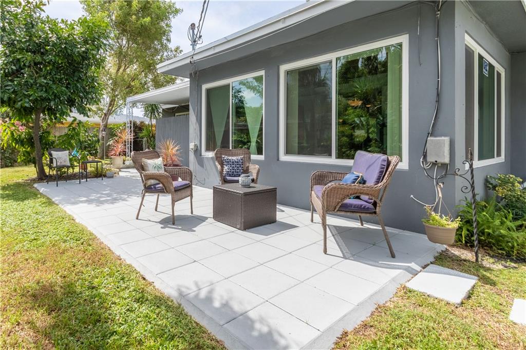 SELLER MUST CLOSE BY 9/16-NO EXCEPTIONS! Recently Renovated 3/2 on Pioneer Drive w/Newer Updates Including: Roof; PGT Impact Windows; Kitchen w/Shaker Cabinets, Deluxe Faucet, Deep Extra-Wide Sink, Blue Pearl Granite & Stainless Appliances; High-Efficiency Central A/C w/Digital Thermostat & Flex Ducting; Lighting; Fans; Front Storm Door; Interior Doors; Bedroom Closet; Toilets; Paved Patio; & White PVC Fence. Upgraded Electric w/New Panels & Interior Outlets. Shower Pan Changed 2014. Private In-Law Suite w/Kitchenette. Split Bedrooms. Terrazzo in 2 Bedrooms. Lush Backyard w/Fruit Trees (Mahogany, Coconut, Olive, Black Sapote). Attached Storage Shed. Partial Carport. Near Golf, Beach, Shops, Dining, Air Park.