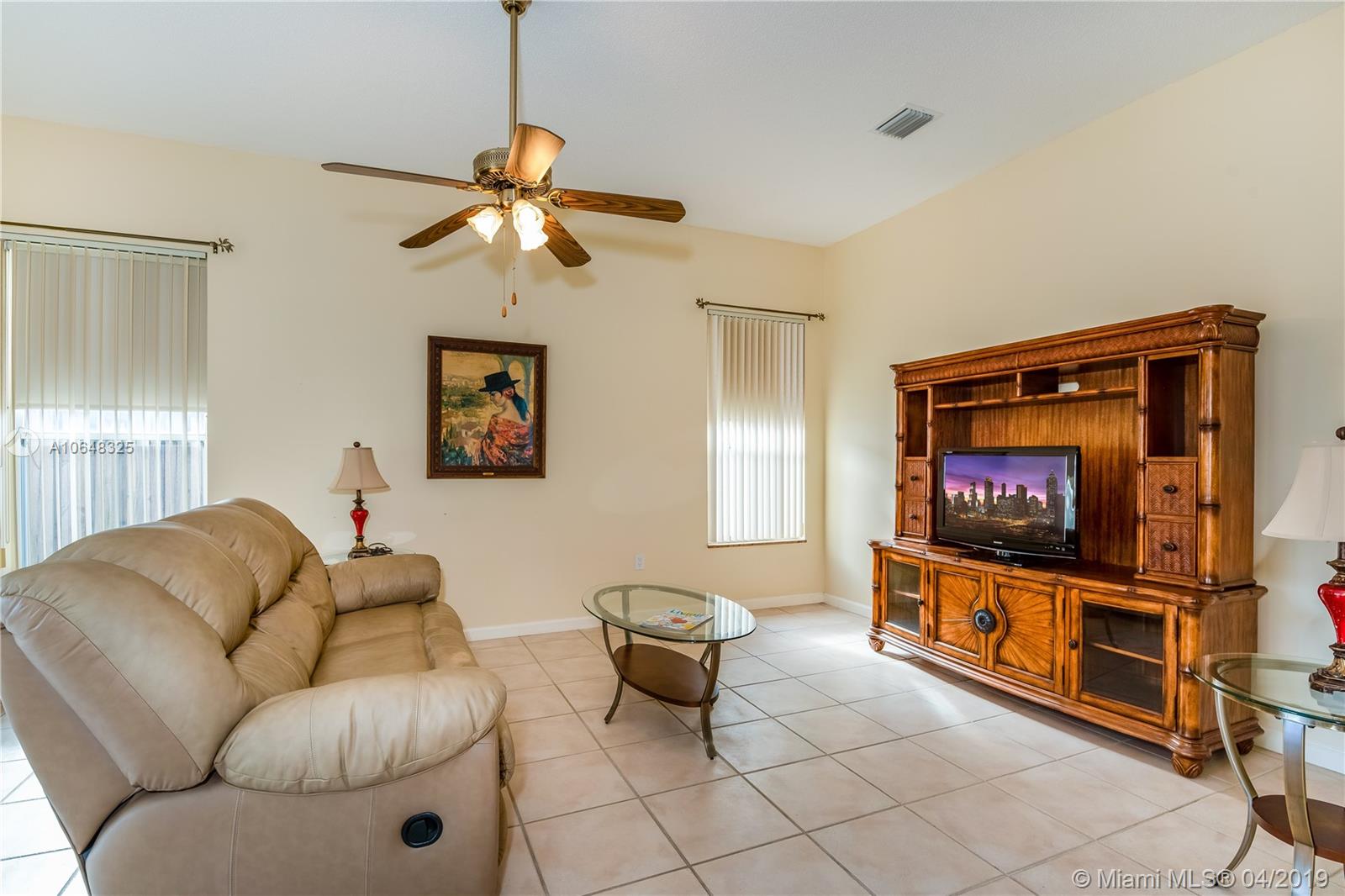 Pristine 3/2.5 perfectly maintained by the original owners. Elegant foyer with dramatic tray ceiling. Open flowing floor plan with living, dining & family rooms. Light and bright with many windows & high ceilings. Kitchen has pretty granite counters. Split bedrooms. Master had large upgraded bath and nice sized walk in closet and a wall closet. Gently used 2nd bath. New AC with really low electric bills. This one has the sought after covered patio that was a builder upgrade. Plenty of yard space for playing, planting & relaxing. No neighbors in back. Accordion shutters & rated garage door. Gated community with terrific location. Walk to Publix & restaurants. Easy access to the highways with 2 gated exits. Great schools including Western High with beneficial Cambridge AICE program!