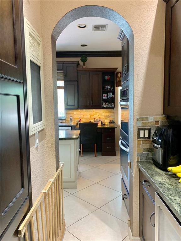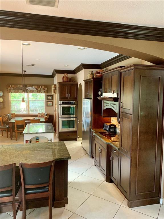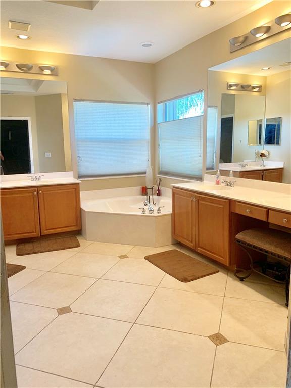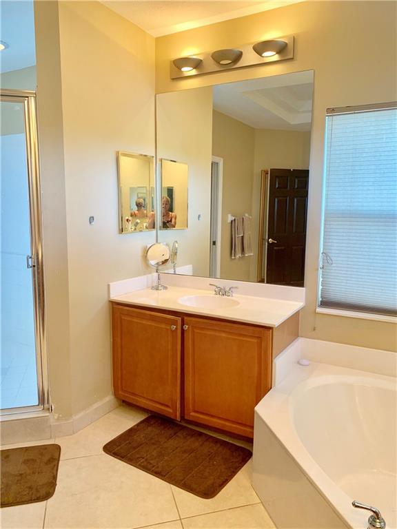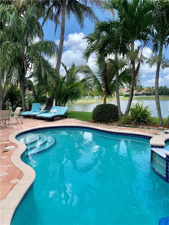 Beautiful home, One of a Kind. 24x24 marbleized porcelain tile, laminate wood, and waterproof vinyl flooring. Luxury master suite with beautiful lake views. Pool with waterfall spa, 1/2 bath with Venetian plaster and pedestal sink, accordion shutters, upgraded slat wall garage with additional overhead storage, OVER SIZED lot with back and side easement on lake with great views, and much more- A MUST SEE!!