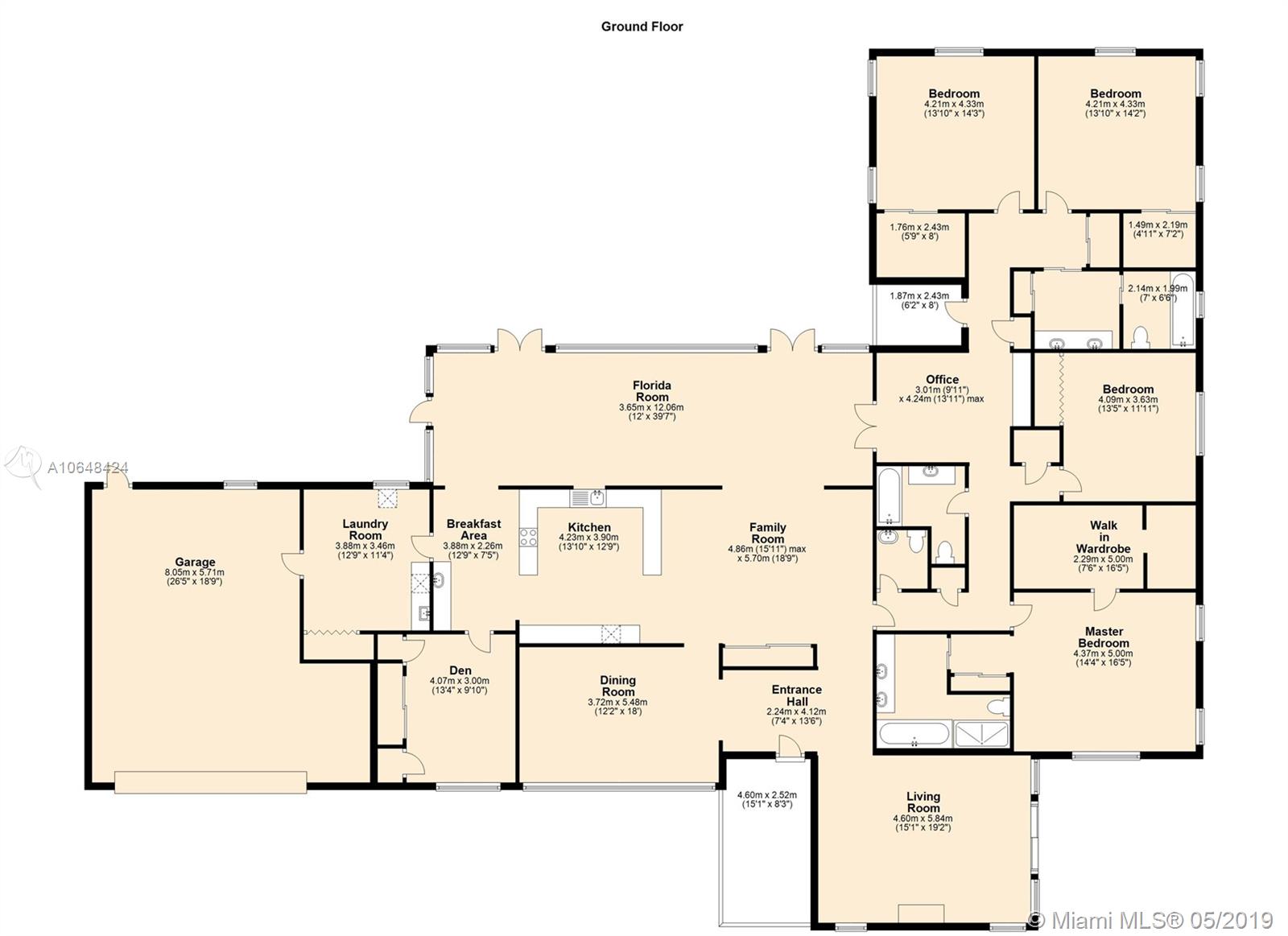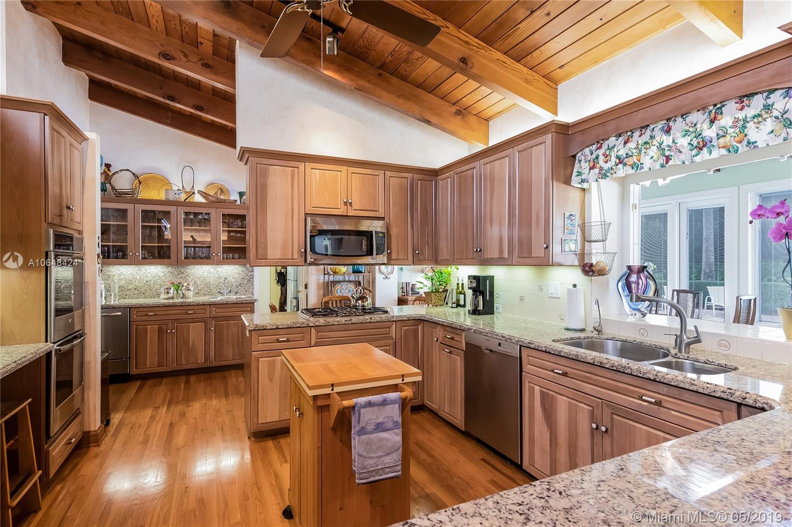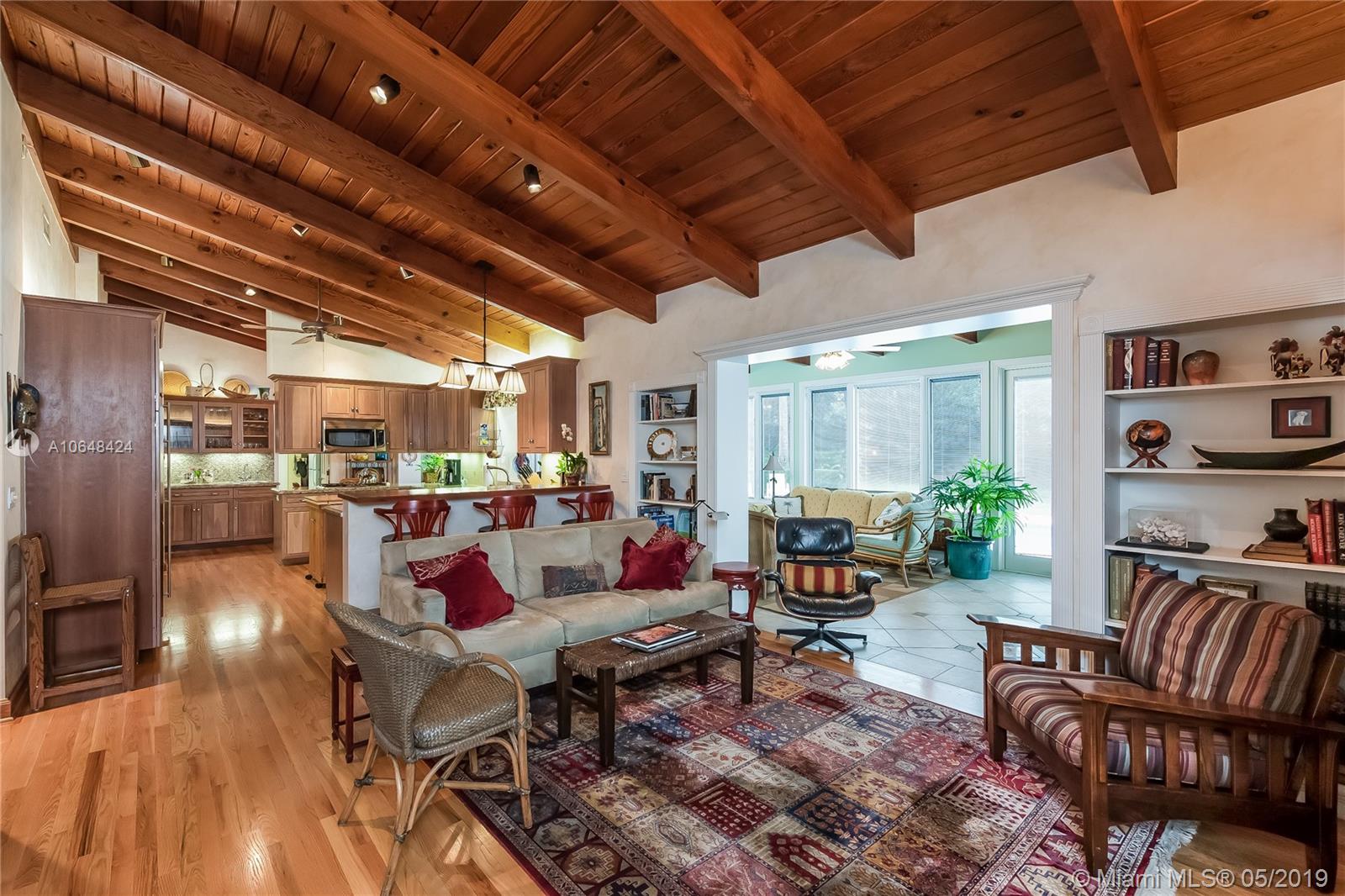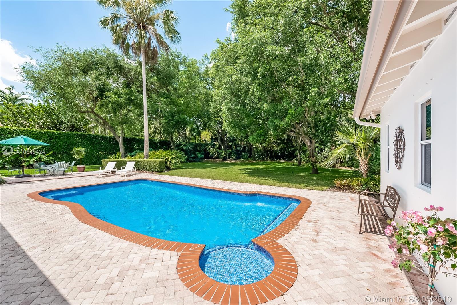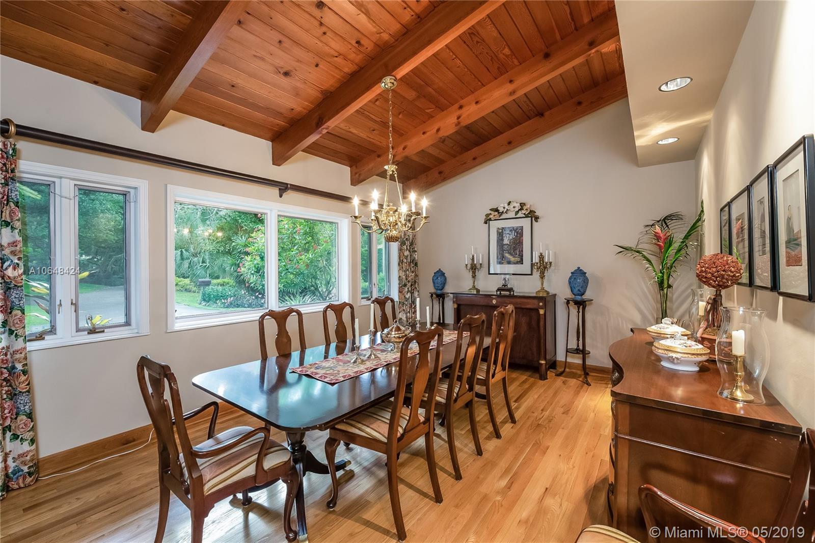 Presenting a fabulous opportunity to live on one of the most desirable and quiet cul-de-sacs in North Pinecrest. This graceful home is nestled on a gorgeous acre surrounded by mature oak trees. A perfect home for family and entertaining it features wonderful living room with wood burning fireplace, formal dining room, large eat-in remodeled kitchen, bright and cheery family room which opens to a spectacular and gorgeous tiled pool. The bedroom wing features a large master with walk in closet and updated marble bathroom, 3 bedrooms and an open office area. With a split plan on the other side of house is a 5th bedroom/office. The home also has a large laundry room and 2 car garage. Don’t miss this charming family home. SF as per Architect.
