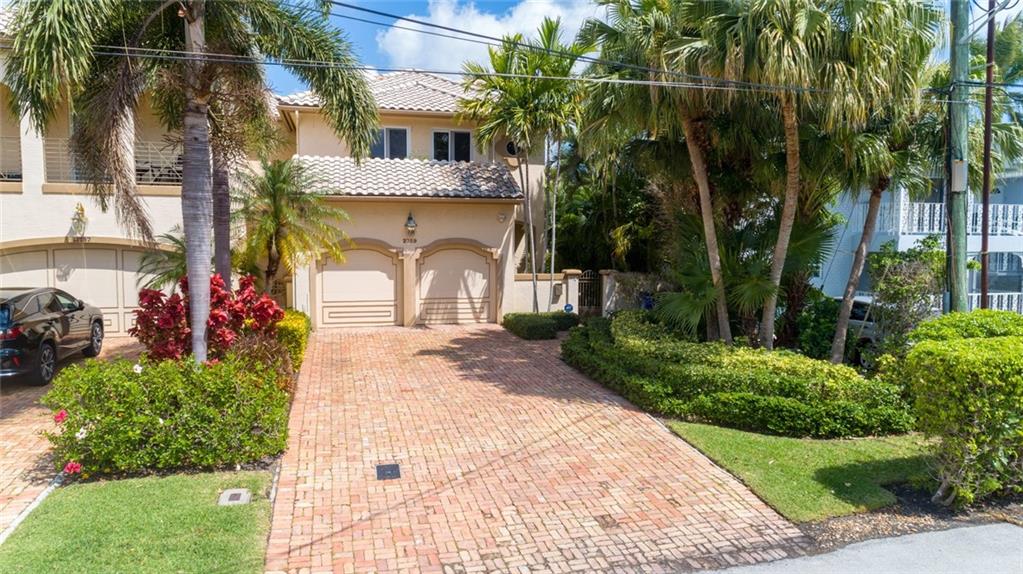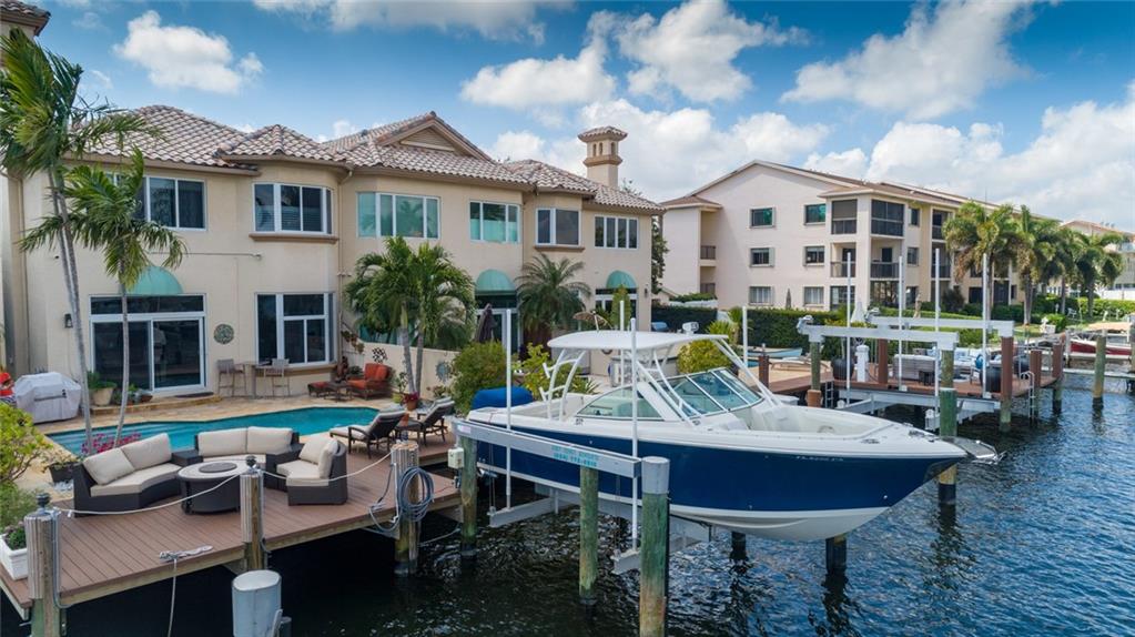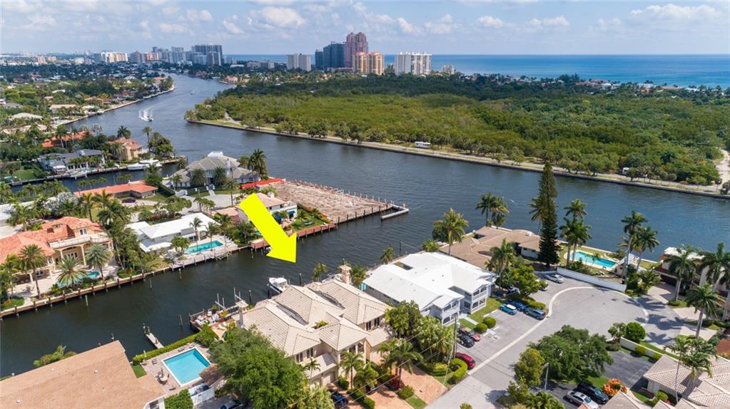 Unique 3/3.5 + private office, 2 car garage on deepwater only 2 homes off Intracoastal Waterway has the feel & privacy of a single family home. Watch the action on the Intracoastal Waterway from your extended deck with Birch State Park in the background. In the Coral Ridge Yachting Community, this unit is one of three in the complex & located on the East end corner. Features: Impact windows/door, all bedrooms have private on-suite baths, 10ft ceilings, personal full-size pool, boat lift, already raised seawall to the new code, fireplace, separate laundry room upstairs, private entry, extra-long & wide Chicago brick driveway that provides parking for 4 more cars, on a cul-de-sac street, coffered ceiling in dining area+. Bayview school district, minutes to the beach, park & Ft Laud Airport.