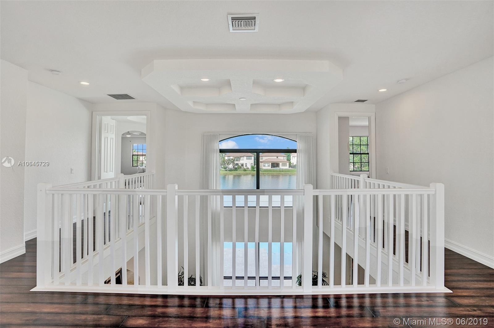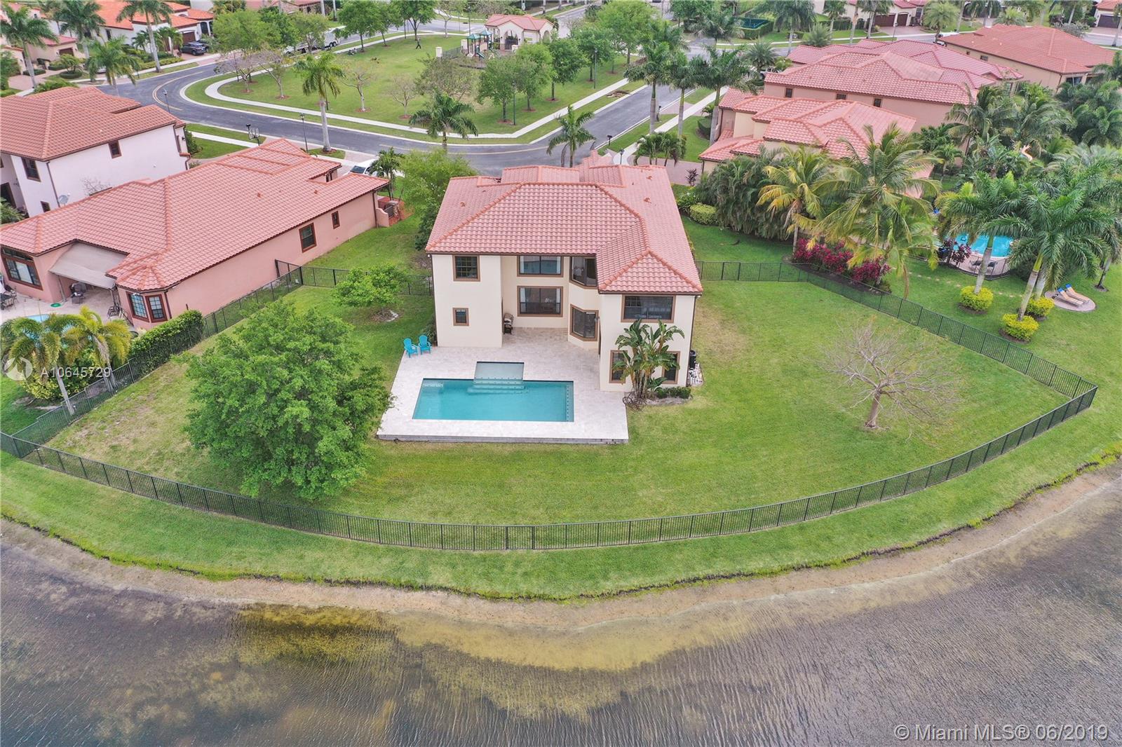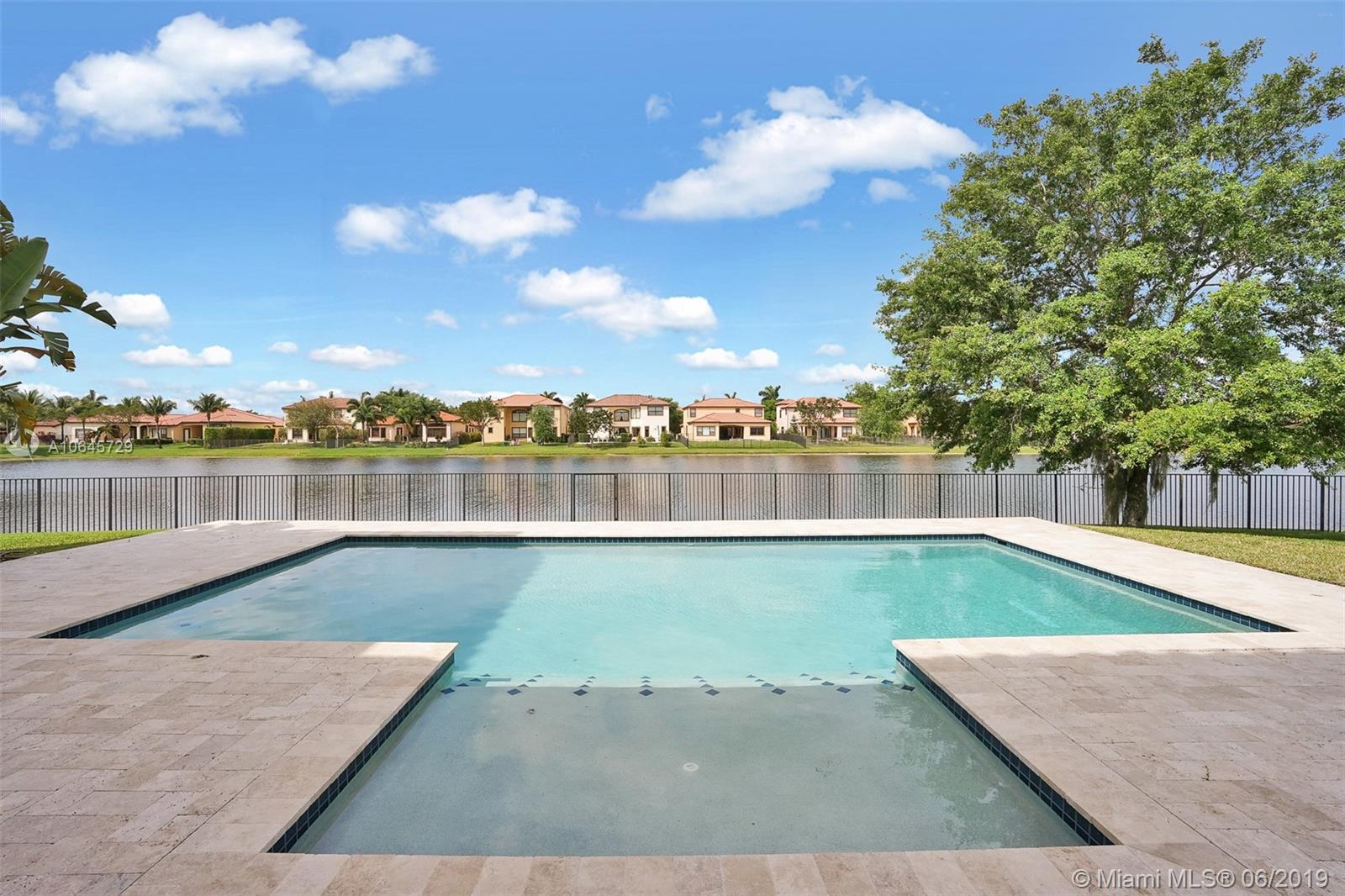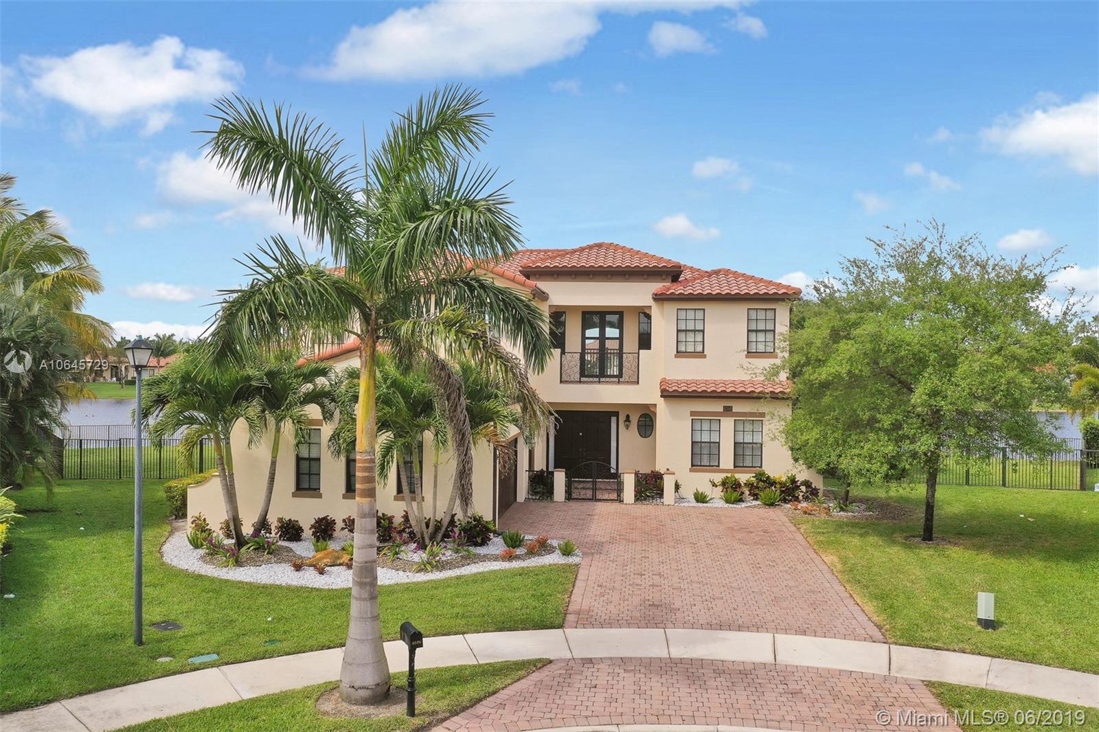 Most desirable estate home, located on a 18,909 sqft cul-de-sac lot and stretching 215' linear feet of direct lake front. This 4,054 sqft home, largest estate includes 5 bed + 1 bonus room, and 4.5 bath, 2 car garage. A newly built salt water pool, a sun shelf and umbrella holder on a travertine pool deck. A newer contemporary kitchen with white custom quartz countertop, top of the line appliances/finishes, double sinks/ovens. There is no doubt that this magnificent home has it all. Newer A/C 2016, plantation shutters, impact windows and doors, freshly painted outside and in. Situated within the lovely family-friendly gated community of Estada at Monterra in Cooper City. Walking distance of many shops, cafes, house of worship, the JCC, and A+ schools. Location. Location. Location!