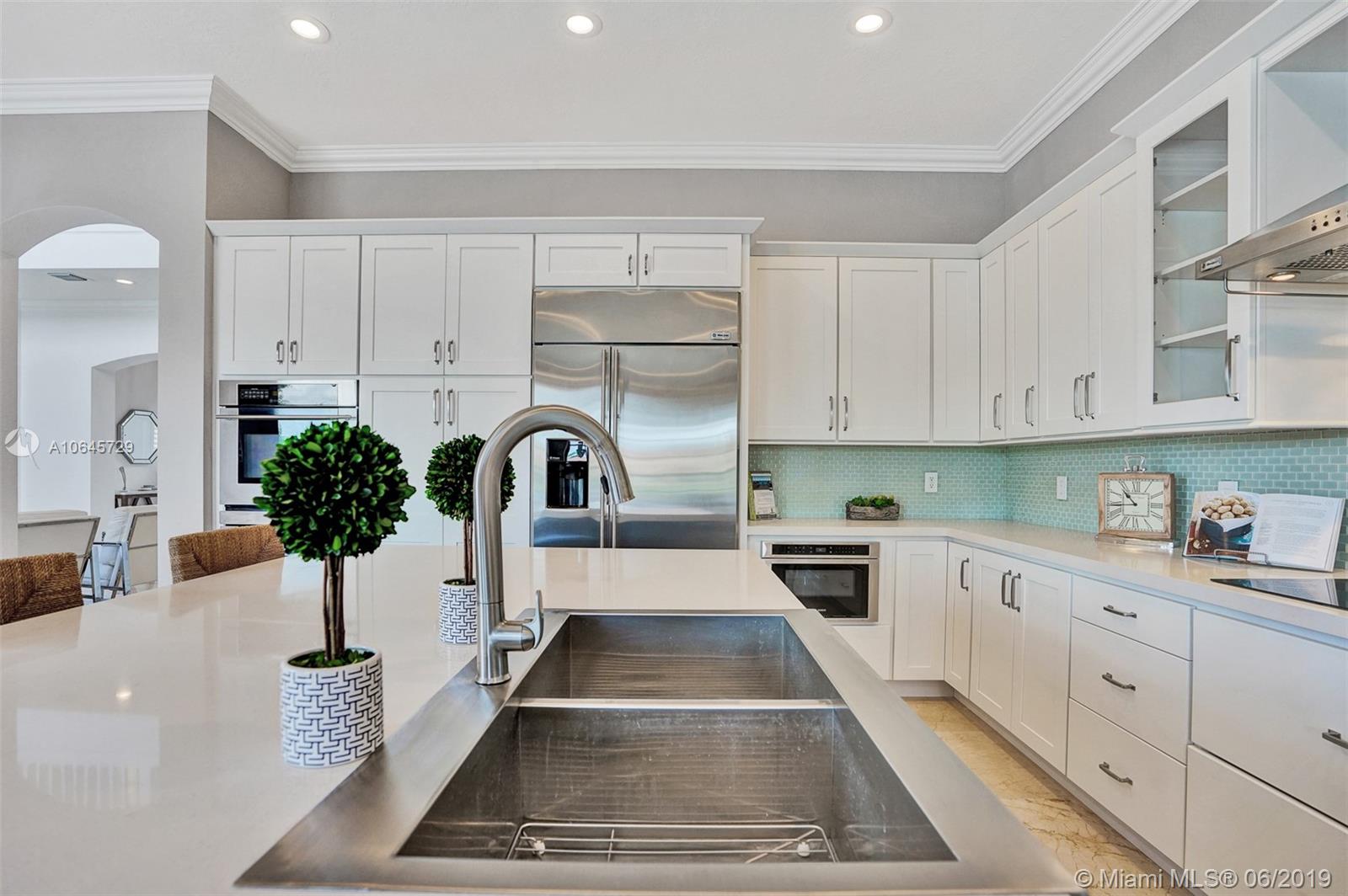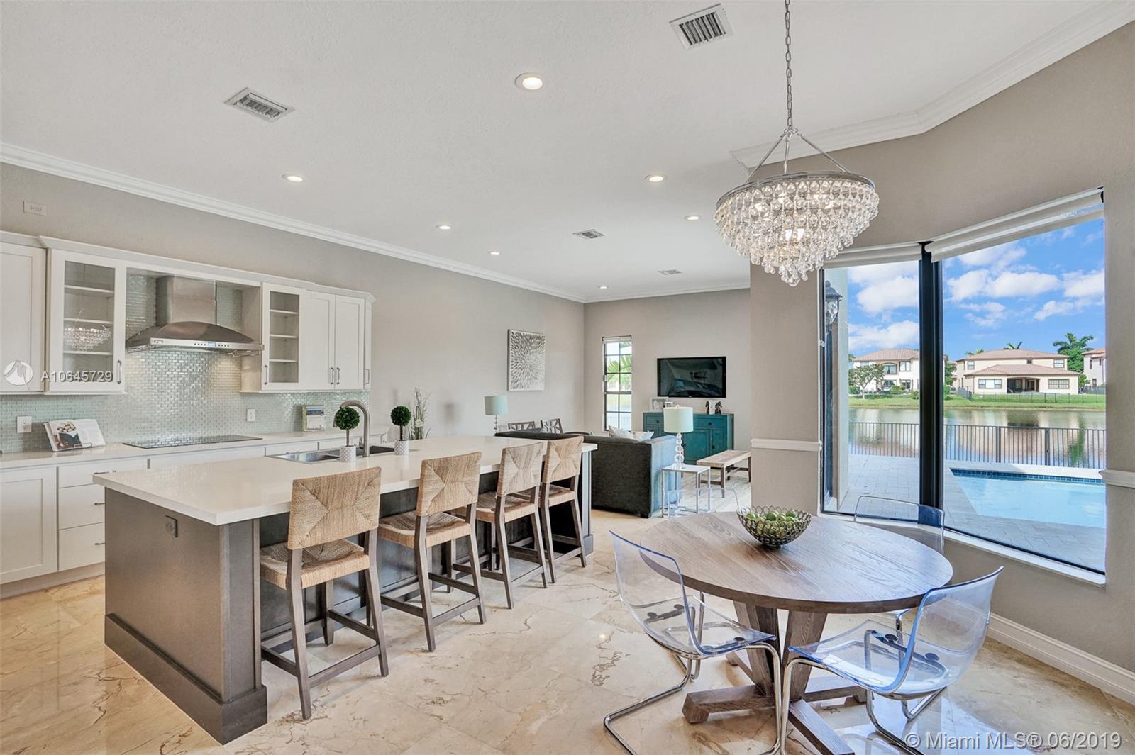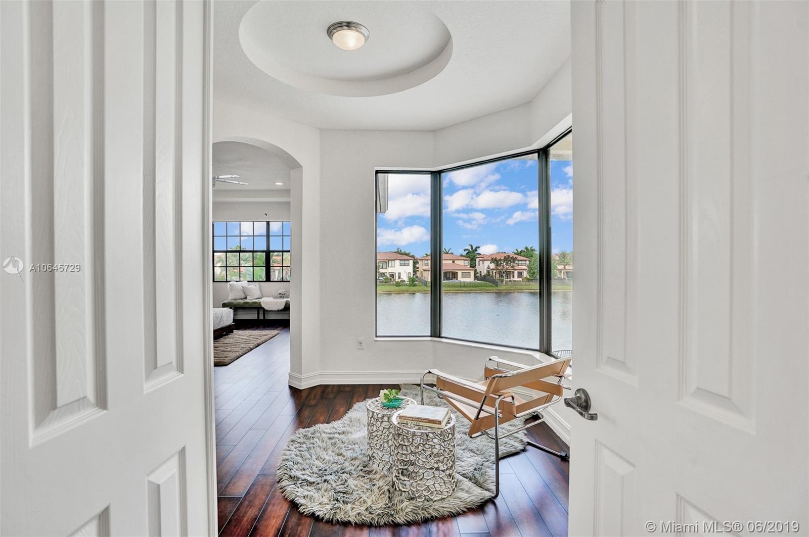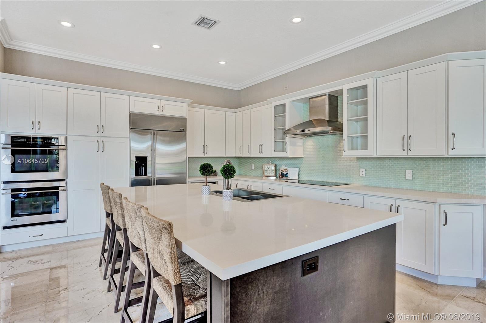 Most desirable estate home, located on a 18,909 sqft cul-de-sac lot and stretching 215' linear feet of direct lake front. This 4,054 sqft home, largest estate includes 5 bed + 1 bonus room, and 4.5 bath, 2 car garage. A newly built salt water pool, a sun shelf and umbrella holder on a travertine pool deck. A newer contemporary kitchen with white custom quartz countertop, top of the line appliances/finishes, double sinks/ovens. There is no doubt that this magnificent home has it all. Newer A/C 2016, plantation shutters, impact windows and doors, freshly painted outside and in. Situated within the lovely family-friendly gated community of Estada at Monterra in Cooper City. Walking distance of many shops, cafes, house of worship, the JCC, and A+ schools. Location. Location. Location!