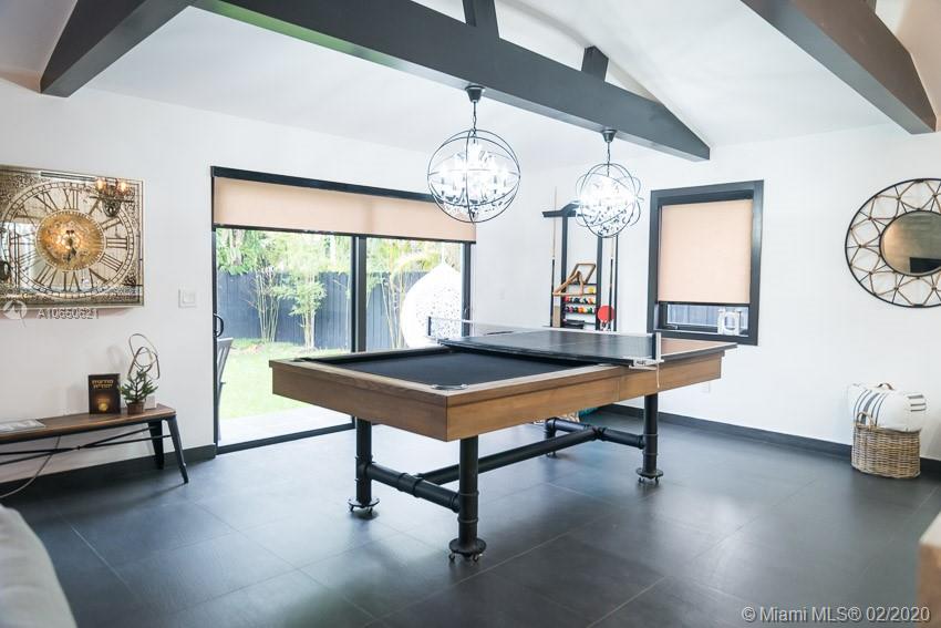 This fabulous style home is recently remodeled, high impact windows throughout, offering spacious living and dining areas, high ceilings, brand new AC, fully remodeled bathrooms with glass showers and a bathtub and built in TV on master bath, custom made open kitchen with high-end appliances including a chef's electric range and a separate laundry room. Speakers built in. Fenced-in backyard. Walking distance to La Gorce Country Club. The features on chandeliers used in this new home are incredible, just one of a kind. Perfectly situated with plenty of parking on a brand new modern concrete driveway. This property combines all the best elements to make this house the ideal home.