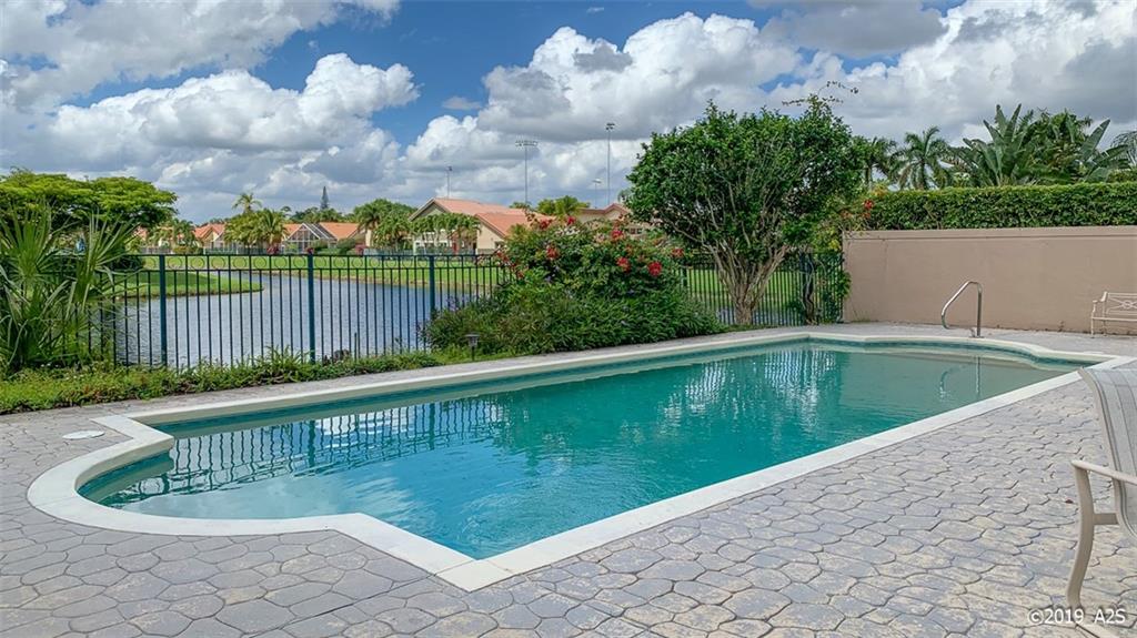 Great Opportunity in the highly desirable gated community of Santa Barbara. The front doors of this 1-story home open up to a foyer entryway, leading to a spacious formal living and dining room with volume ceilings, recessed lighting, tile flooring and big transom windows. There are gorgeous pool and lake views that can be seen from the family room, the kitchen, the formal living room, dining room and master suite. The huge master suite also features his/her walk-in closets. The barrel roof is brand new, and the home also features accordion shutters. Santa Barbara is gated and features a spectacular club house with gym, tennis courts, Jacuzzi, games rooms and party halls. No mandatory membership is required. No leasing first year owned.