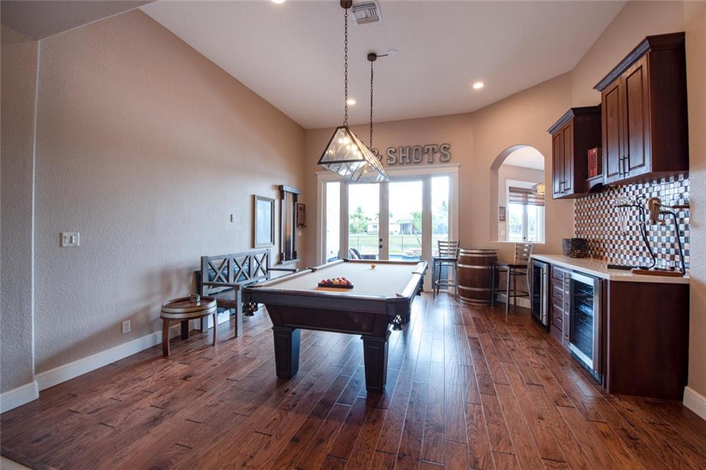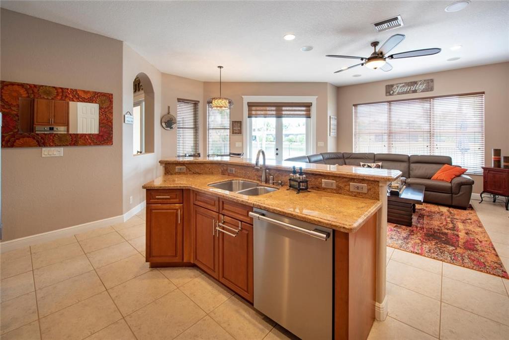Wow...beautifully designed & fully renovated home on a breathtaking waterfront lot! This home is filled with upgrades, including: 2006 roof; custom built bar w/wine & beverage refrigerators; neutral tile & gorgeous wood floors throughout; 42" wood kitchen cabinets, granite counters and all "new" Frigidaire professional stainless steel appliances; "new" washer & dryer; granite counters in laundry room & undermount stainless sink; custom closets & window treatments; 3 sets of "new" French doors; LED highhat lighting & designer light fixtures; accordion hurricane shutters; 8 camera, high definition security system; brand new pool pump; newly fenced yard and so much more! Enjoy the resort-style amenities including a clubhouse, exercise room, heated pool/spa, tennis courts, basketball, etc!
