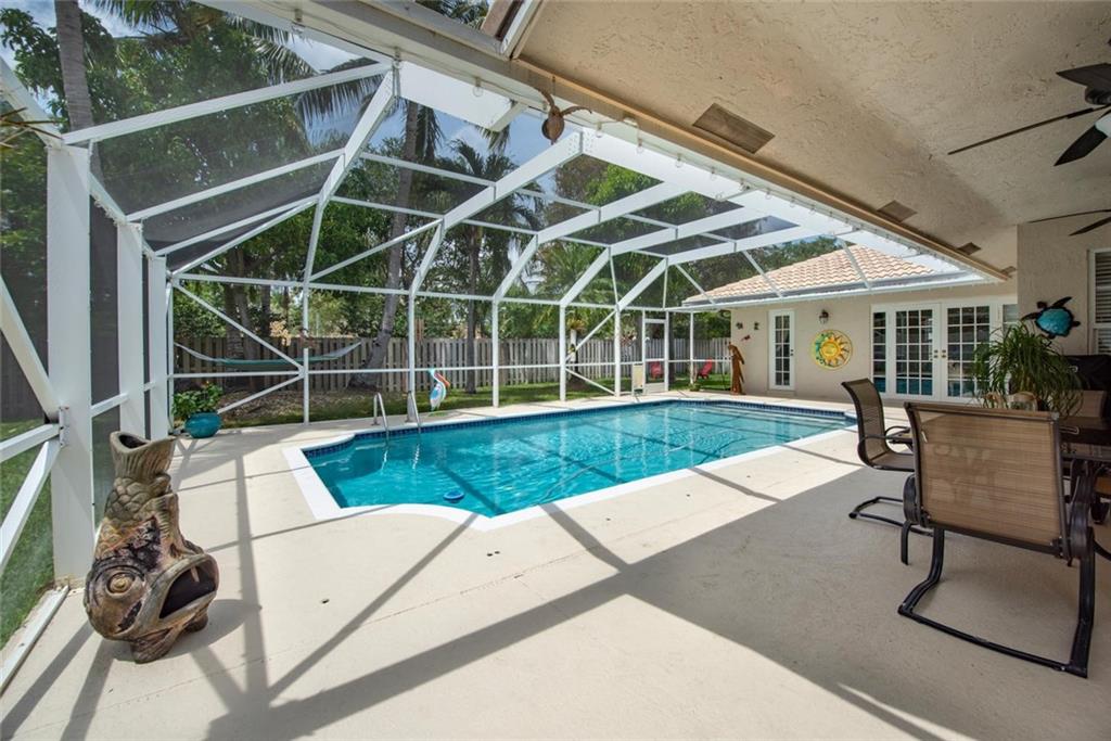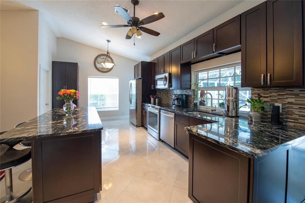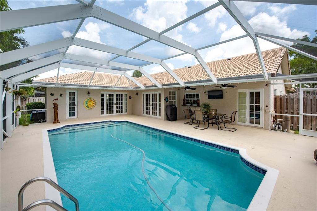 Highly desirable and move in ready home in Cypress Glen! Featuring a spacious 4BR/2Bth/2Car garage, pool home with fenced in backyard. Stunning modern open Kitchen with wood cabinets! Beautiful Granite Counters, eat in Bar/Island and Dinning combo. Picture window with pass thru to patio seating area. Vaulted Ceilings in main family room with French Doors out to pool. Porcelain Tile throughout entire home. Impact Windows! Bathrooms tastefully done, with dual sinks, shower in Master Bath. Totally remodeled in 2014! Nicely landscaped. Convenient location, close to everything no HOA and highly rated Schools. Must see!
