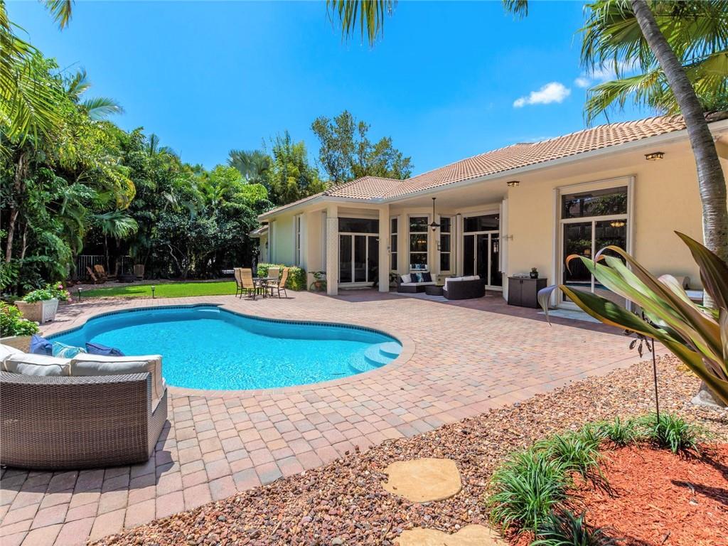 STUNNING 4BD+DEN/3.5BA/3CG WESTON HILLS home of almost 4000SF/AC, on magnificently landscaped .33 acre lot! Meticulously maintained to perfection! NEWLY UPDATED in trendy chic Pottery Barn style comfort & casual elegance w/high ceilings & walls of glass overlooking tropical fenced backyard retreat w/heated pool, huge covered brick patio, cozy fire-pit niche! NEW wood-look porcelain floors, NEW LED lights/chandeliers, NEW custom millwork, NEW shades, NEW paint in modern tones. WHITE Kitchen, granite & Italian mosaic, stainless appliances, huge center island. 3-split flr plan, sumptuous master suite w/sitting area, custom closets. NEW pool pump/motor 2016, NEW water heater & garage doors/motor system 2017, ACs 2014/2018, NEW half bath & laundry features, storage room, accordions & much more!