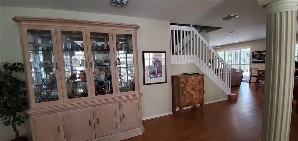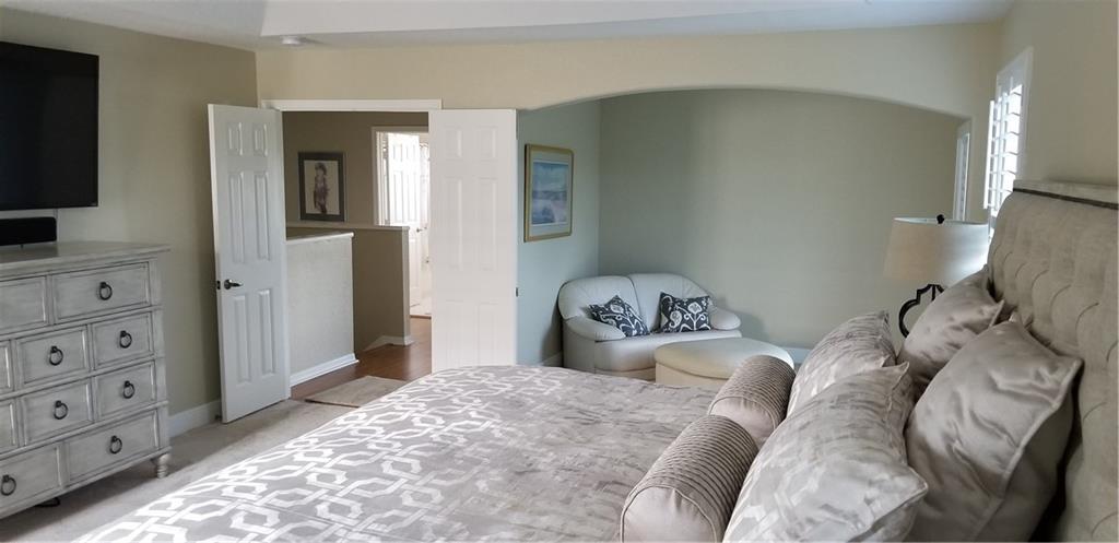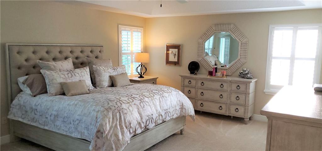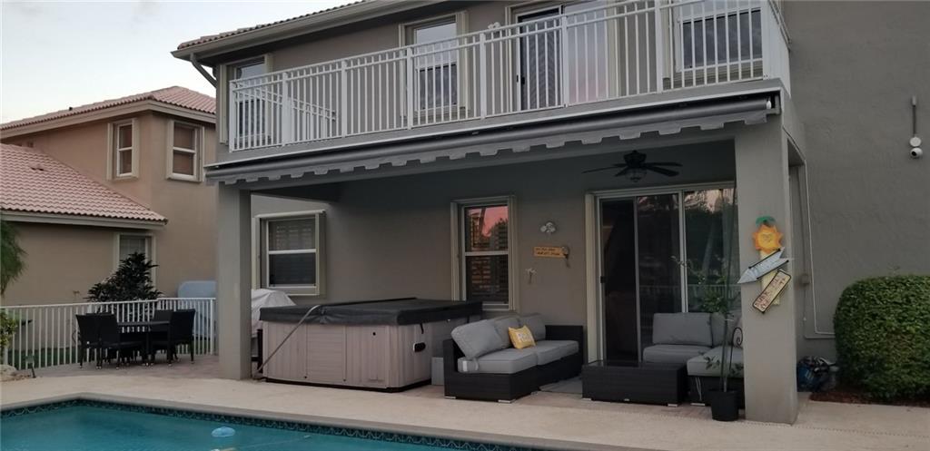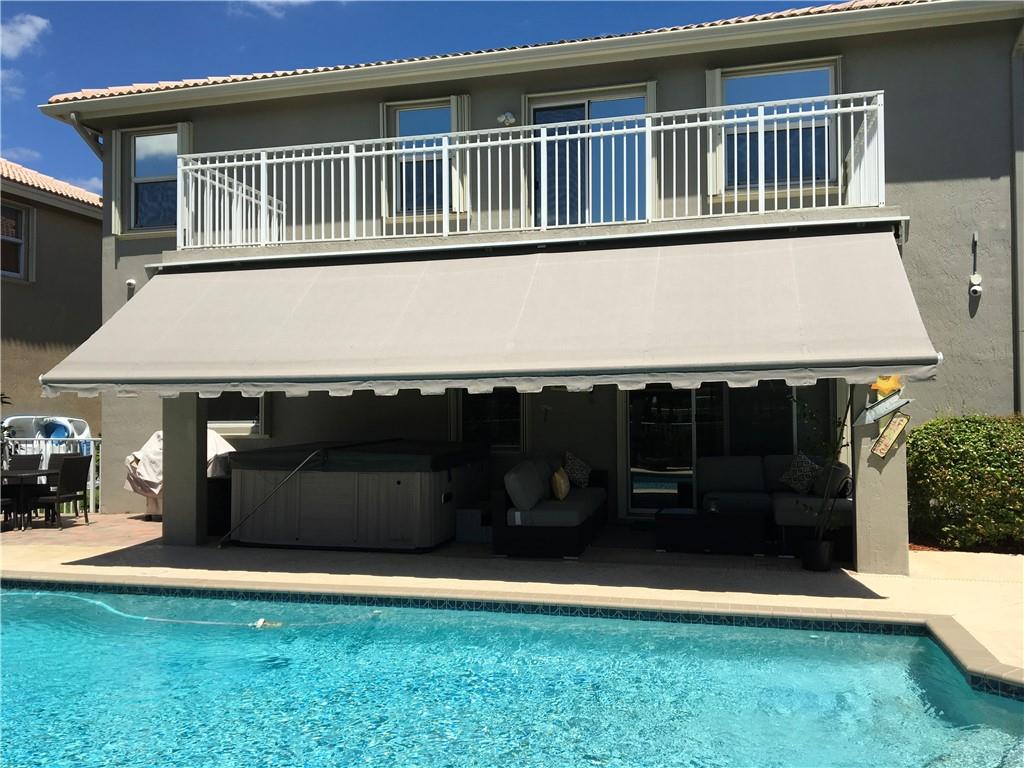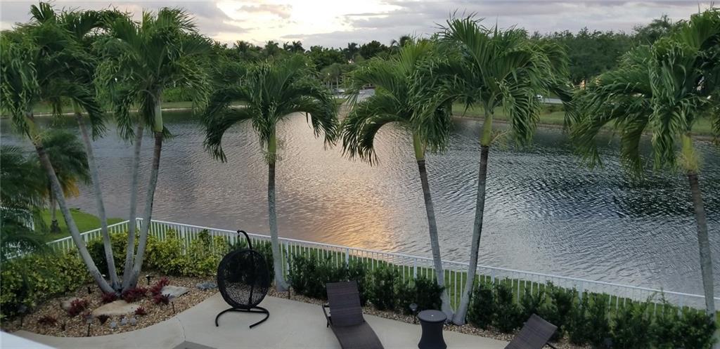 Backyard paradise! Rare, 4/3 lakefront pool home w/3 car garage (all bedrooms upstairs). Tropical pool area overlooking lake w/ covered lanai & hot tub. Open kitchen w/SS appliances & granite counters, master suite w/sitting area that opens to large balcony, his/her walk-in closets, roman tub. New carpet/baseboards in all bedrooms. Plantation shutters thru-out and Accordian hurricane shutters on all windows. Camera security system, new water heater & electrical panel w/built in surge protector. Upgraded lake lot. Gated community offers resort like amenities; clubhouse, playground, tennis, fitness center, 3 pools & more. Maintenance includes lawn care, sprinklers, cable, internet, alarm monitoring, clubhouse, & security. A rated schools, close to shopping, restaurants & highways.