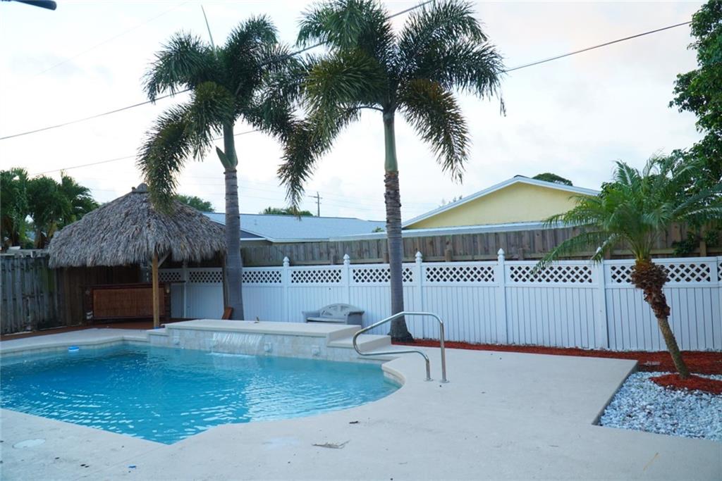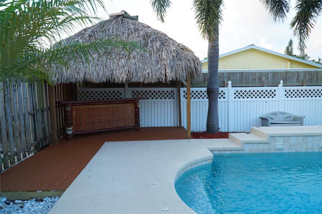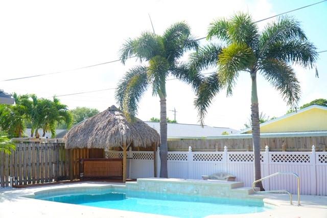 A beautifully REMODELED home in an incredible neighborhood of Boca with NO HOA! This house is where TASTEFUL DESIGN meets IDEAL LOCATION. Not only is this house located near the beach, but it is equidistant to Boca's shops, restaurants, and business district as well. The property's indoor space features granite countertops, new Stainless Steel appliances, Wine cooler, New Bathrooms, and au courant flooring. Hurricane Shutters on all windows! While its outdoor space offers a private oasis, special fit with a waterfall swimming pool and a custom made Tiki Bar.