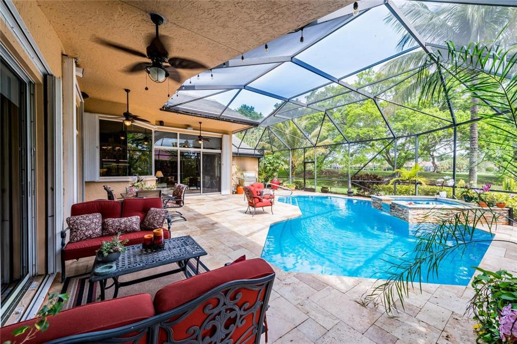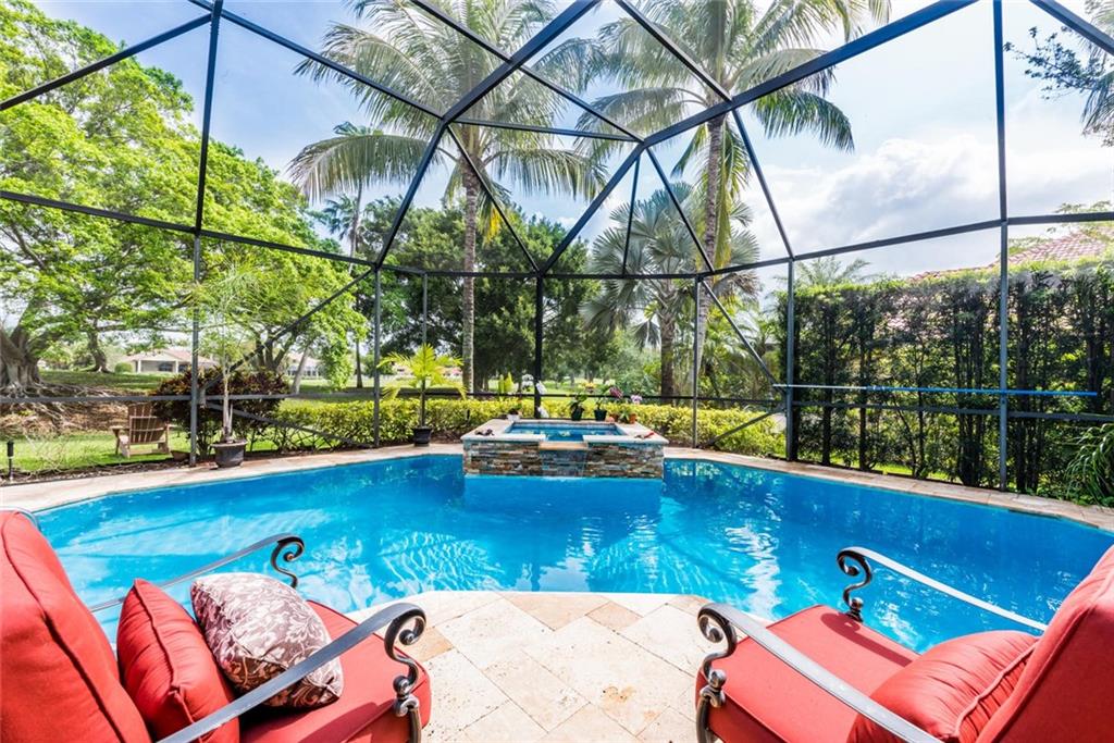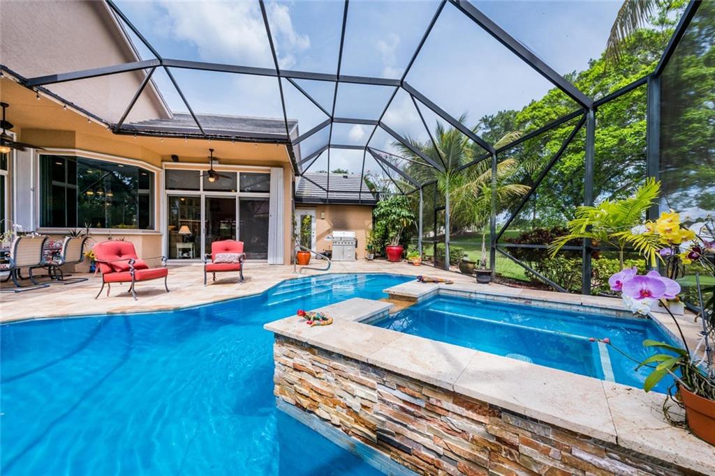 STUNNING GOLF COURSE ESTATE! TOTAL REMODEL WITH INCREDIBLE VIEWS! A TRUE 5 BEDROOM+ OFFICE, TRIPLE SPLIT FLOOR PLAN, BEAUTIFUL HARDWOOD FLOORS & CROWN MOLDING THRUOUT. YOU’LL LOVE THE CHEF’S DREAM KITCHEN WITH GAS RANGE, HIGH-END 42” WOOD CABINETS, GRANITE COUNTERS, SS APPLIANCES, WINE COOLER & BAR AREA. NEW REDESIGNED SOLAR HEATED POOL/SPA, HUGE SCREENED ENCLOSURE & COVERED AREA IS GREAT FOR ENTERTAINING. ACCORDION SHUTTERS, CUSTOM IMPACT FRONT DOORS, PAVER CIRCULAR DRIVE & WALKWAY. CUSTOM CLOSETS IN EVERY BEDROOM PLUS GARAGE BUILT-INS. HURRY TO THIS ONE!