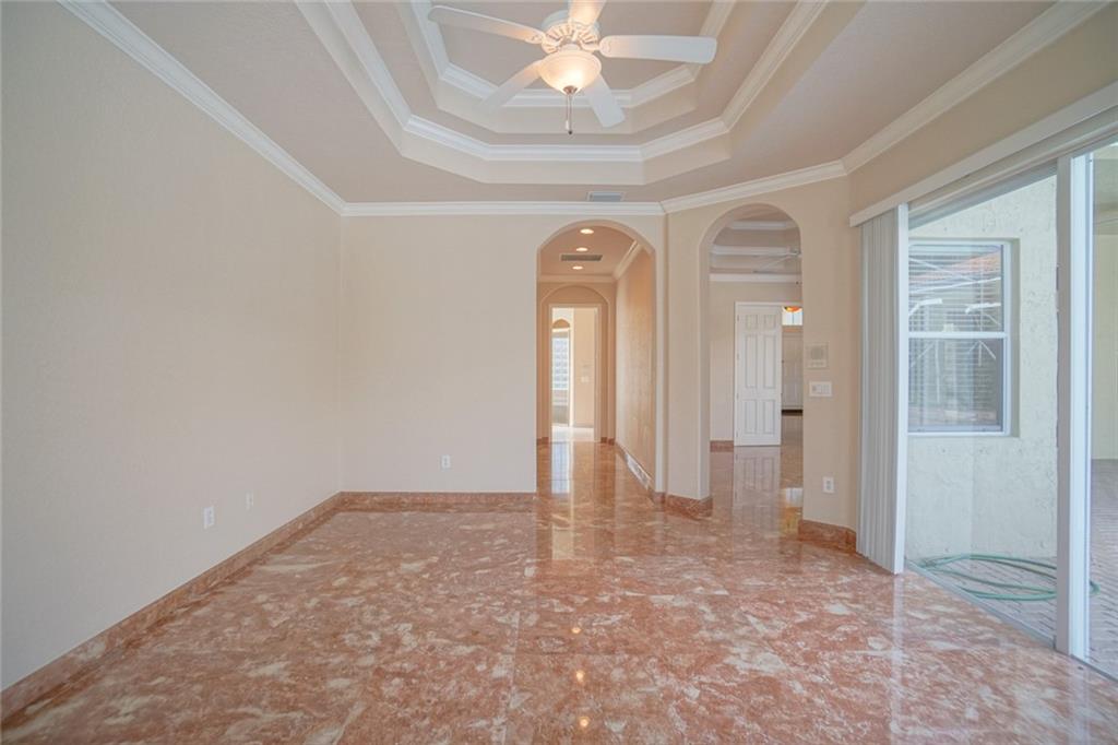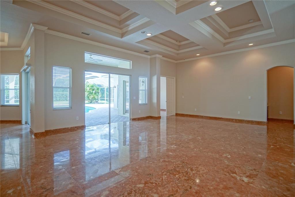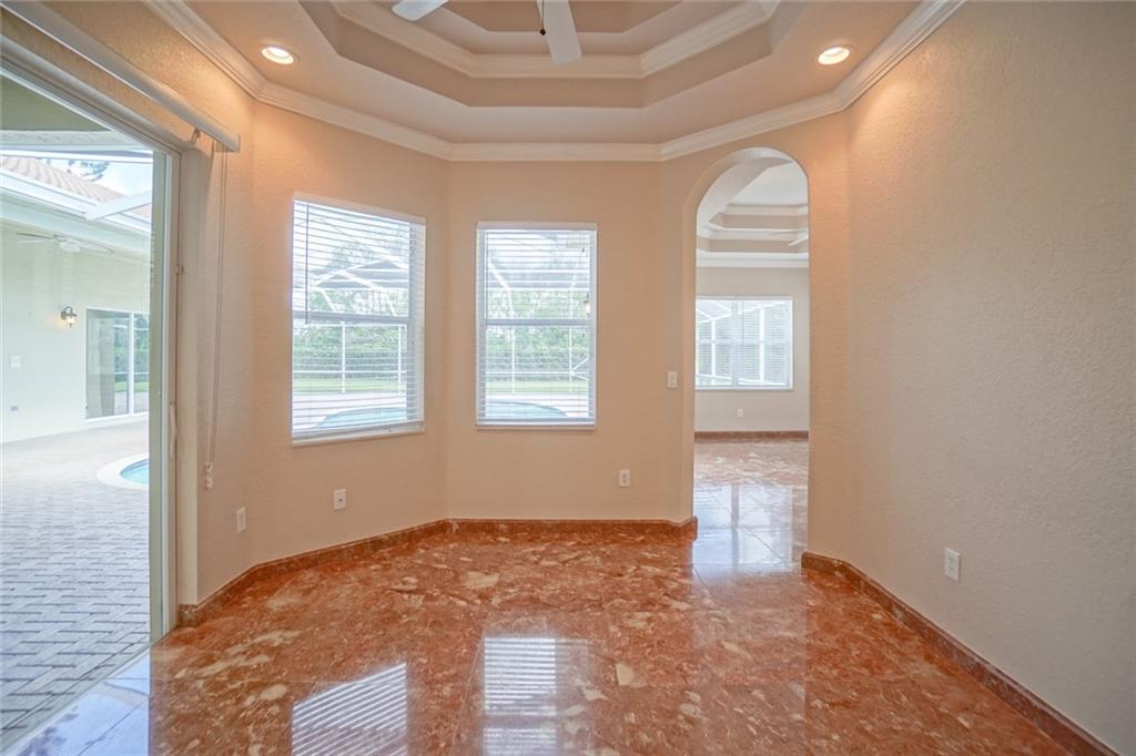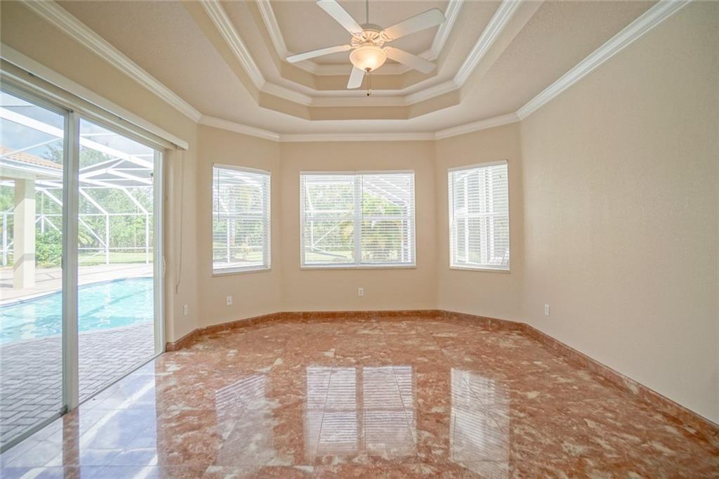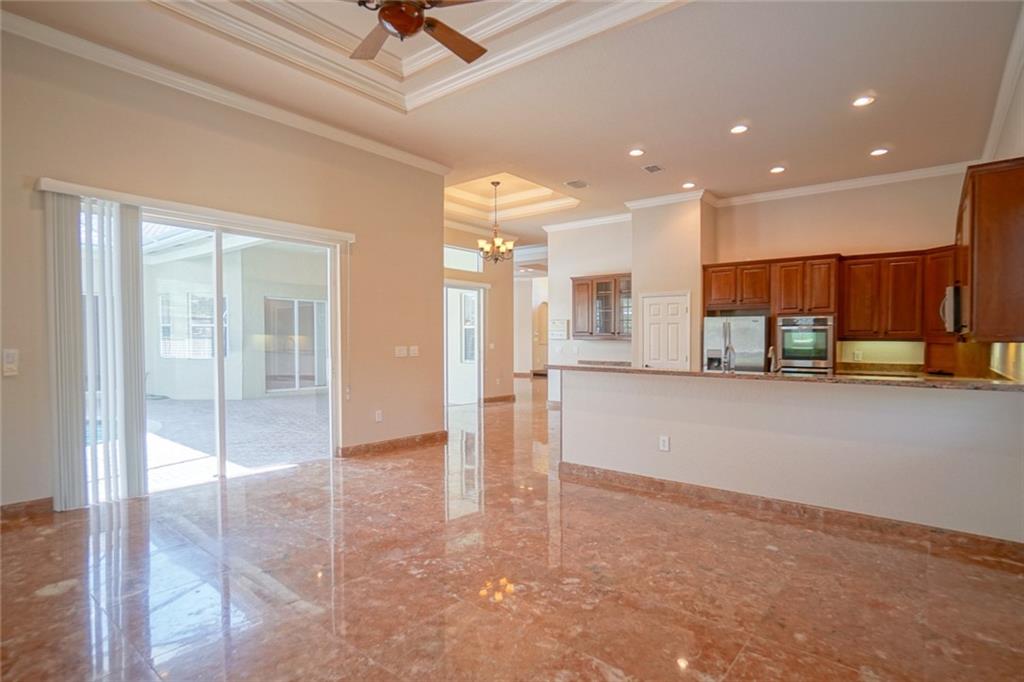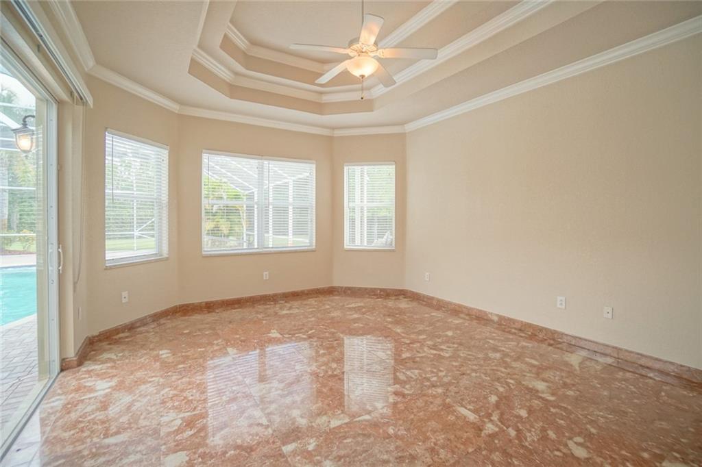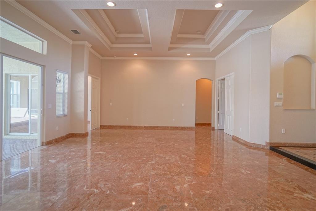 BEST VALUE IN HIGHLAND RANCH ESTATES! Much sought after Michelangelo model features 4 Bedrooms 5 Baths, plus den and play room. Marble floors, elegant tray ceilings, wet bar. Over sized living/family room areas with gorgeous views of the pool. Gourmet kitchen with Stainless Steel appliances, granite counter tops, center island and snack bar. Master suite, offers large sitting area, as well as his and hers baths. Dual walk-in closets. Take in views of the pool from the comfort of your master suite. The privacy of the covered Patio area and screened pool make it a great space to enjoy and entertain. Over-sized fully fenced private yard. A/C Units 3-4 years old. Brand NEW water heater. This spectacular home has it all.