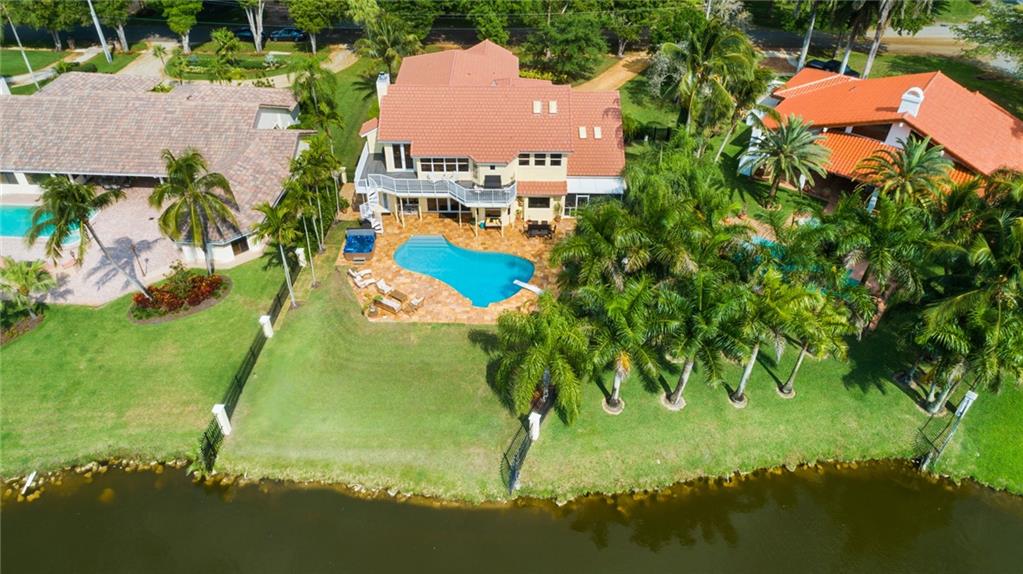 With lakefront location within the prestigious gated community of Lago Mar Country Club, this home offers a life of leisure and luxury for its lucky new owners. This home has been completely redone throughout. From the marble entryway to the updated saltwater pool and the lush landscaping with lighting, no detail has been overlooked. The sweeping floor-plan offers 5 bedrooms and 5 bathrooms, including the master suite with plush carpet and an ensuite with a smart Toto toilet, soaking tub and separate shower. The eat-in kitchen is well-equipped with a Wolf gas stove, a double oven, Sub-Zero refrigerator, electronic curtains and white quartz countertops. Extra features include impact windows throughout, a full house generator, two tankless water heaters and a water heater in the garage.