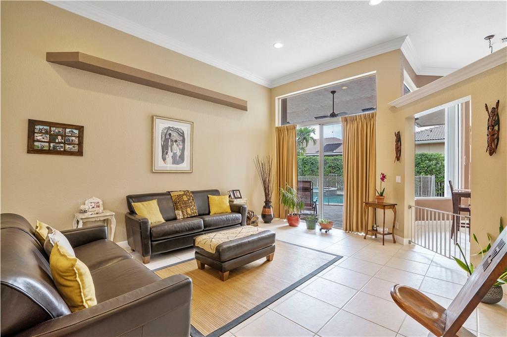 Priced to sell!! This home is located in the gated community of Pelican Isles of Wyndham Lakes!! Great schools, accordion shutters throughout, sought after Corsica model, triple split plan, 4 Bed, 3 Bath, family room, PLUS DEN/OFFICE as 5th room. Equipped with a 3-Car garage!! His and hers master closets, MB tub and separate shower, New A/C, crown molding, neutral paint, 12' ceilings, tile & laminate flooring throughout. Spacious kitchen, white cabinetry, granite counters and SS appliances. Cabana bathroom door leading to pool w/ raised heated spa, baby gate, alarm system. Ideal floor plan & light and bright! Live & enjoy this neighborhood located close to highways, shopping and entertainment. One of the lowest HOA fees! Call Patricia today...this is a must see! Seller's Relocating...