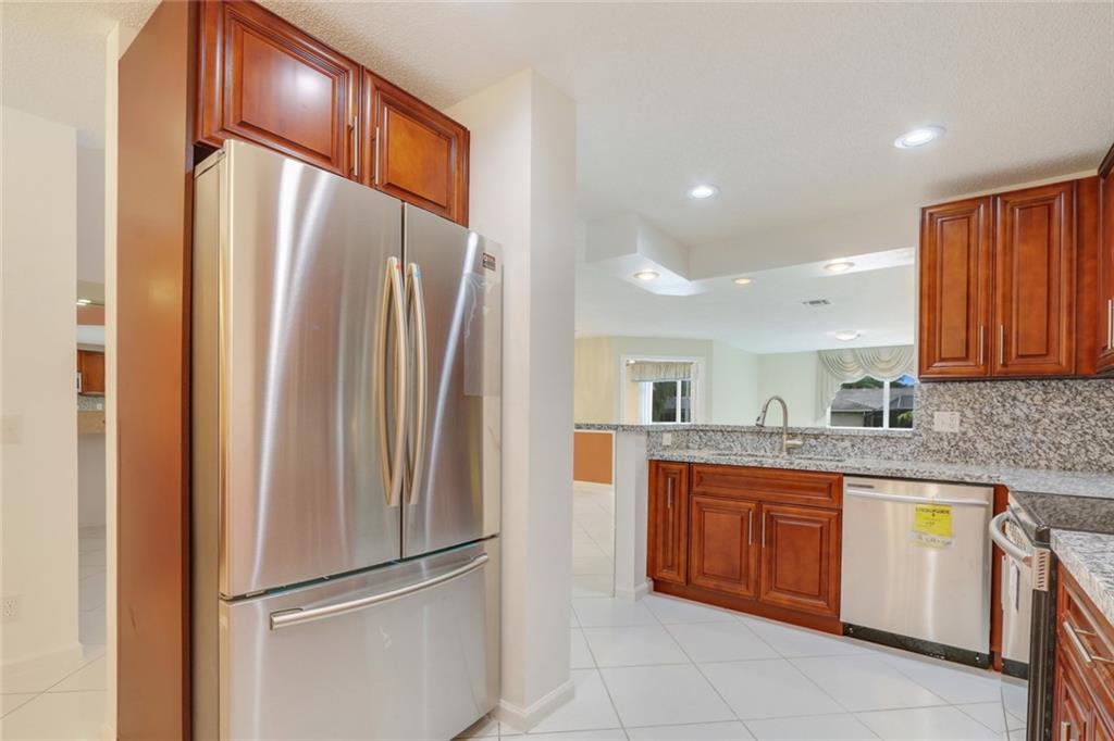 3 bedroom, 2.5 bathroom & an OFFICE on a beautiful canal!! This is the best deal in all of Coral Springs! Over 2,000 square feet under air! Featuring a beautifully updated kitchen with real cherry wood cabinets, granite counters, and brand new high-end Stainless Steel appliances. Formal office & updated 1/2 bathroom downstairs. Upstairs features 3 bedrooms in a split floor plan. Master bedroom features a HUGE walk-in closet and updated bathroom with new tile & shower with frameless glass shower door. AC replaced in 2011. Low HOA fee includes lawn maintenance & community pool!
