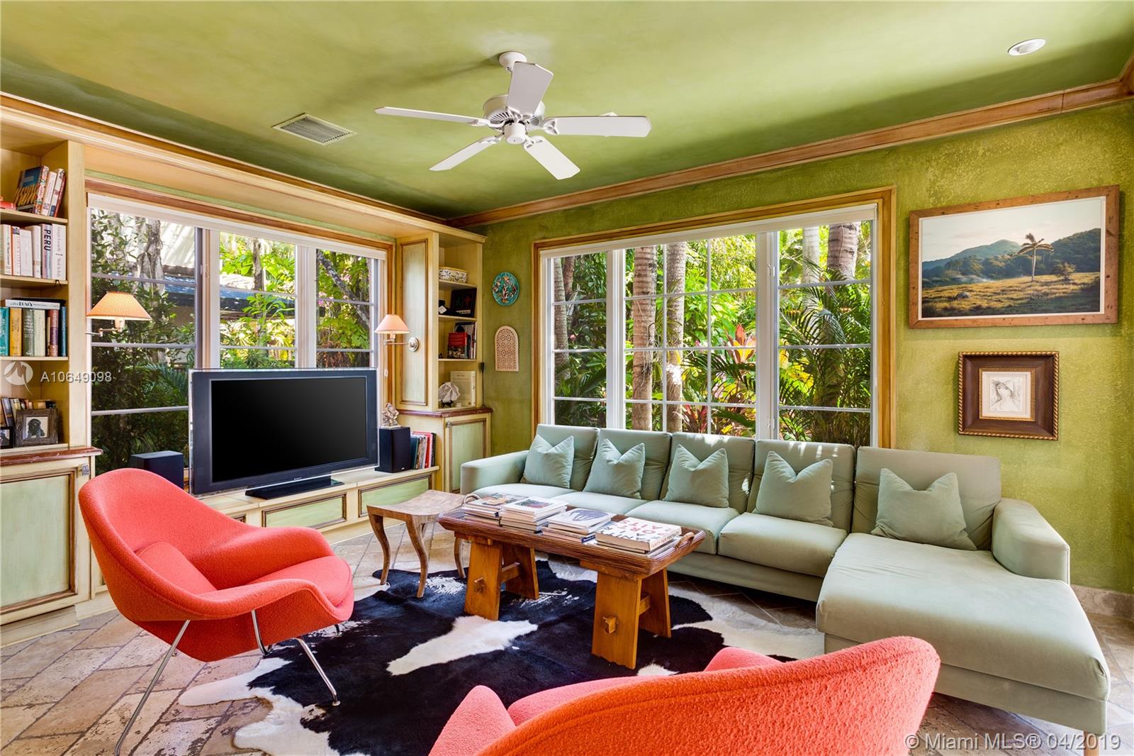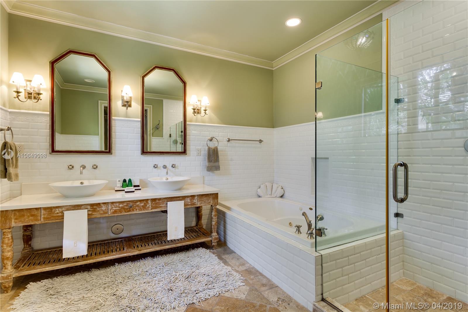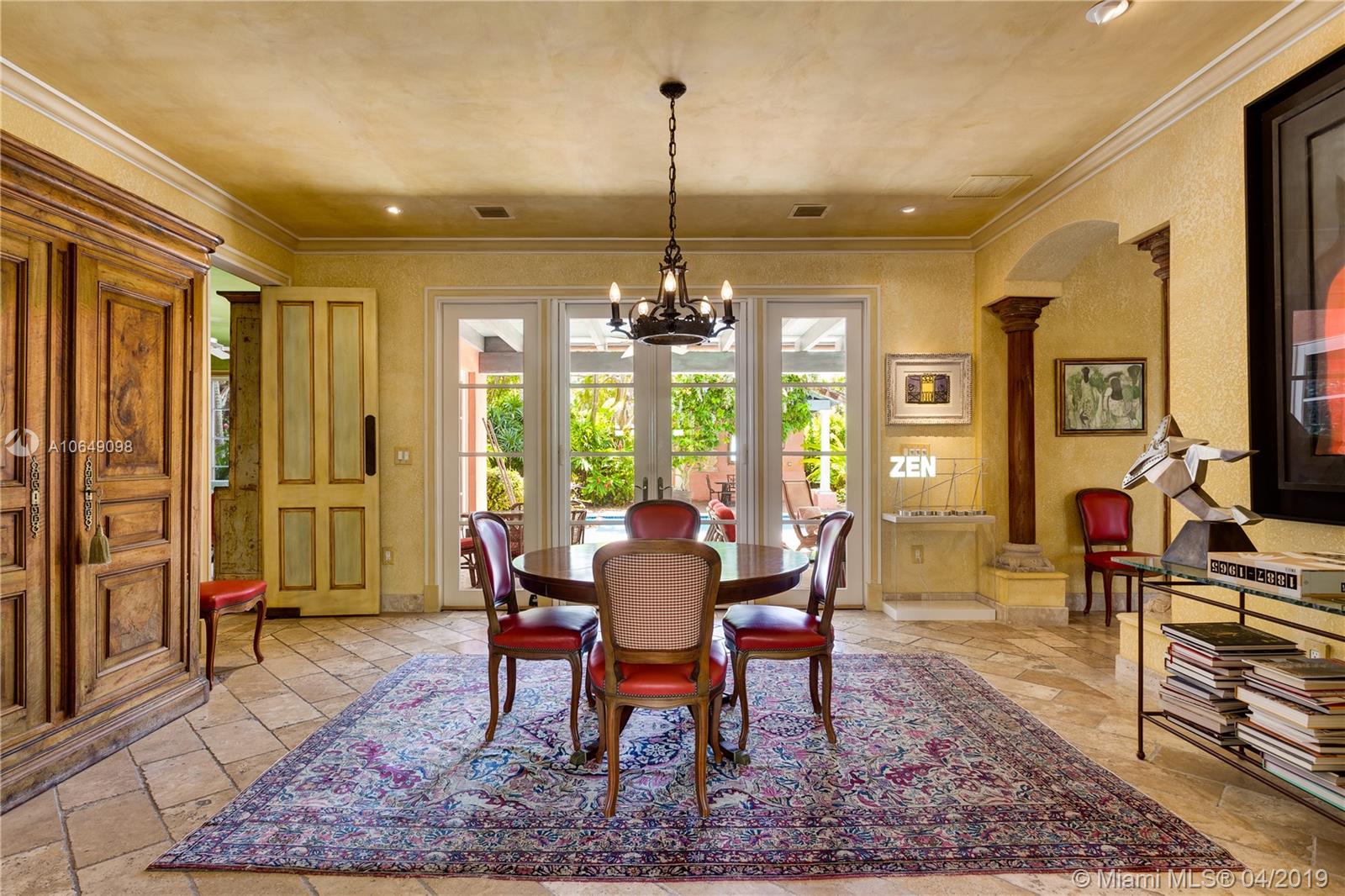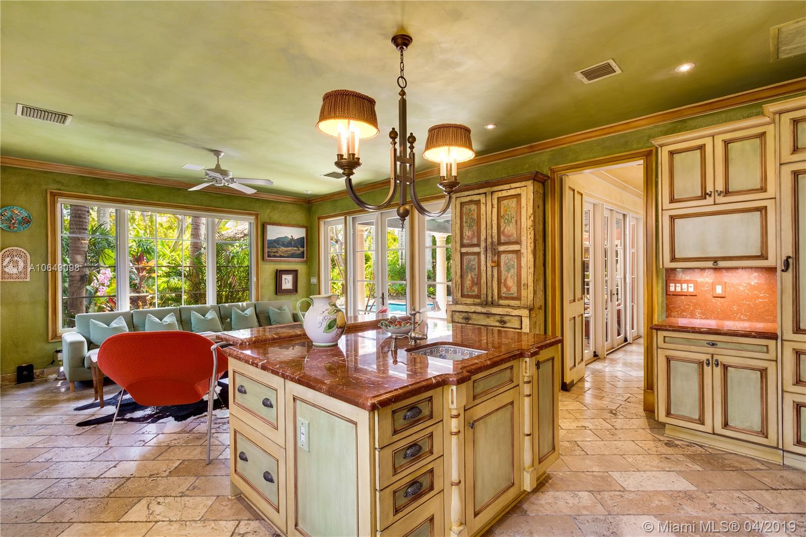 Built in 2000 this remarkable 4031 actual square foot 3 bedroom 3.5 bath replica of a Spanish Colonial Hacienda was designed by renown architect, Luis Jauregui with landscaping by Lester Pancoast. Built in a classic H shape to maximize openness to nature, breezes and natural light. The loggia entry leads past a serene courtyard of rare palms & orchids to the main entrance gallery. The main salon has a 14' tall open timbered ceiling and a wood-burning fireplace. Floors throughout the home are tumbled Travertine marble. Impact doors & windows throughout. Formal dining room, chef's style kitchen open to a family room. In the bedroom wing there is a master suite + two other bedrooms. Cabana house with bath. 40' pool. 100'X150' lot. Sublime Old World architecture with every modern convenience.