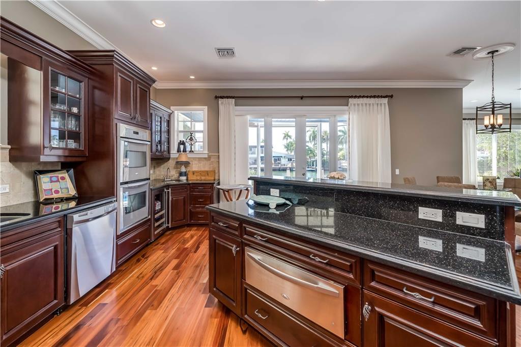 "Casa Del Sol" exceptionally designed and Luxury Custom Built home offers 5 bedrooms/ 5 baths with over 5000 sq. ft. This residence embodies the Florida Lifestyle w/ southeast exposure, prevailing Caribbean breeze & minutes to the Port. Enjoy 70' on the Wide Carlotta River, dock your 60 ft. Yacht, Deep Draft Sailboat, or multiple boats stern too. Every detail of this home was created by a renowned designer. Incredibly Spacious open floorplan beams with sunlight throughout both floors. Enjoy the formal & informal dining, wet bar, chef's kitchen w/walk-in pantry, wine cooler, ice maker while entertaining many. The living area, warm and inviting, is surrounded by glistening wide water views. Extensive patios surround the blue pool/spa, outdoor kitchen, dining areas & dock. +Super Dog Run!