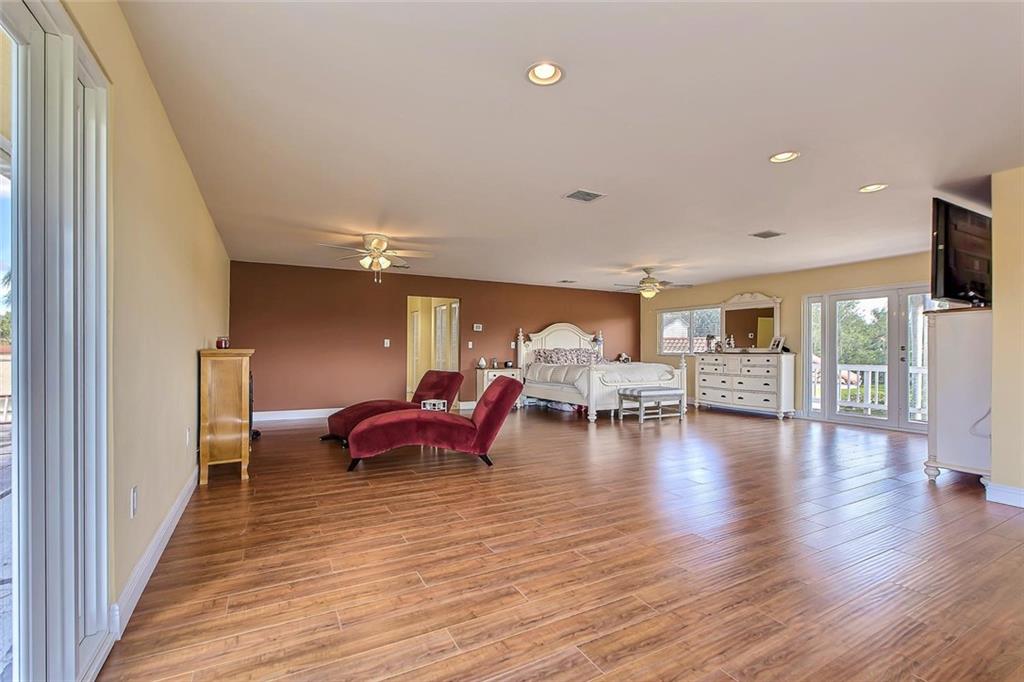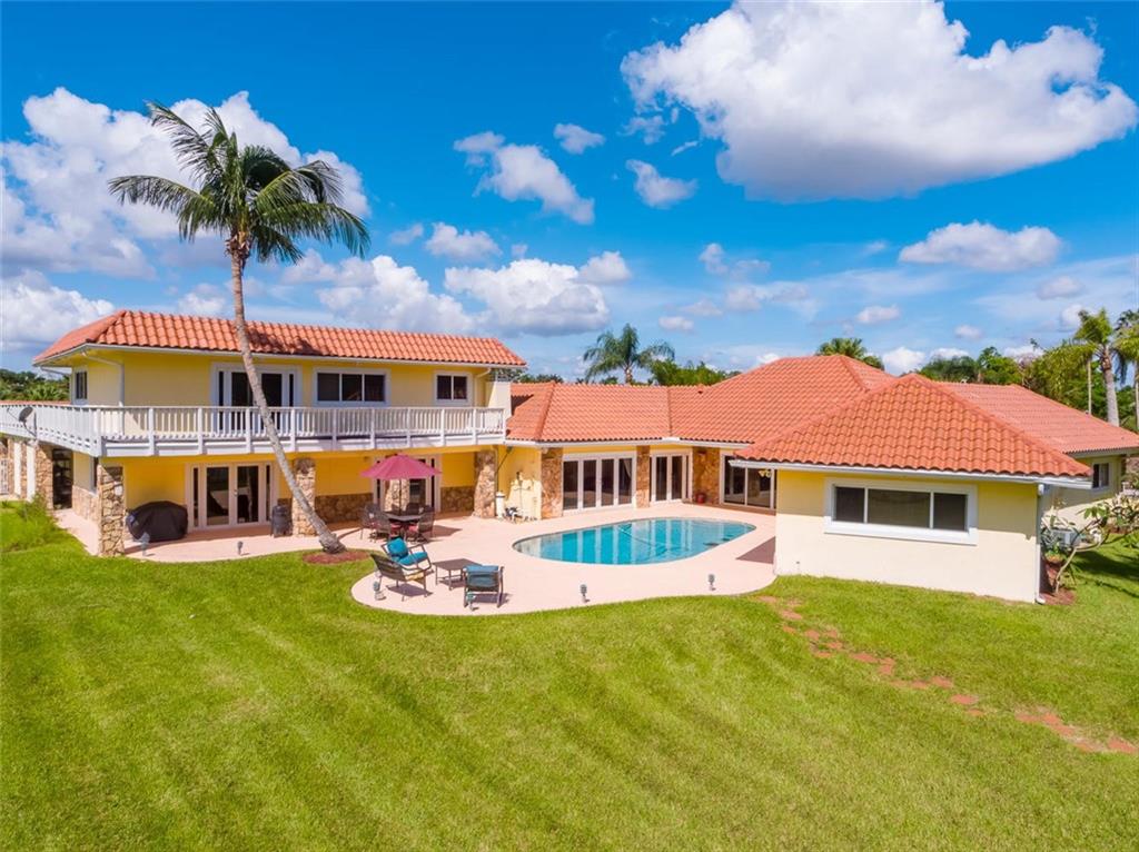 This spectacular Lawson Isles home has been updated from top to bottom including the kitchen, bathrooms, flooring and Impact glass doors & windows. This home has an amazing floor-plan with a formal living & dining room, family room with a wood burning fireplace and wet bar, plus a huge recreation/game room complete with a full size bar for entertaining. The kitchen has endless countertop and storage with wood cabinets, granite, stainless appliances and a huge walk-in pantry. There are two huge master bedrooms (1 downstairs & 1 upstairs). Both master bathrooms have a Jacuzzi, frameless shower & dual sink vanities. The 1.13 acre lot has a salt system pool, pond & an array of palm & fruit trees (Banana, Mango, Tangelo, Lemon & Lime). There's a 2 car garage & 6 car garage that fits a RV/Boat.