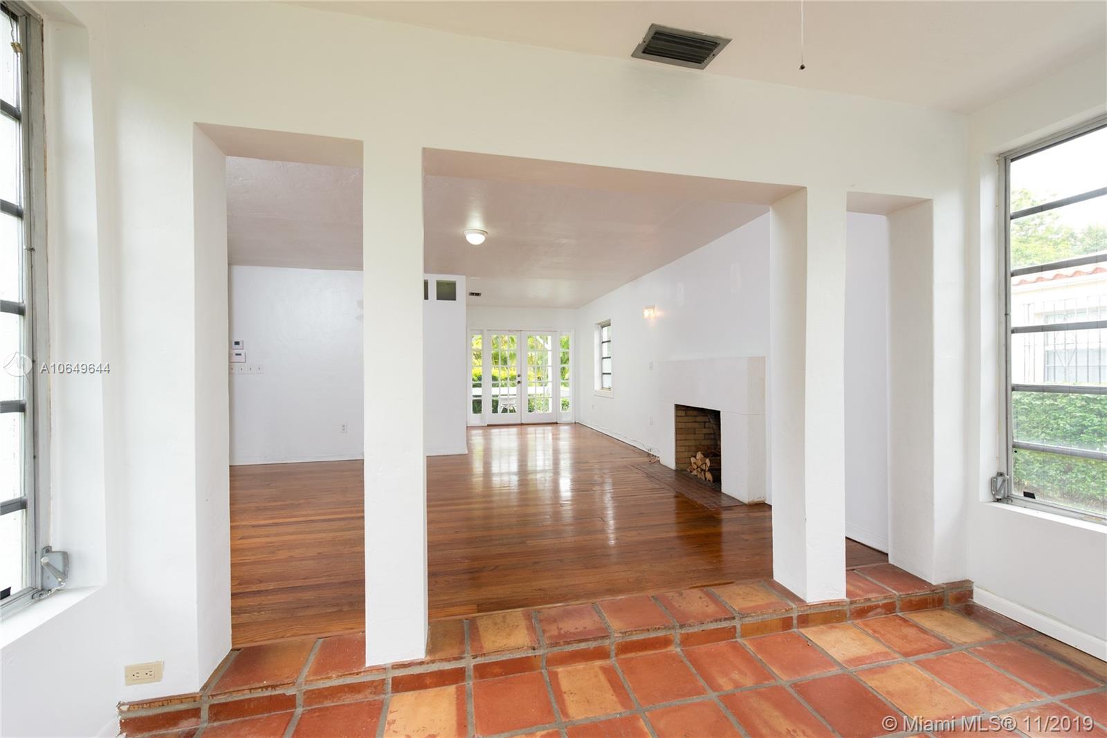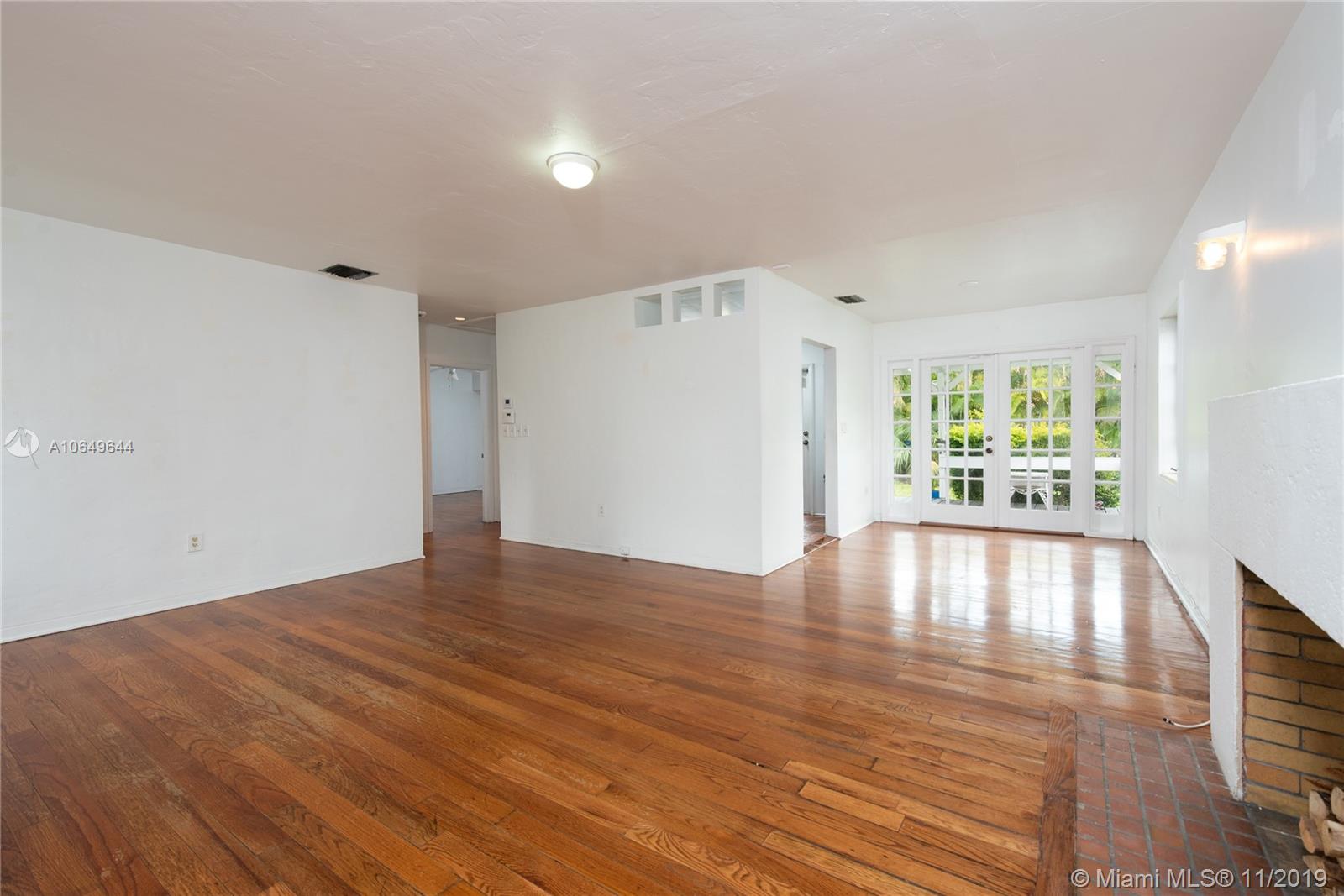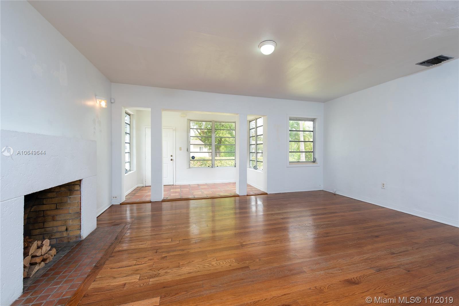 Great opportunity to get in and own in Gables neighborhood that is undergoing multiple renovations and investments in neighboring houses. This mid-century charmer needs some TLC but sits on an oversized lot and includes some great features that are ideal for enhancing and building upon like: a spacious master bedroom with ensuite bathroom and large closets, original wood flooring throughout, and a functioning fireplace in the open floor plan. French doors lead to a covered patio terrace great for entertaining. Large lot is ideal for those looking to expand. On sewer, not septic. Walking distance to downtown Coral Gables stores, restaurants and offices. Within Coral Gables Preparatory School boundary. Home has been owned and maintained by same homeowners for the last 10 years. Sold as-is.