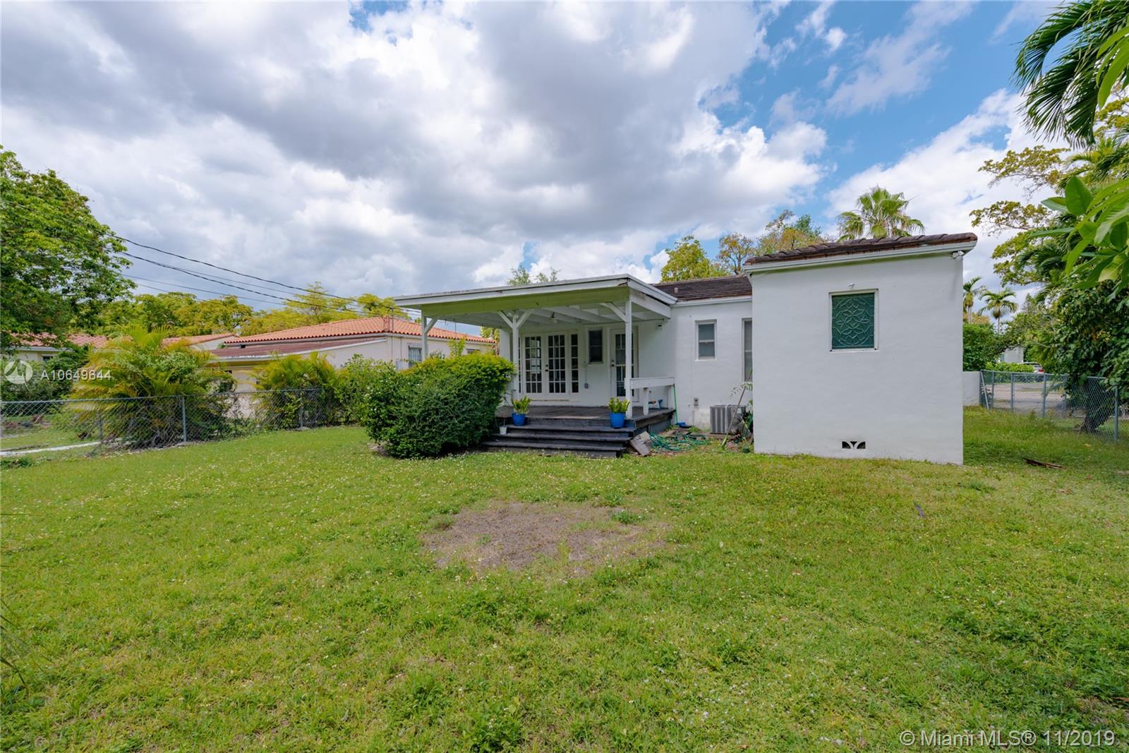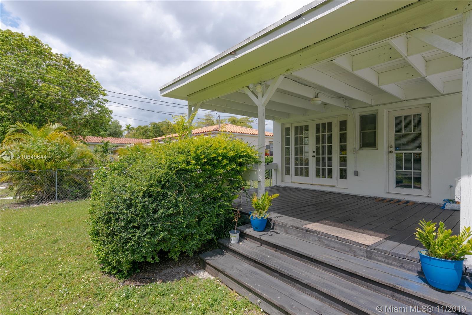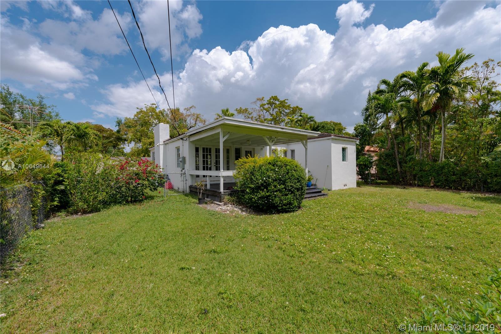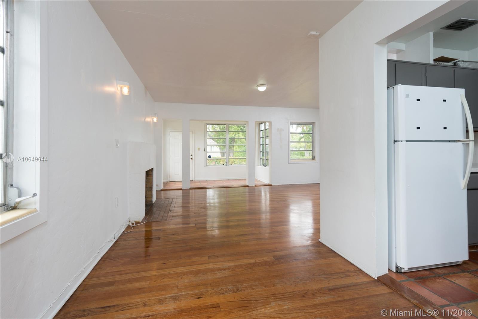 Great opportunity to get in and own in Gables neighborhood that is undergoing multiple renovations and investments in neighboring houses. This mid-century charmer needs some TLC but sits on an oversized lot and includes some great features that are ideal for enhancing and building upon like: a spacious master bedroom with ensuite bathroom and large closets, original wood flooring throughout, and a functioning fireplace in the open floor plan. French doors lead to a covered patio terrace great for entertaining. Large lot is ideal for those looking to expand. On sewer, not septic. Walking distance to downtown Coral Gables stores, restaurants and offices. Within Coral Gables Preparatory School boundary. Home has been owned and maintained by same homeowners for the last 10 years. Sold as-is.