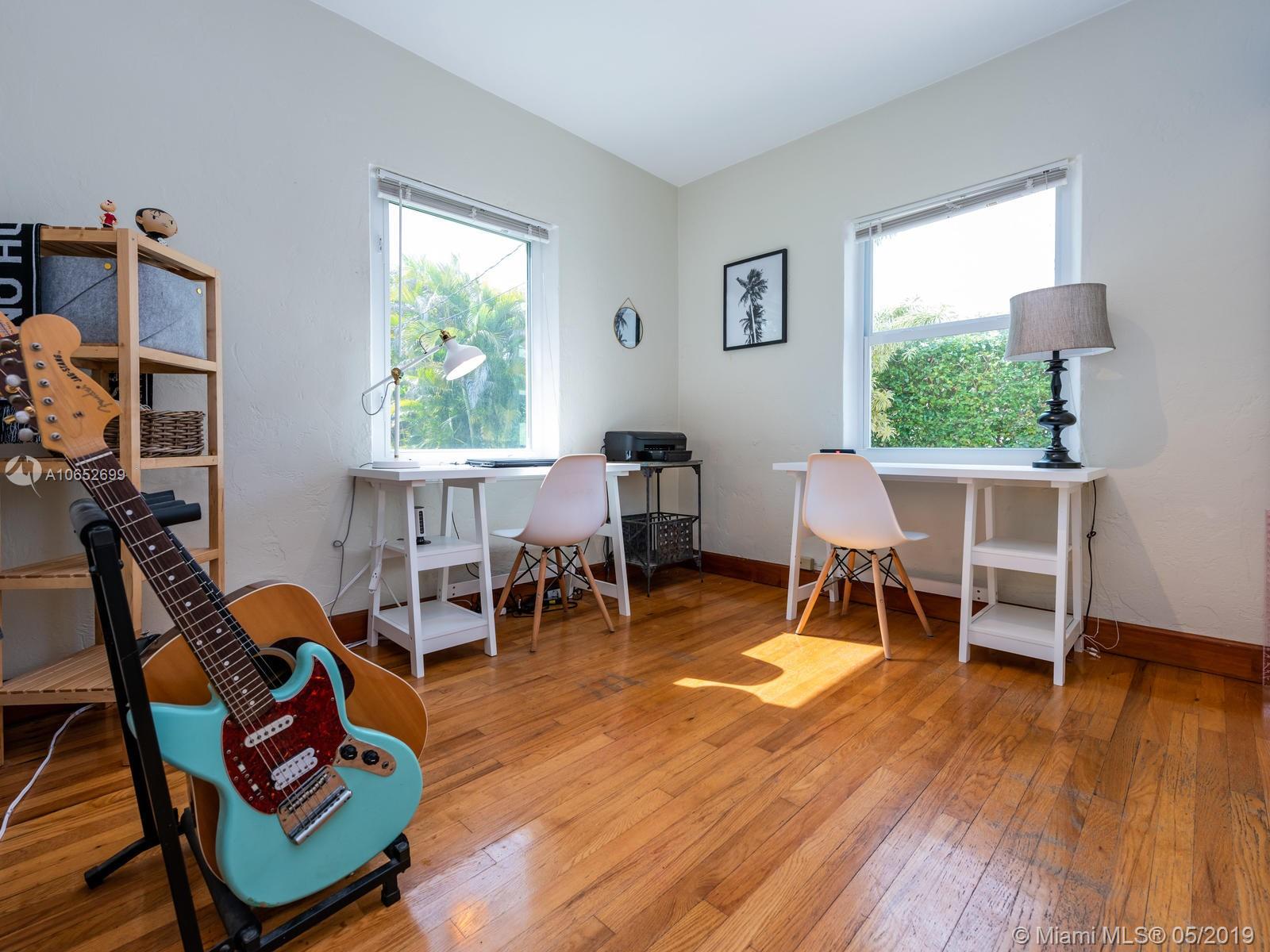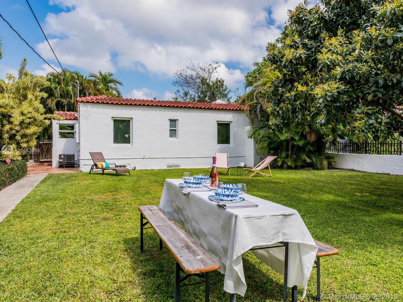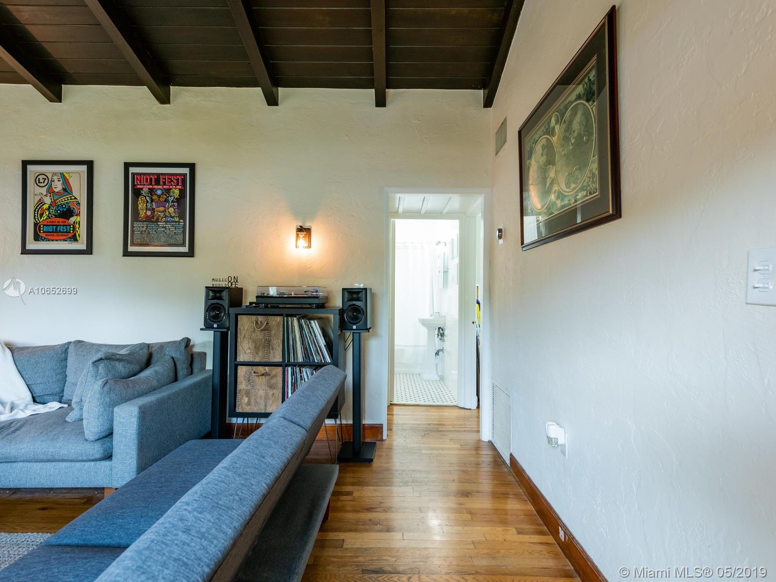 BLUE SHORES NIRVANA - It’s all blue skies and breezy vibes at this adorable 2/1 Shores bungalow with its massive backyard perfect for relaxing afternoons and evening entertaining. Step into the impressive great room with vaulted wood beam ceilings and you’ll find a home that’s been lovingly cared for with rare and charming period details throughout. Just two blocks from Downtown Miami Shores, this home features new hurricane impact windows, newer A/C, original hardwood floors, original working fireplace, updated electric, and a detached one-car garage. This is your chance to have your own little slice of heaven in the Shores at an amazing price!