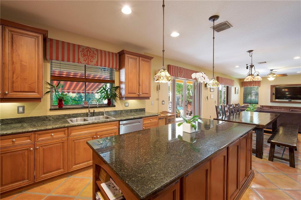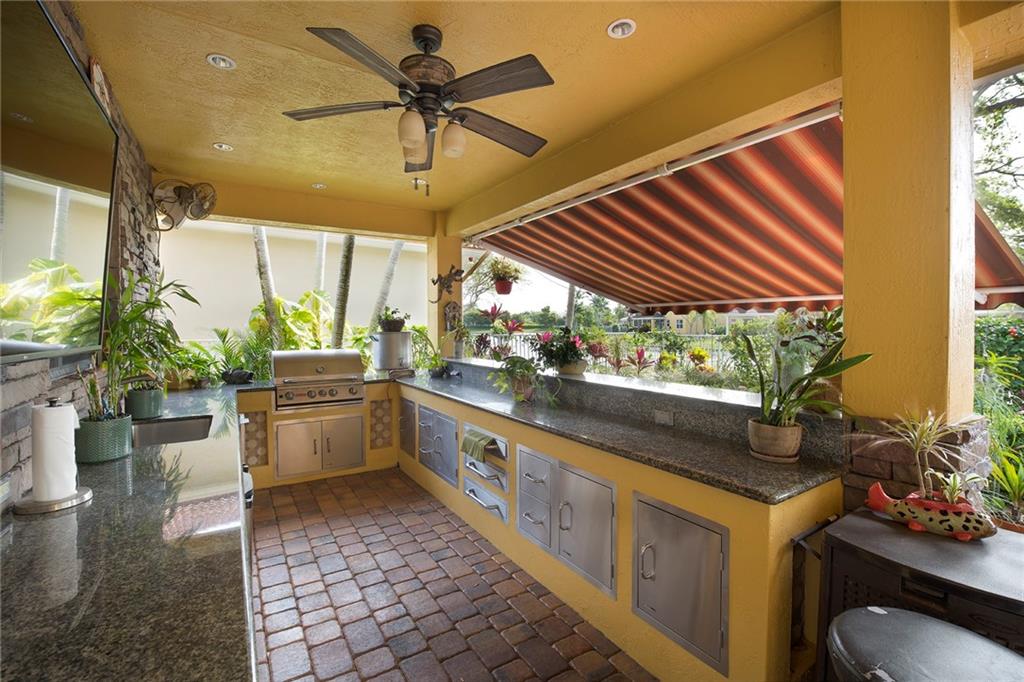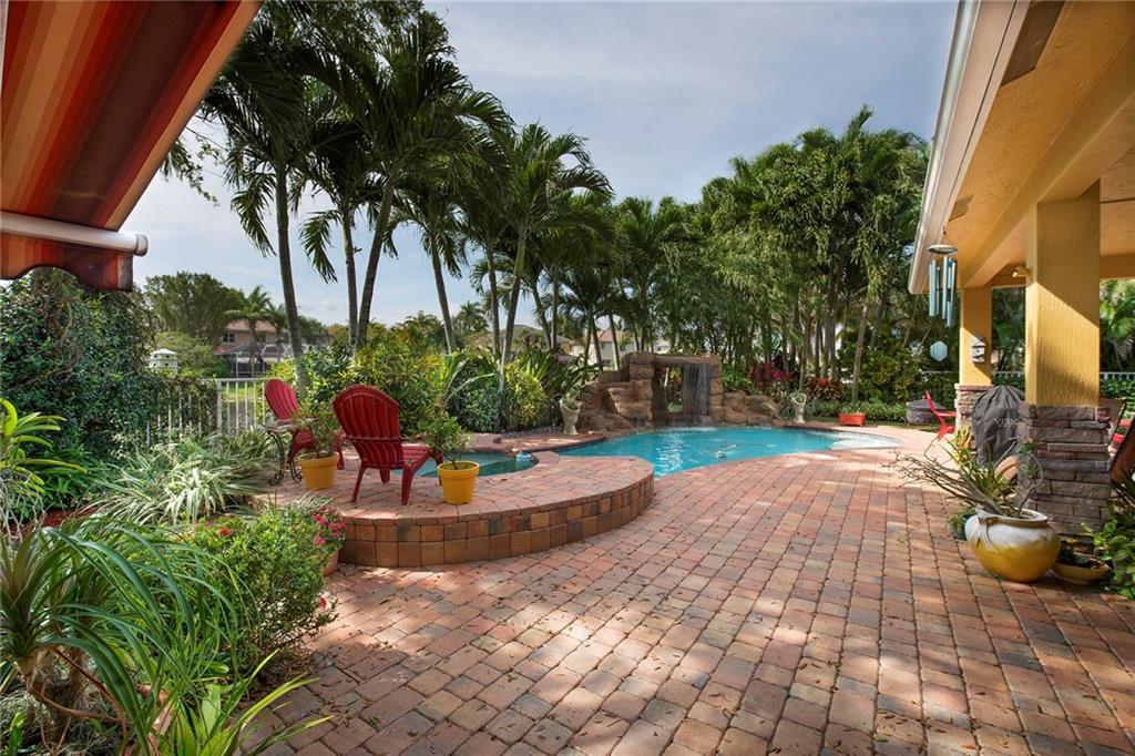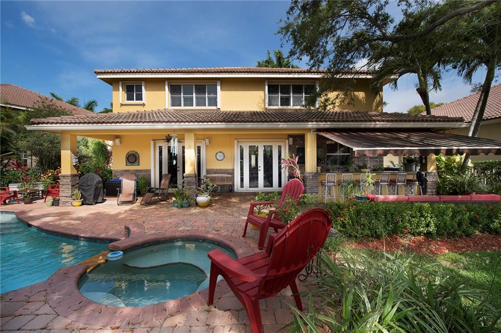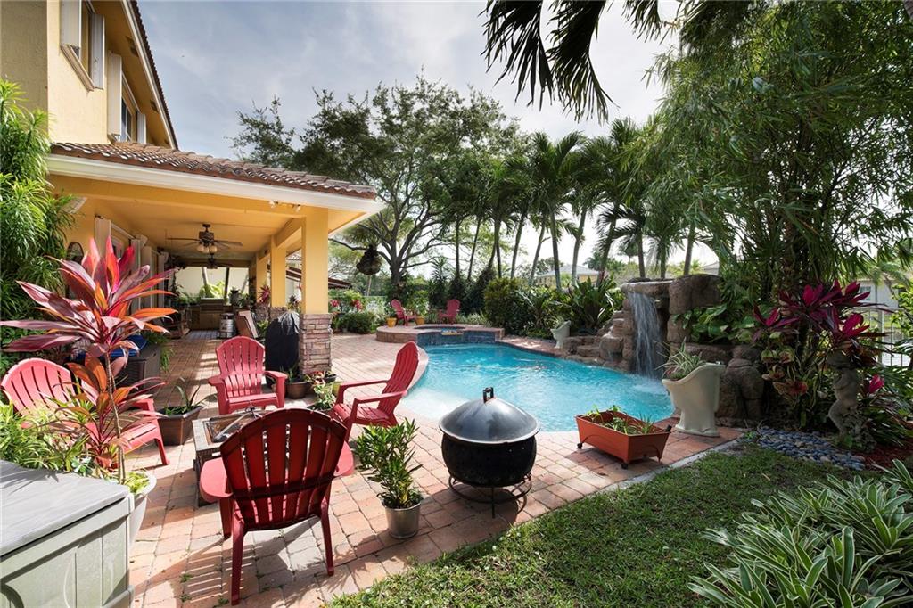 Breathtaking waterfront home nestled on a cul-de-sac with tons of upgrades and designer finishes throughout. Large kitchen with center island. Living room boasts vaulted ceilings and charming 20 ft fireplace. Oversized family room is an entertainers dream with custom built bar. Large master suite with sitting area. Four bathrooms are newly renovated with spa like finishes. Live like you are on vacation in the lushly landscaped private oasis backyard with resort style heated pool, hot tub, grotto cave, & waterfall. Grillmaster gourmet outdoor kitchen. Home has been meticulously maintained with new a/c's, accordion shutters, garage organization system, security system, custom closets, and more! Not your average Weston home - This home has a tremendous amount of living space with a cozy feel
