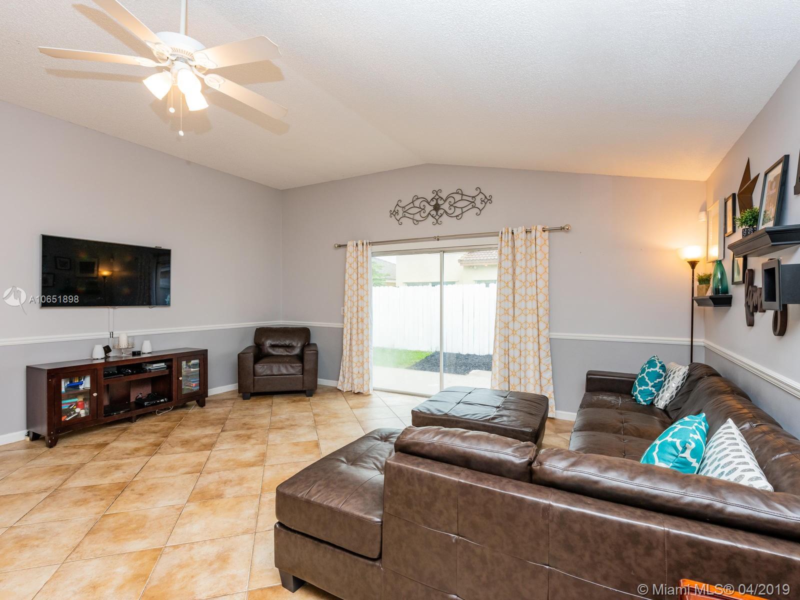 Very well kept 3 bedroom and 2 bathroom one story single family home. Laminated wood floors, upgraded kitchen and bathrooms. Nice backyard. Located in a family oriented community with lots of amenities. Roof, water heater, A/C and appliances are 4 years old. House was painted 4 years ago.