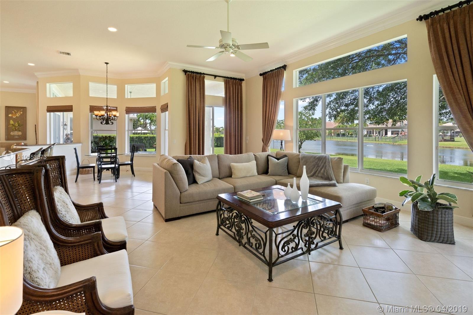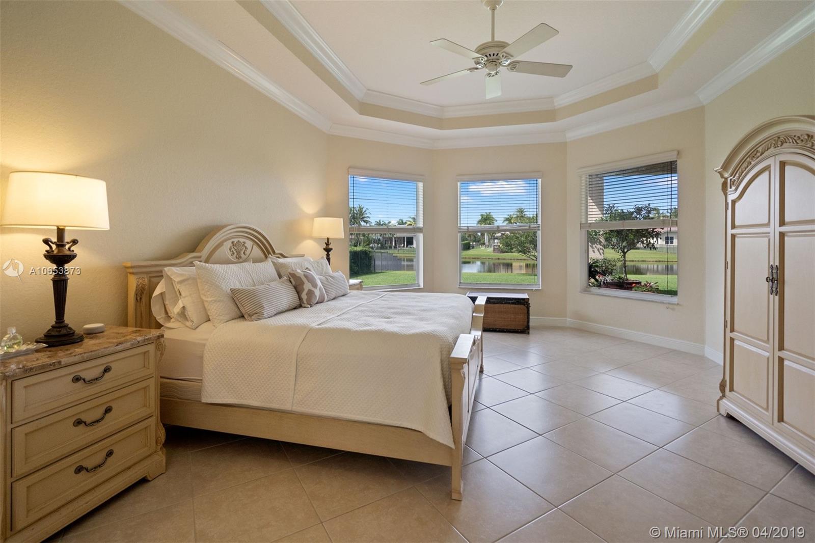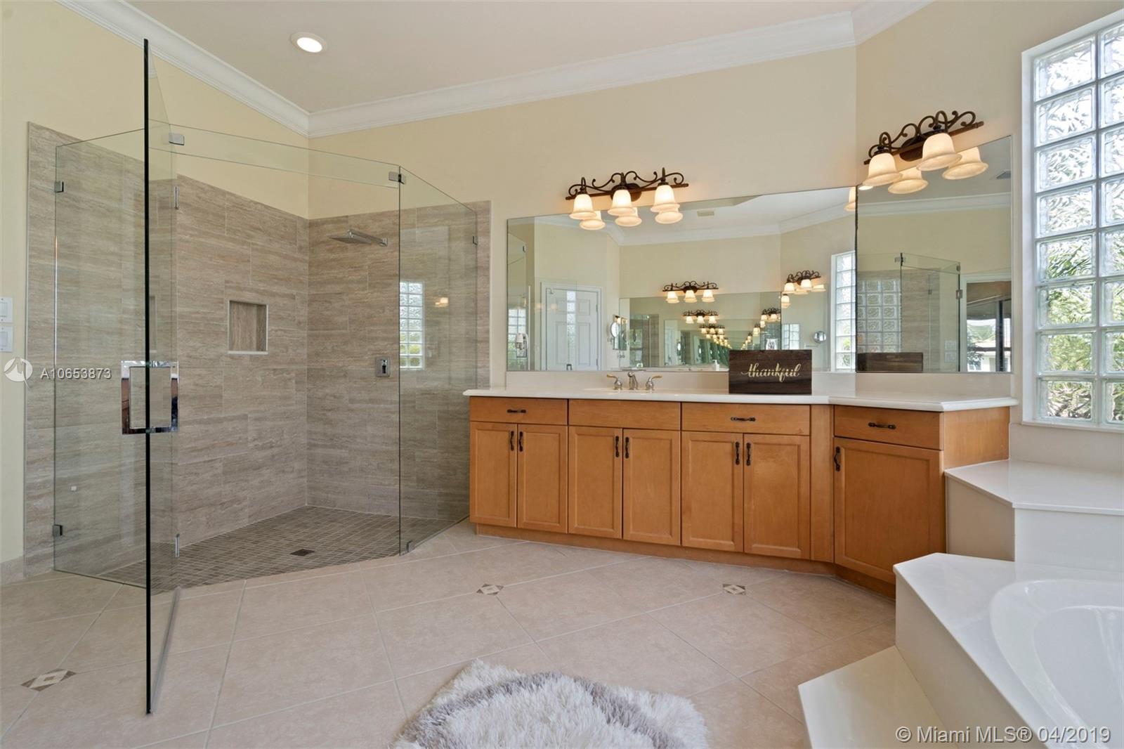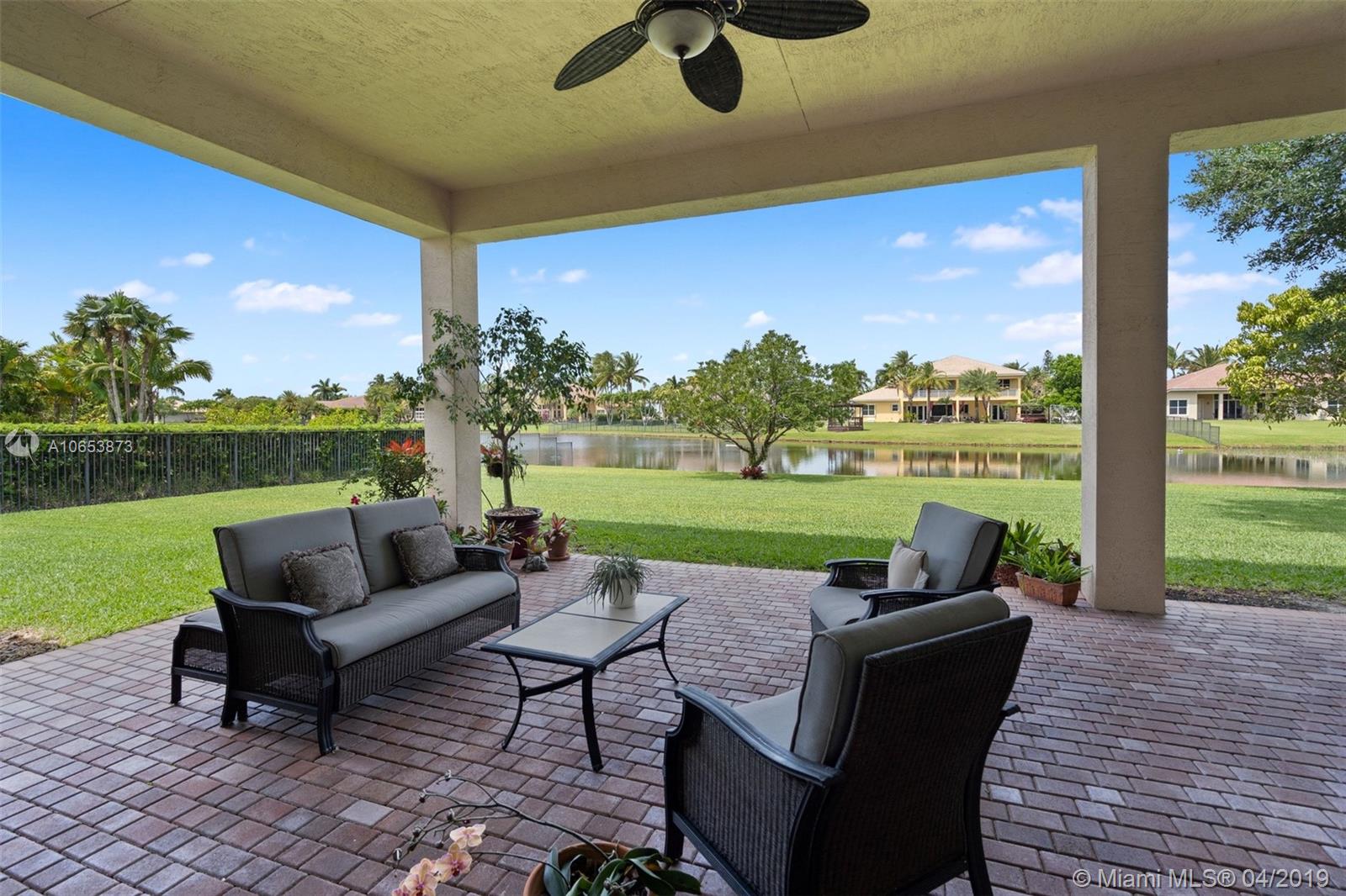 Spectacular Home a must see. One story 4/4 plus Den/Office and 3 car garages in the prestigious Riverstone Gated Community. This beautiful Waterfront House is the gorgeous Model residence Three-A with Lake views and perfectly located in the private cul-de-sac street the ideal area for the safety of the kids. The property features open concept floor plan with crown molding, chef gourmet large Kitchen, Spacious Master Suite with a newly remodeled shower in the master bathroom with dual vanities, and Roman Tub. Full Cabana Bathroom, tile throughout with high ceilings. Generator Switch, fenced yard on the patio and Security System. Riverstone offers resort-style amenities including a party pavilion, basketball, tennis courts, playgrounds, surrounding Park plus A+ rated schools.