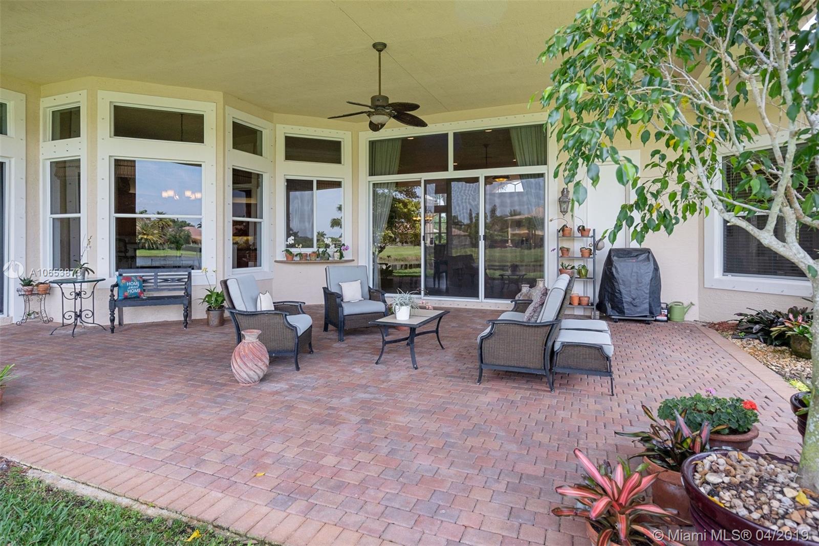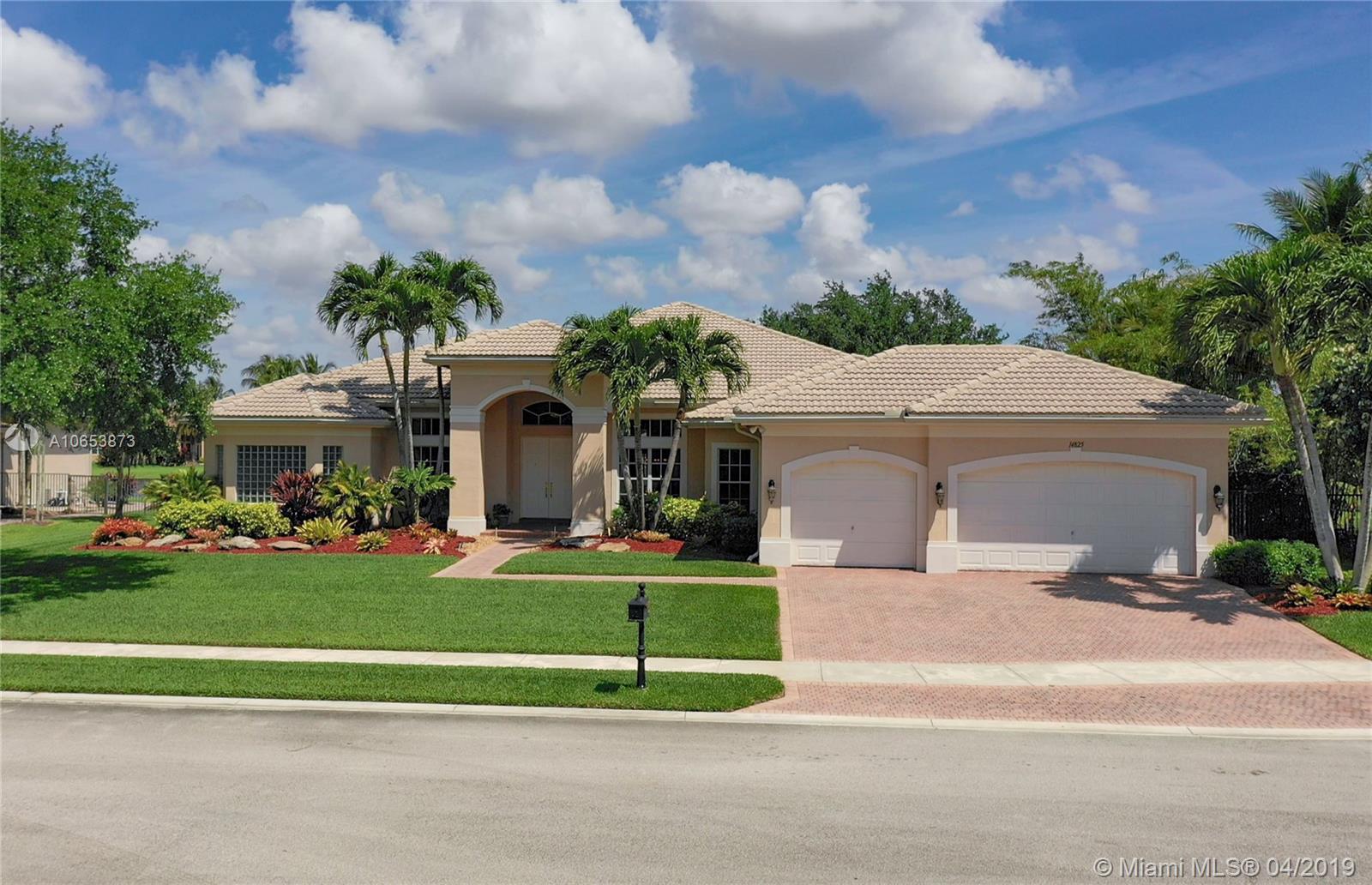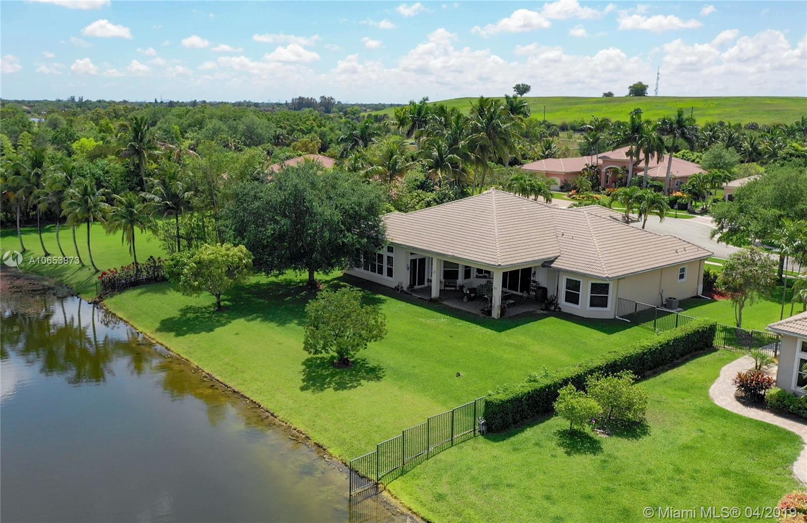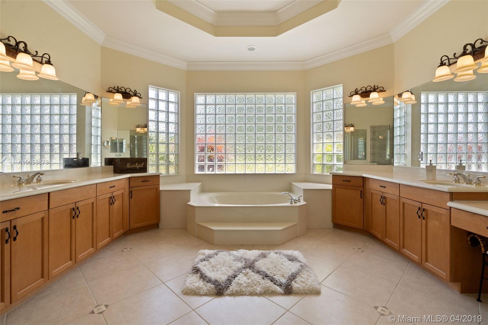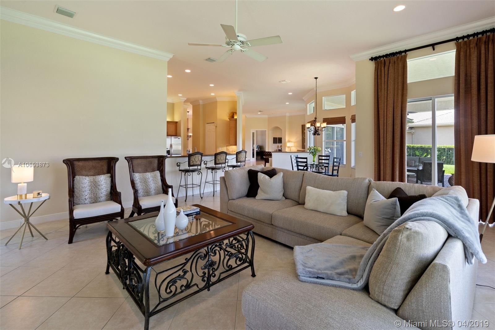 Spectacular Home a must see. One story 4/4 plus Den/Office and 3 car garages in the prestigious Riverstone Gated Community. This beautiful Waterfront House is the gorgeous Model residence Three-A with Lake views and perfectly located in the private cul-de-sac street the ideal area for the safety of the kids. The property features open concept floor plan with crown molding, chef gourmet large Kitchen, Spacious Master Suite with a newly remodeled shower in the master bathroom with dual vanities, and Roman Tub. Full Cabana Bathroom, tile throughout with high ceilings. Generator Switch, fenced yard on the patio and Security System. Riverstone offers resort-style amenities including a party pavilion, basketball, tennis courts, playgrounds, surrounding Park plus A+ rated schools.