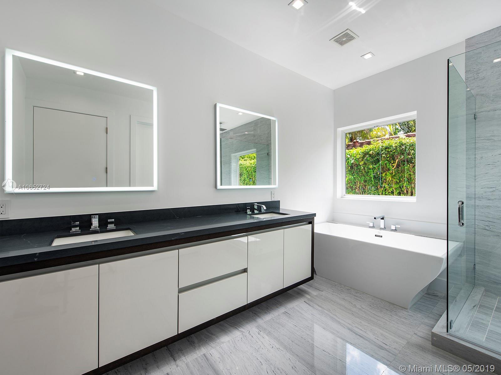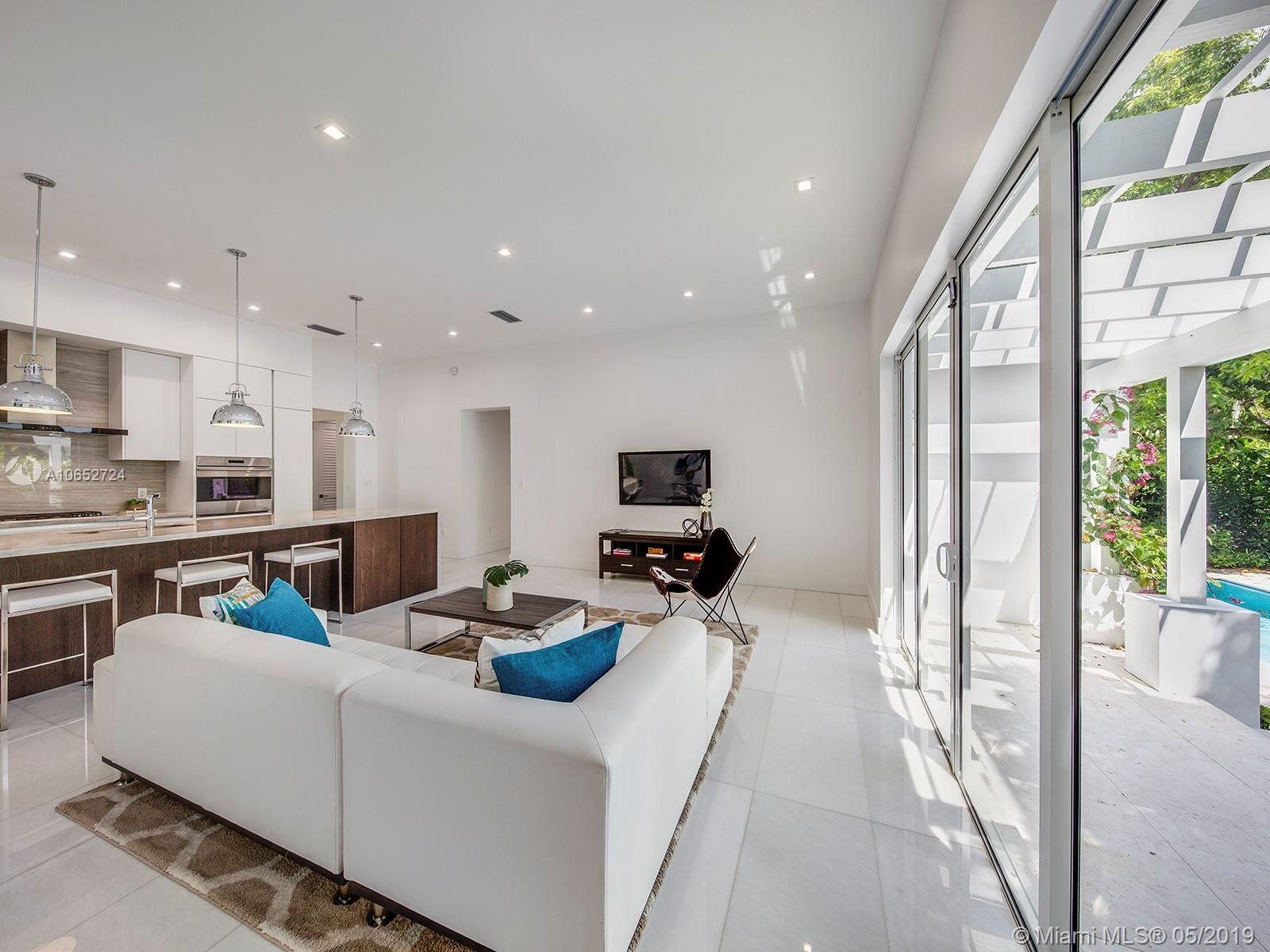 Stunning custom home, virtually brand new construction with modern, sleek exceptional design and functional floor plan. All done with high-end finishes and superb magazine quality. Hi ceilings, marble & wood floors. Formal elegant living and dining rooms. Impact windows & doors. Sumptuous gourmet chef's dream kitchen with all top of line appliances & gas stove. Marble counters & Italkraft cabinetry. Split lavish master suite w/custom closet built out & luxurious bath! Fabulous family rm & all generous sized bedrooms with pretty & serene vistas! Private & lush backyard w/ tropical plantings & inviting open pool!Excellent location, situated in the heart of Gables on beautiful street w/wide swale.Steps to Biltmore & within a short stroll to fine dining & Miracle Mile! Much more! Outstanding!
