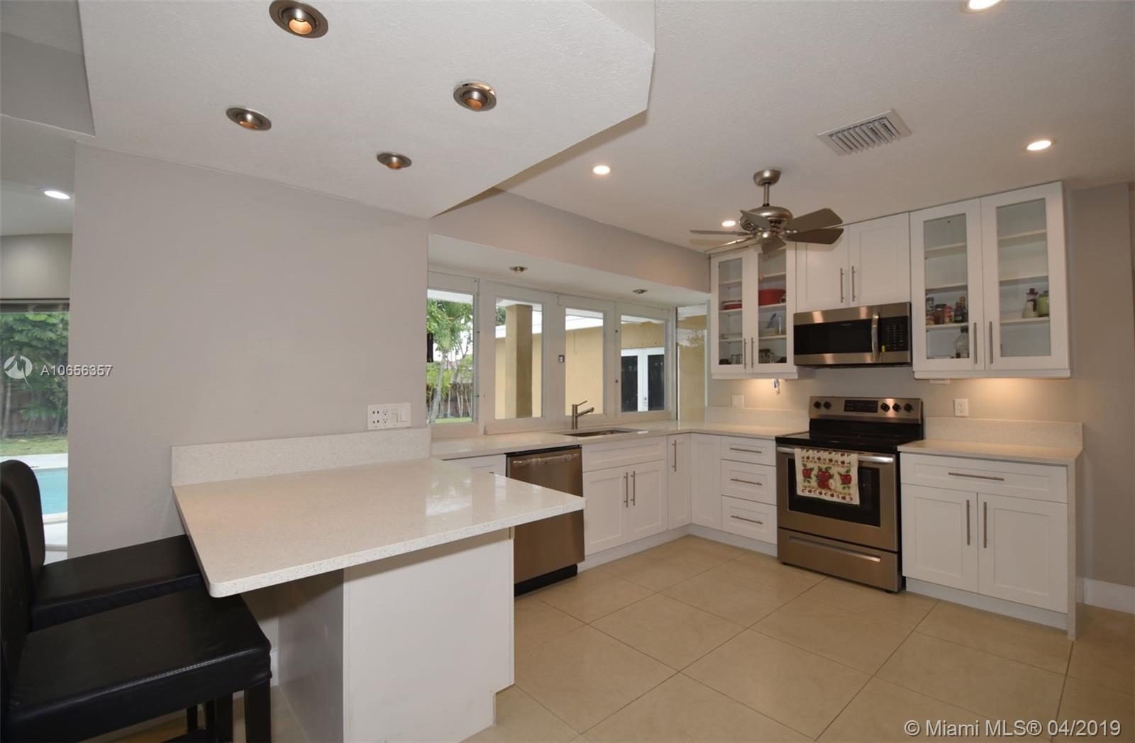 UPDATED HOLLYWOOD HILLS POOL HOME, 2333 ft.² on a large estate sized 13,514 ft.² lot (100 x 130) with 3 bedrooms, 2 baths, oversized 2 car garage, deep pool. Home is must-see, completely updated, move-in condition, new tile/wood floors, 5 ton a/c, new ductwork, new custom kitchen, new appliances, range, d/w, counter depth refrigerator, microwave, quartz countertop, pantry, glass pass through to pool. Open concept with 2 updated baths, glass shower enclosure, oversized master suite, custom lighting, tankless h/w heater, custom closets, large patio/pool area for entertaining. Quiet mini split a/c in master & garage, sprinkler,well, fenced rear yard, Rear alley for garbage pickup & access, ext. storage, alarm, cameras. Walk to Temple, Chaminade High School, Orange Brook Elementary School.