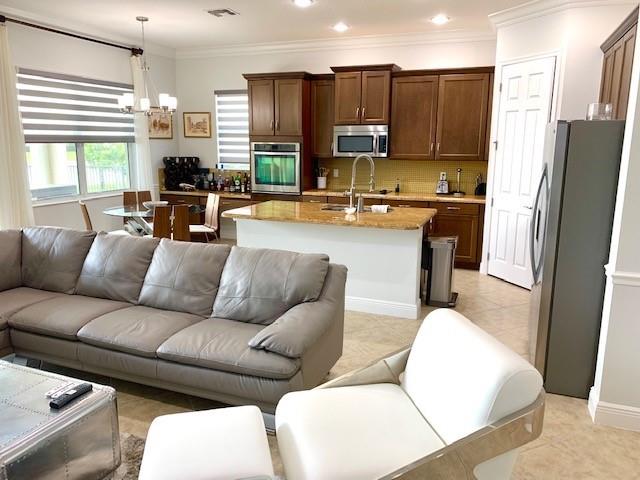 JUST REDUCED AND MOVE IN READY! Freshly painted, with new wood flooring and custom blinds, this beautiful one story home awaits you! 2,287 SF under air with a coveted open floor plan, the kitchen has granite countertops, stainless steel appliances, a large pantry and kitchen island, as well as beautiful wood cabinetery. This home has crown molding, lots of windows and a covered patio overlooking the lake, with a yard completely fenced in. The blinds in the living room, kitchen and dining room are, Custom Brands Group motorized/manual. The living room ones are motorized ones.