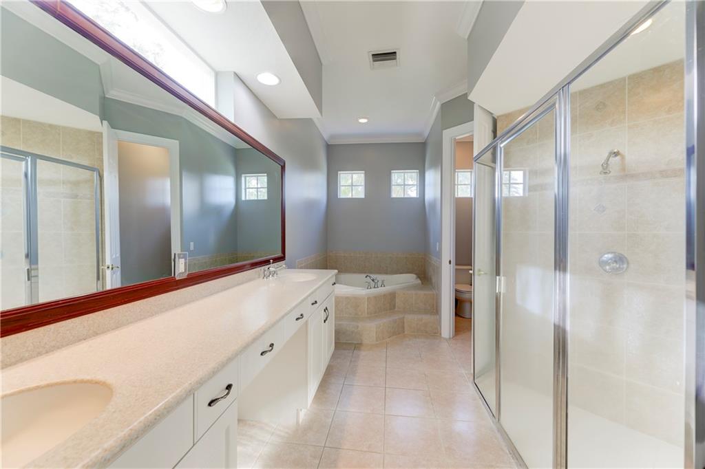 HUGE Mariner Model In Bayside Estates - 6 Beds, 4 Baths Waterfront Home On Oversized 15,648 Sq Ft Cul-De-Sac Lot! Real Wood Floors In Master Bed & Staircase/Upstairs, Downstairs Master Bed Features Walk-In Closets, Tray Ceilings & Gorgeous Water Views, Spacious Master Bath w/Separate Tub/Shower, Dual Sinks. Large Kitchen w/Island, Granite Counters, Stainless Steel Appliances, Bar Area, High Ceilings Throughout, Large Family Room, Another Full Bed/Bath Downstairs, Upstairs 4 Beds w/Laminate. Screened-In Patio, Extended Pavers w/Lots of Grass For Your Family To Enjoy & Perfect Back Patio & Yard For Entertaining. Great Cul-De-Sac Lot For Privacy & Kids To Play In Front Of Home. Guard Gated Community, On-Site Management, Resort Style Amenities w/Swimming Pool, Walk To All A-Rated Schools.