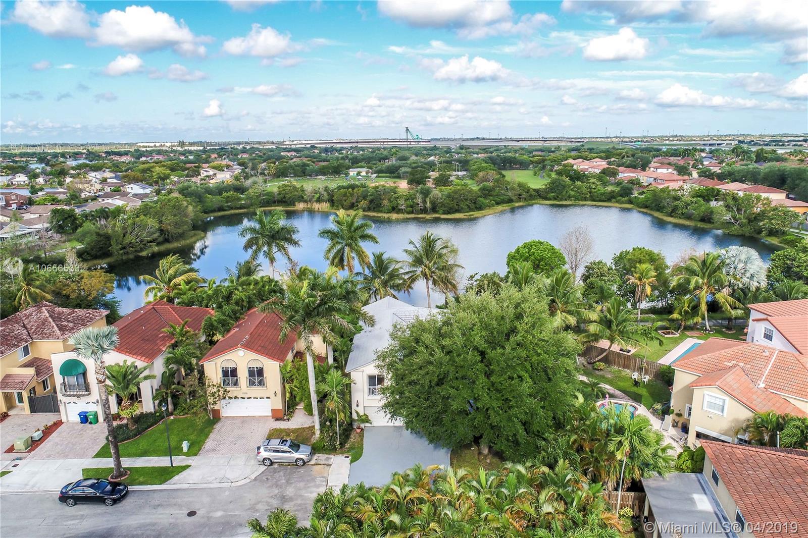 Gorgeous lakefront home on a quiet cul-de-sac with stunning water views! Largest lot in the neighborhood. No association so park your boat, no problem! Enjoy the beautiful sunset shining over the lake from almost every window and from your very own backyard. This home has the perfect layout with 4 Bedrooms, 2.5 baths, double-car garage, vaulted ceilings, lots of natural light, an open kitchen, and plenty of storage space. The serene backyard is gracefully surrounded by nature with immediate access to a walking path by the lake. Conveniently located near an array of restaurants, shops, supermarkets, parks, excellent schools, and the planned mega-mall American Dream Mall. Easy freeway access to I-75 , Palmetto & Turnpike. PRICED TO SELL. Will not last!