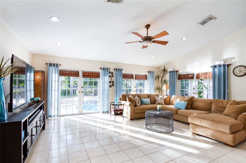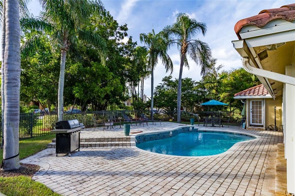 Beautiful home in one of Coral Spring's premier communities of Pine Grove is situated on a 1/2 acre corner lot. This family home offers high vaulted ceilings, open floor plan surrounded by French doors looking through to the pool deck, split bedroom floor plan with 4 bedrooms, 3 full bathroom, 1 half bathroom and a cabana bathroom by the pool, and a 3 car garage that offers plenty of parking with dual driveways. Updated kitchen with granite countertops, double ovens (perfect for holiday cooking and entertaining), middle island/prep station, and breakfast nook with large bay window.